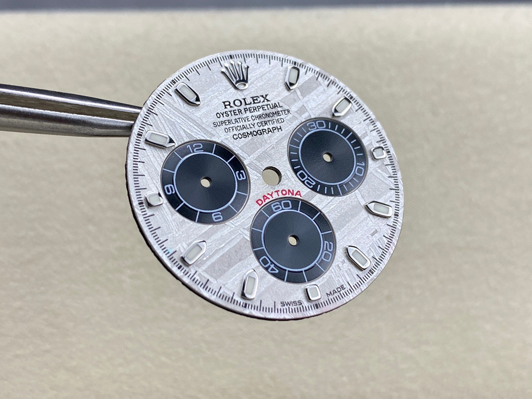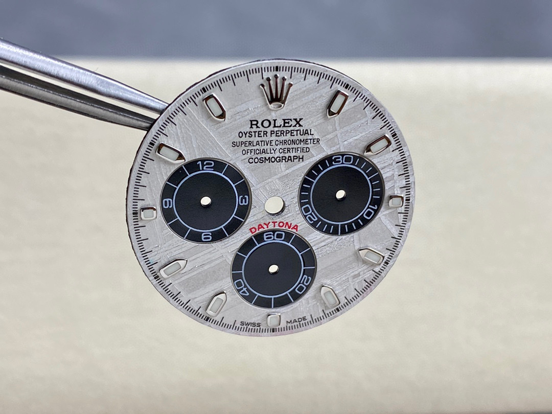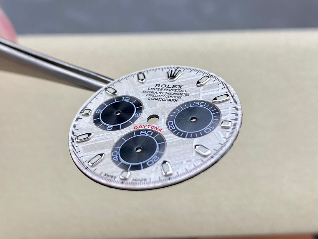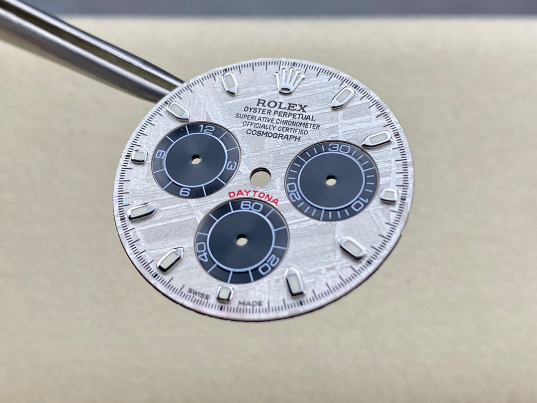 改裝升級是目前對於高仿手錶還原正品相似度最好的解決方面.原廠素錶未改裝之前對比原版僅能達到接近百分之95左右,僅此是Clean廠地通拿或者是BT廠地通拿,相對於其他廠家已經是最好的選擇.這一枚代用錶盤材質採用百分百真隕石材質,同步原版材質.可用於Clean廠水泥灰進行改裝,或者是m116518ln-0076都是可以適用於改裝升級部分.通常如果入手了C廠水泥灰覺得看膩了或者是想要更加接近原版,那改裝代用隕石面錶盤就應運而生,不僅還原正版盤面.對於Clean廠所搭載的丹東地通拿都是作為改裝前最穩定的基礎.機芯同步計時功能無誤差,72小時續航動力.