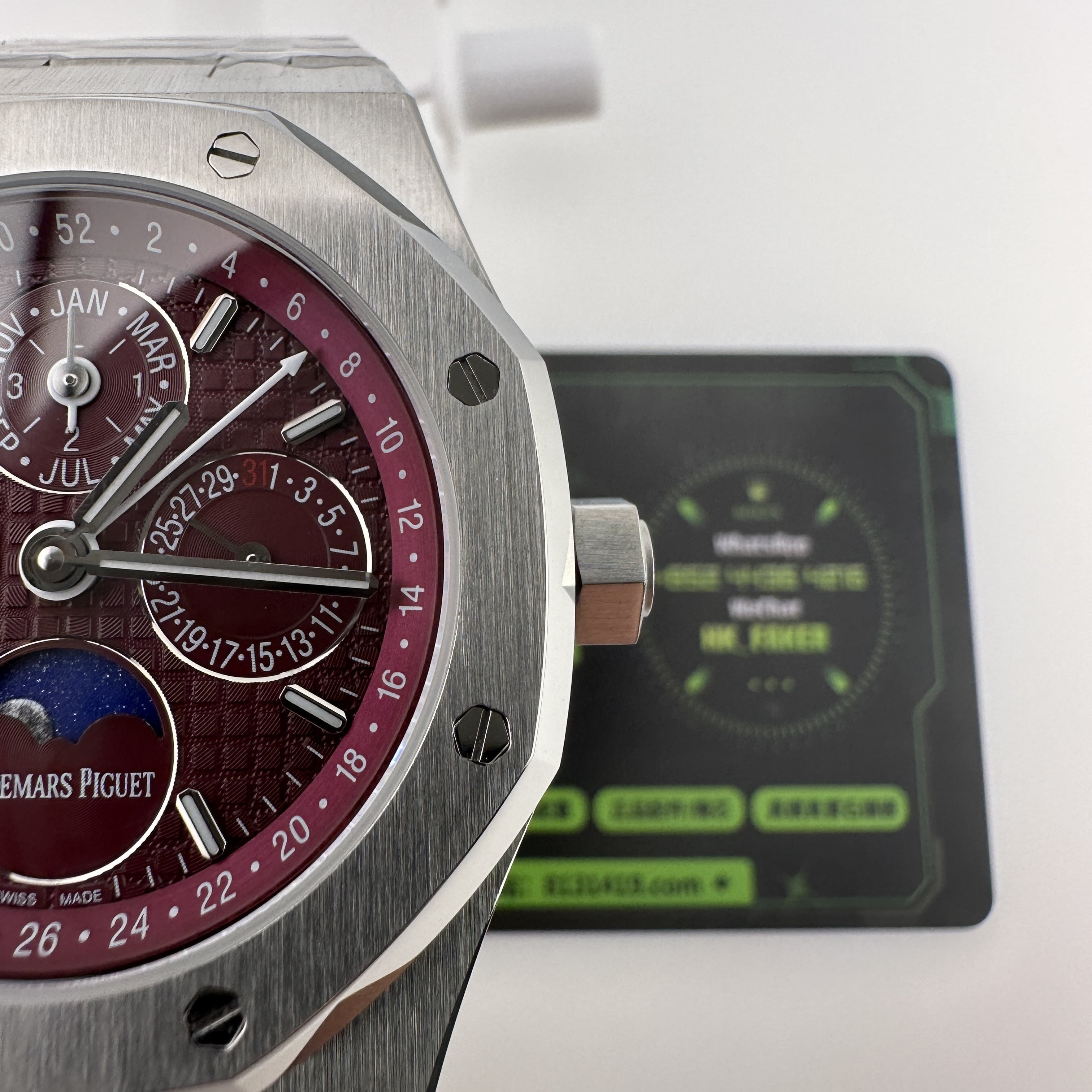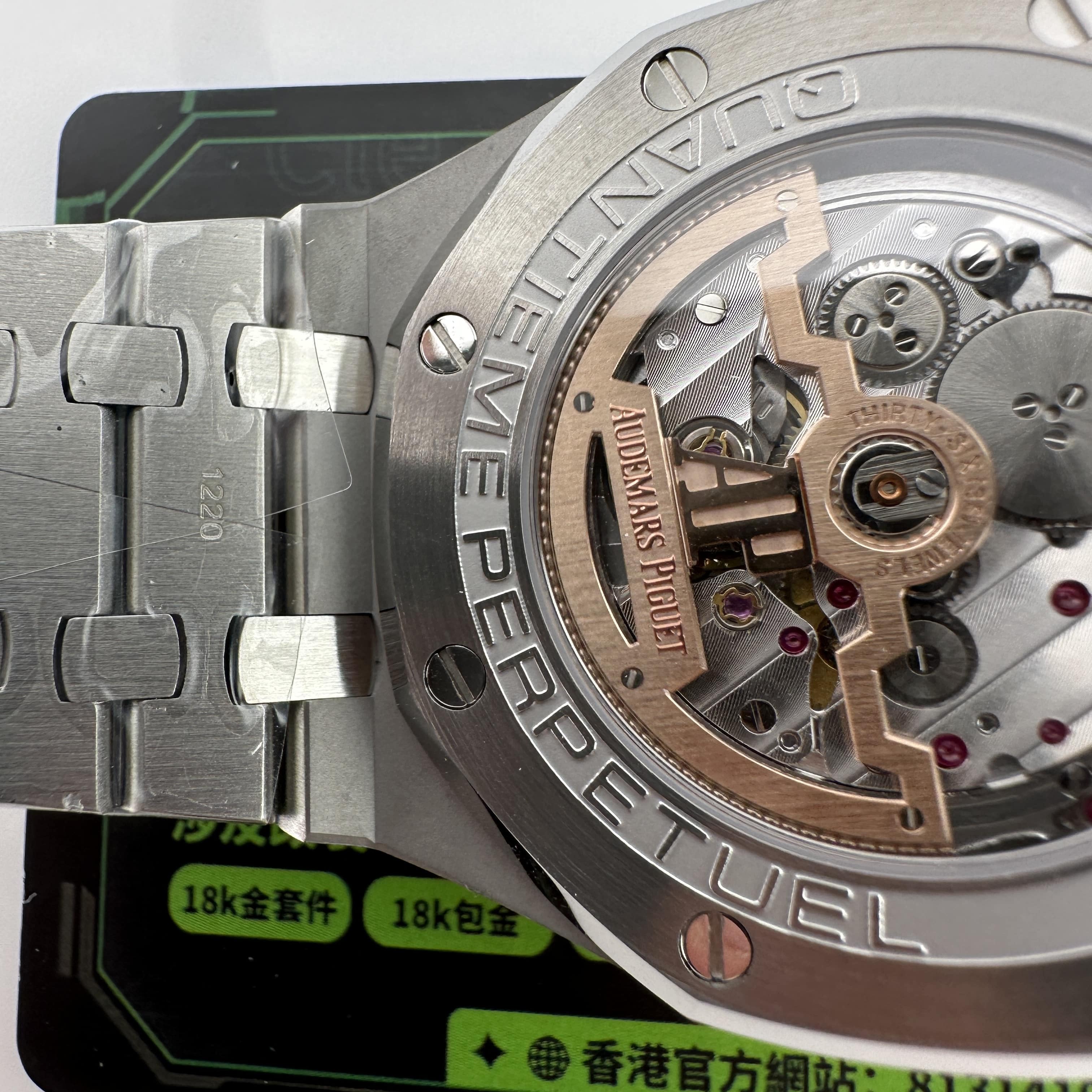 BBS廠官網推出的高仿AP26574白金紅雖然說是比較"醜"的錶款之一,但原版的售價高得離譜,畢竟是使用了18K白金材質打造,而BBS廠則是使用316L精鋼材質打造,造價成本不同所造就的區別自然是不同.值得參考的是BBS廠26574包金紅盤面是有明顯的放射紋理,這一點BBS廠做得還是非常不錯!其次是BBS廠的優點錶殼的薄基於機芯的構造匹配了錶殼塑造出同步原版的厚薄度.
