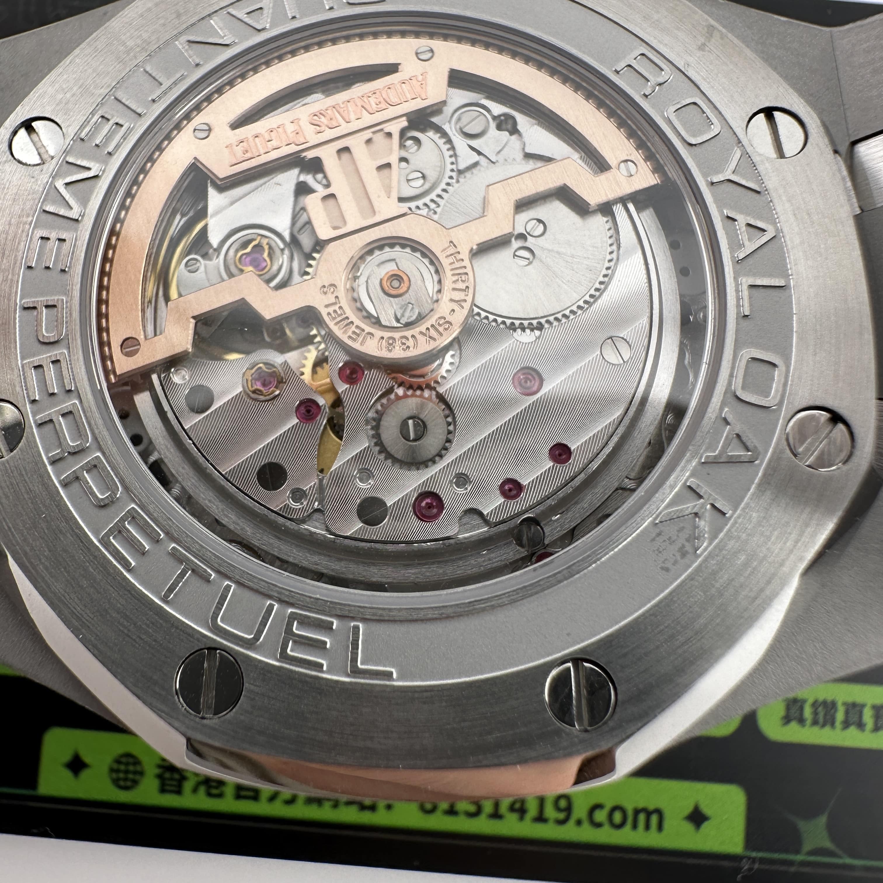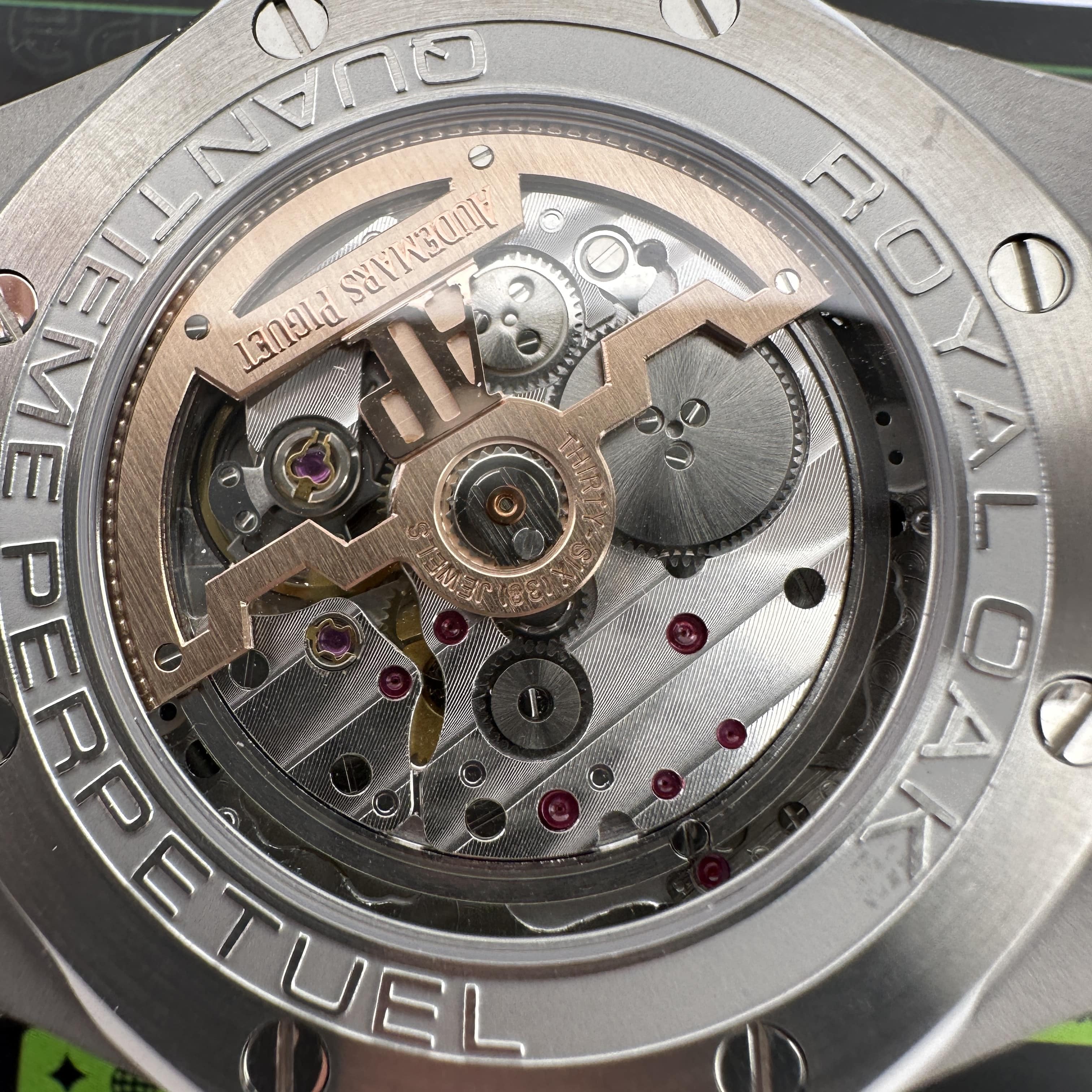 此次BBS廠針對26574使用的機芯是訂製版本的5134,重新研發1:1的機芯匹配造價成本非常高,而使用訂製版本的機芯雖然沒有達到原版構造,但功能層面上是百分百還原!加上BBS廠主打的市場是中高端,售價也會相對比較便宜.萬年曆腕錶的功能非常複雜,並且這一隻26574涉及的功能就高達6到7種左右,如果使用一體機芯構造價錢是可以購買兩個BBS廠的AP26574.