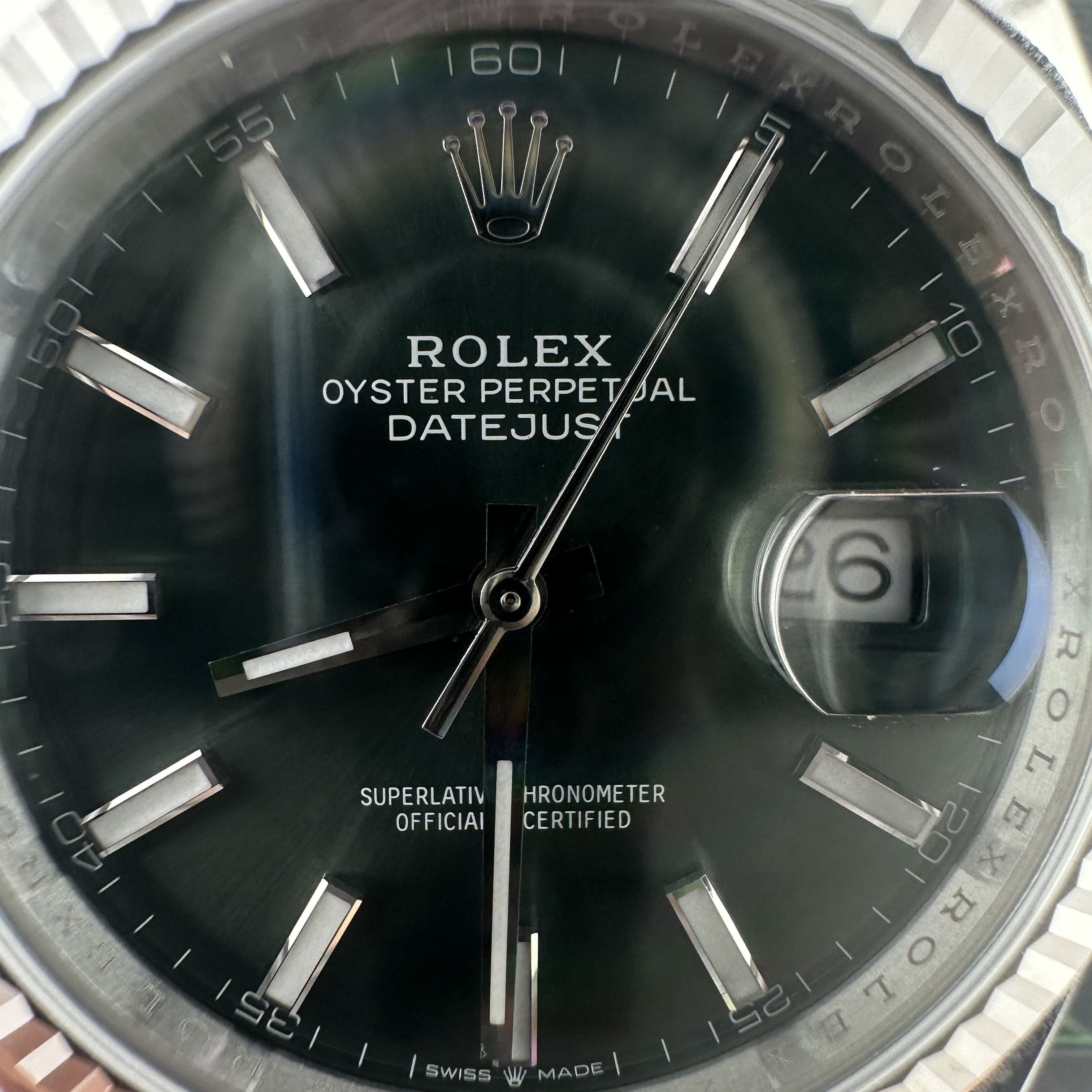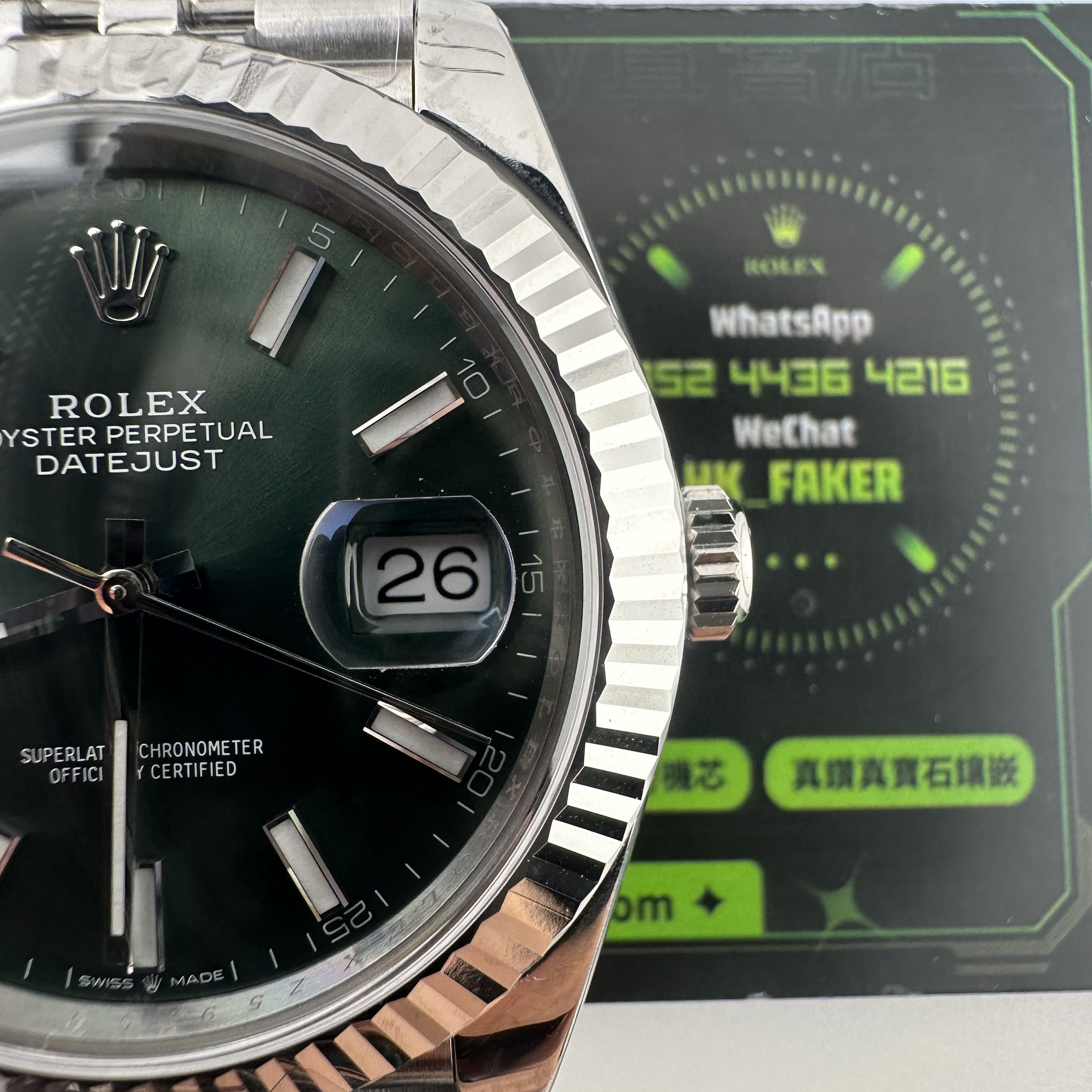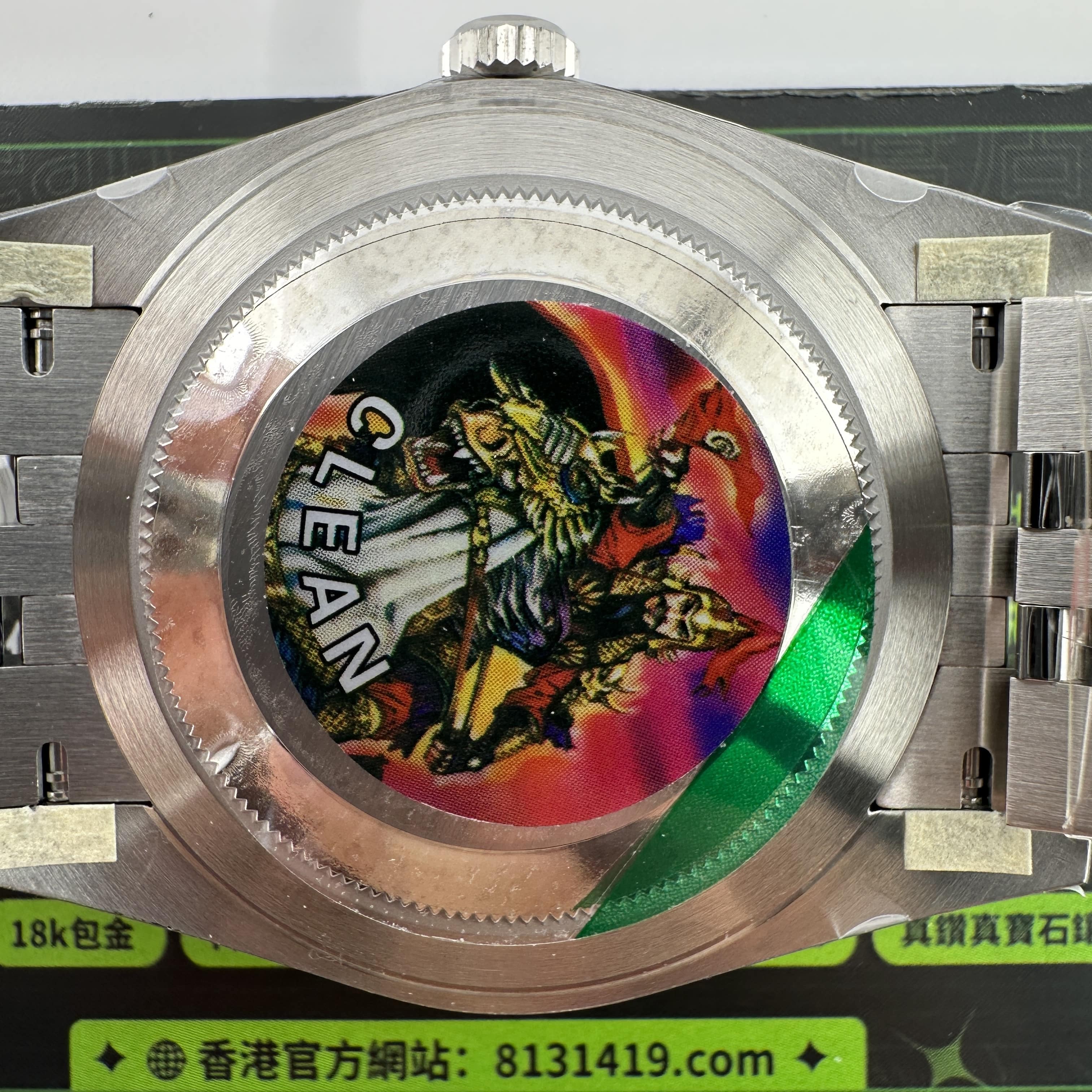 Clean廠全新一代勞力士日誌系列m126334-0028,被諸多錶友俗稱的薄荷綠日誌,整錶使用904L精鋼材質打造,與原裝正品一致的材質.狗牙尺圈口正品所使用到的是白金材質,而Clean廠日誌則是通過PVD電鍍工藝達到與原版一致的白金色值.再經過打磨拋光後,整體的質感完全可以對版正品白金圈口.綠面的錶盤調色經過比對正品達到無限接近正品的色值盤面,包括放射紋路所體現的暗光與亮光之間存在鮮明對比.內影圈部分的細節,每一個字體工整,特別是勞力士皇冠LOGO的刻度完全是對準了6點鐘方位.
