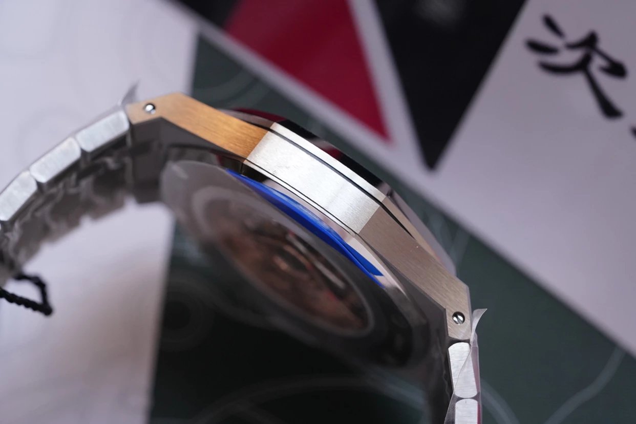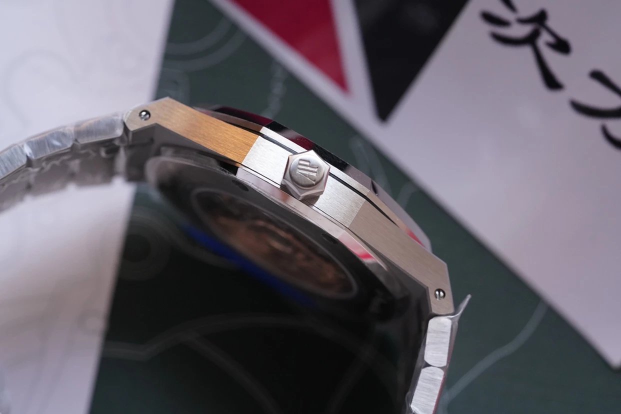 皇家橡樹系列總給人有一種穩重、低調的感覺,儘管40多年來一直在變化,但最基礎的元素始終保留。八角形表圈棱角分明,設計獨斷獨行依舊個性,黑色大型格紋盤、白金螺釘八角舷窗表圈一樣不落。9.8毫米的表殼較薄,可配上41毫米的直徑真是恰到好處。15400是愛彼皇橡中的入門級腕表,沒有任何特殊功能,僅有大三針和日期顯示,但最基礎的款型才能將皇橡的獨特味道體現出來。對於愛運動的型男來說,日常佩戴綽綽有餘。如果你喜歡皇家橡樹,這真的是首先應該擁有的款式。複K界的Z+F廠這款愛彼15400系列複K表終極版絕對值得各位入手。