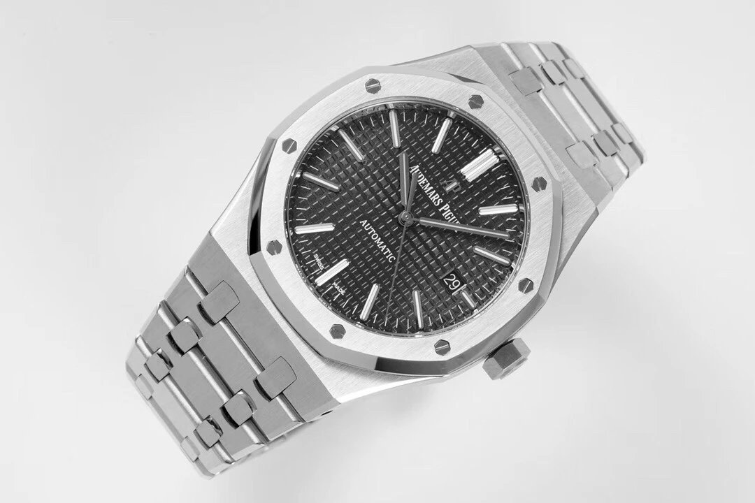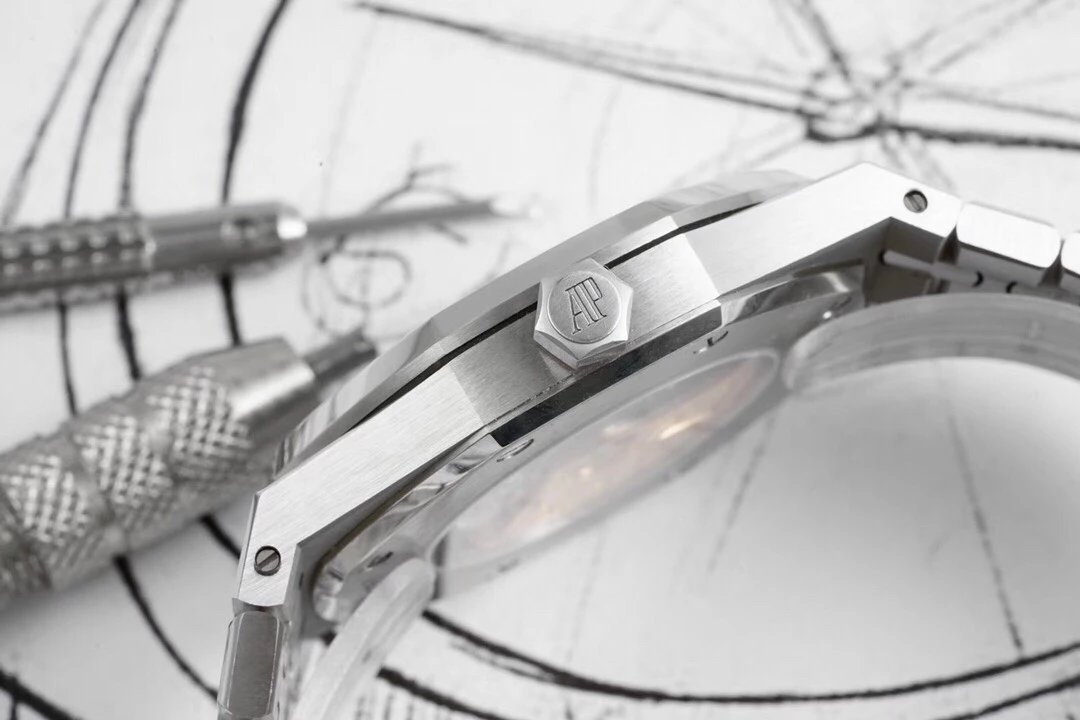 ZF廠15400是工廠購入三枚正品原裝來開款設計,其實作為一般的複K表,基本上同樣一個系列的產品基本都是購入一枚複K就行,外殼細節做好,盤面都是自己調色。不過zf工廠大家都知道,是一家非常嚴謹的工廠,其老闆也是這種作風,同時面對jf工廠15400地位難以撼動的局面,好的方法就是全部購入正品後一比一開模具製作,這樣才能把對手幹翻。ZF重新定義皇家橡樹15400系列,終於解決了長久以來各大廠家都無法突破的難題