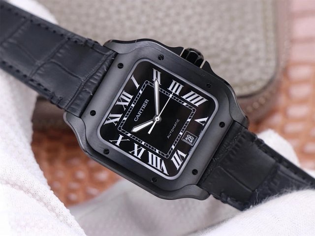 【HBB V6廠 出品】 卡地亞山度士 ADLC碳鍍層腕表WSSA0039,尺寸47.5X39.8,厚度9.08mm,316L精鋼表殼,黑色多切面尖晶石,燒藍鋼針,搭載TOP級西鐵城9015機芯,同原版QuickSwitch專利系統,(錶帶/錶鏈)通過輕按按鈕即可輕鬆替換錶帶,牛皮錶帶,防水30米級
