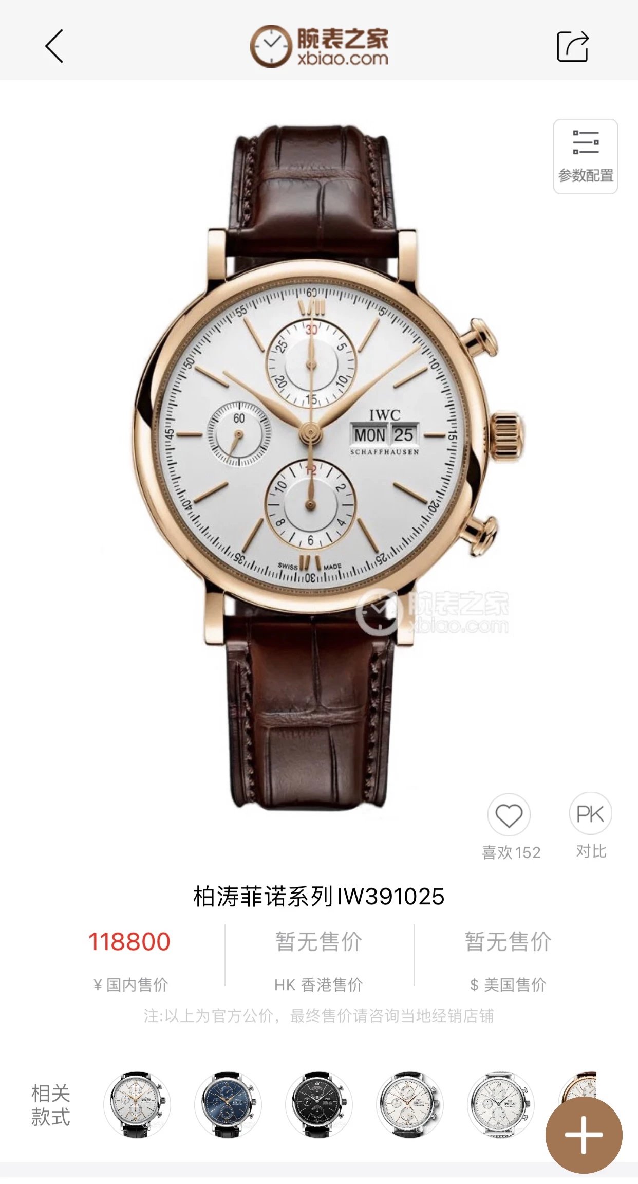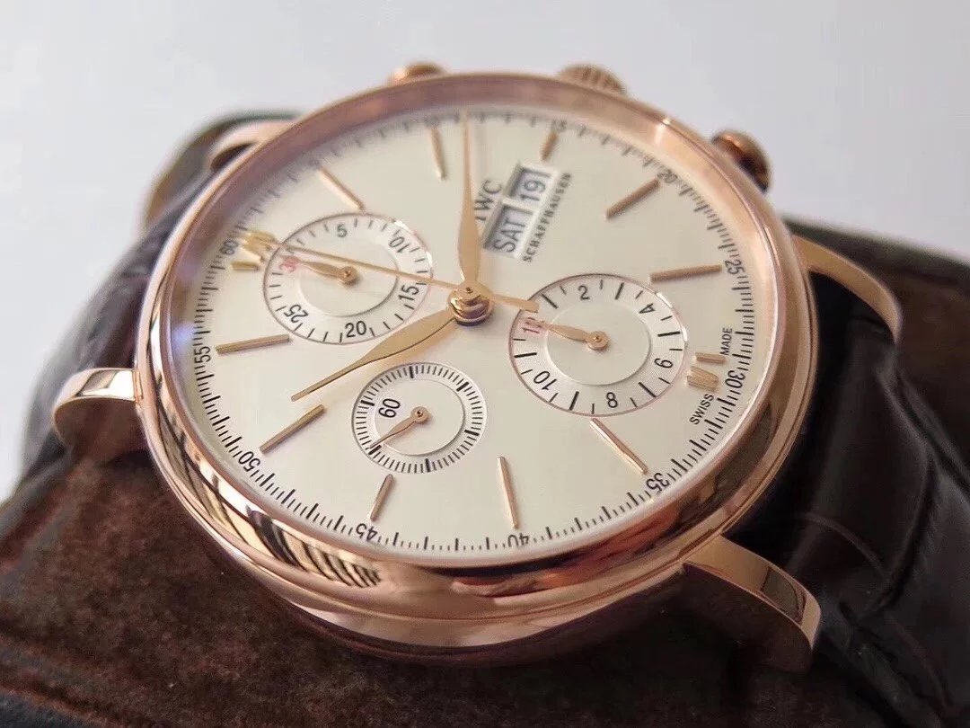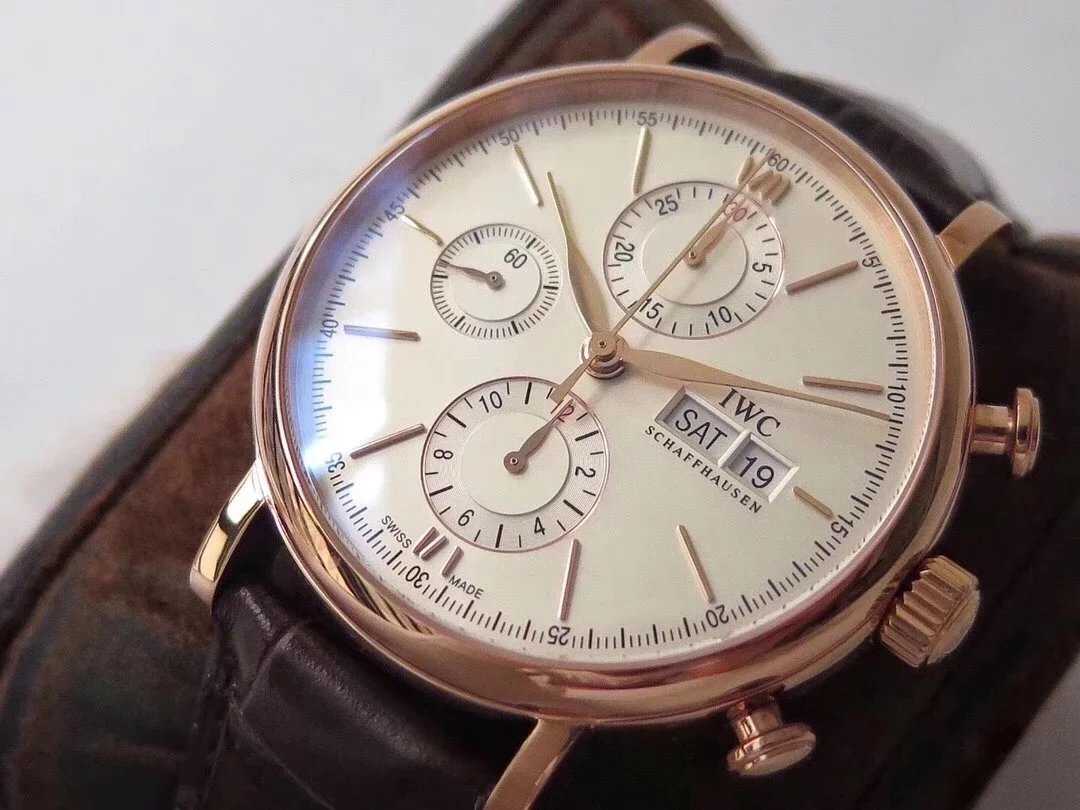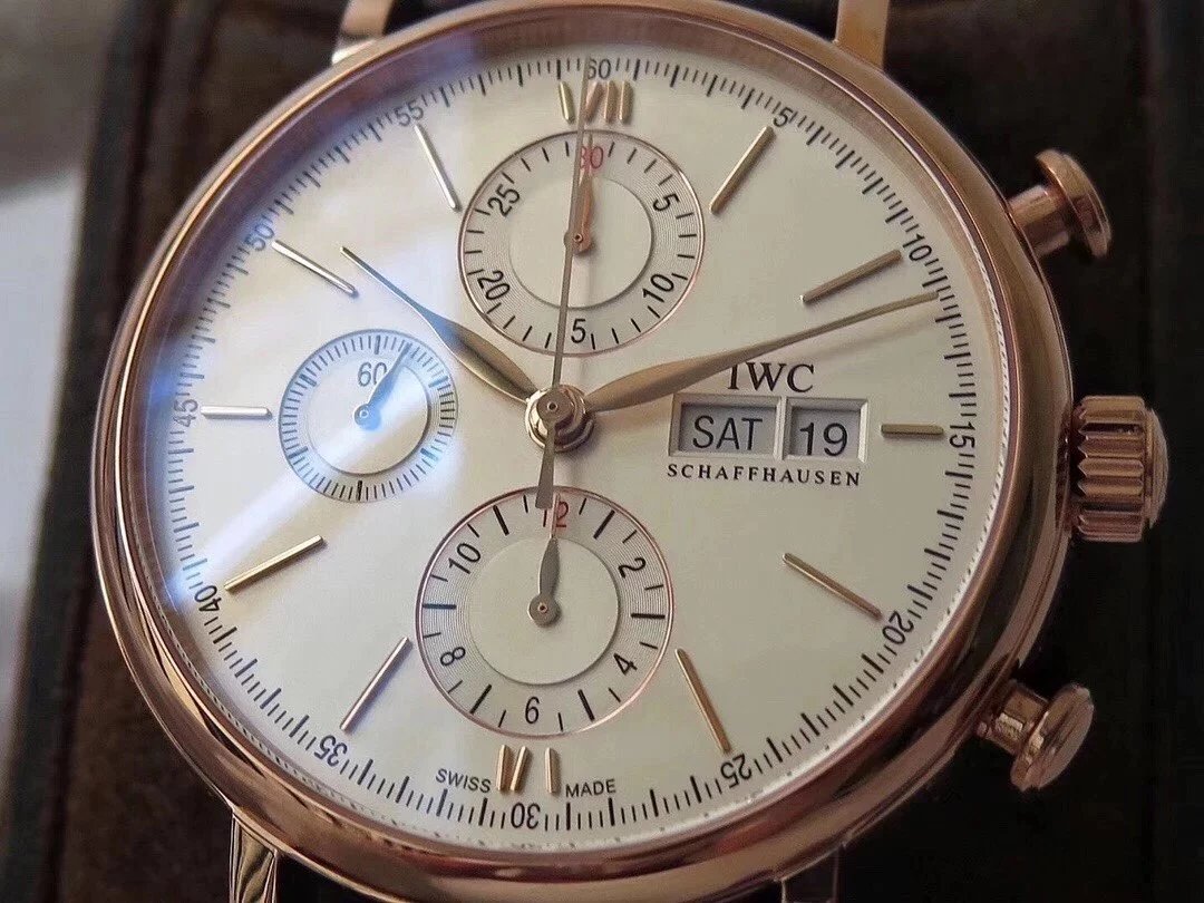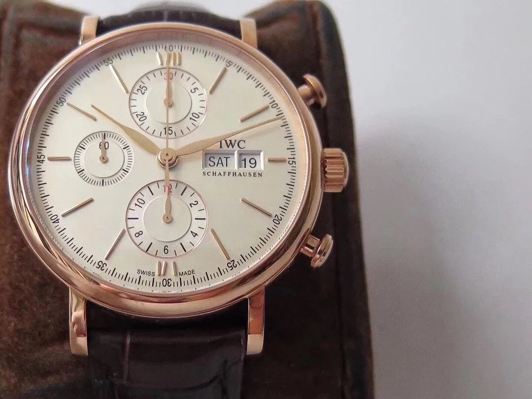 ZF萬國柏濤菲諾系列iw391025玫瑰金計時皮帶男士機械手表 詳細參考腕表之家;