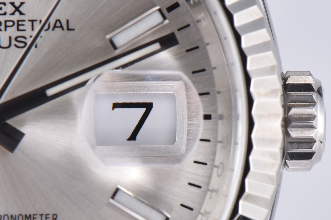 Clean廠全新推出勞力士新款日誌,型號為126234,尺寸36MM,小尺寸的日誌是比較適合腕臂小的表友,屬於福音腕表,特別是對於女士佩戴,更加顯得有高級視覺感,其實大部分表友在尋找小尺寸的復刻表時,不知道該如何選擇,或者是不知道選擇哪一個腕表品牌。今時今日的勞力士復刻表可以說已經達到百分之95以上的相似度,在不拆卸機芯查看真假時,外觀部分的細節是很難觀察出真假的對比,對於專業人士還需要通過放大鏡或者儀器去檢測時,說明現代的復刻腕表已經來到不一樣的高水準!而對於這一支復刻勞力士日誌,已經成為市面上的最高水準,出自Clean廠的代表傑作!我們可以看到這一支日誌跟我們評測所接觸的日誌不一樣,最大的區別是在於盤面上的顏色,這一支采用銀色面作為盤面設計,銀色的盤面同步於原裝正品盤面,在燈光的直射下或者是太陽光對照下,我們從不一樣的角度去觀察銀色的盤面,帶來的效果是有逐漸的反光,簡單點說就是漸變,這種盤面是需要高難度的復刻技術才能夠達到這種效果,並不是普通的盤面所覆蓋上去!盤面的1到12點鐘位置使用白色刻度條作為標識,也就是時間的刻度條,每一條刻度條都經過包邊加料,從側面看盤面有著明顯的立體感。在12點鐘的位置則是使用到勞力士的官方LOGO皇冠作為標識,皇冠LOGO下面的字面經過沖壓的技術,板正沒有任何毛刺的現象,非常規整,同步於正品的字面。在盤面上有指針和日歷作為腕表的功能性代表,3枚指針全部采用實心指針,看上去的質感效果極佳。同時可以看到指針軸也是使用實心材質,經過打磨後,有著比較明顯光澤和圓潤!在3點鐘的位置上則是日歷顯示,通過放大的效果可以看的更加清楚,日歷的1到31號阿拉伯數字經過篩選對比正品的字面,沒有毛刺才正式上機使用,Clean廠對於日歷上的字面也是有所講究的!Clean廠使用到的是藍水晶玻璃鏡片,有著較好的防劃,硬度強,高清的效果。這一支日誌全部為鋼材質打造,使用的是904L精鋼材質,精鋼打磨和拋光後有明顯的的拉絲和光澤度,光澤度也是可以對比正品。表殼4個角,向下的幅度是經過正品開模統一處理的,所以在表殼上的幅度是完美的復刻。表殼銜接到表帶部分的拉絲,絲滑順暢沒有段鋼的現象!右邊則是單個調節把頭的設計,通過把頭的選擇可以轉動指針和日歷,轉動的效果是有質感的,崁入式的調節把頭有著很好的防水性能。圈口則是狗牙圈口,圈口的打磨非常細致,沒有劃手,流暢度效果非常OK,大家不必擔心Clean廠的圈口有任何瑕疵出現,因為Clean廠對圈口和表殼都有加工一層PVD鍍膜,有著很好的耐磨性,並且在日常佩戴中光澤度會越戴越有質感。表帶則是日誌最為經典的五珠鏈表帶,表帶的處理方式Clean廠對比過開模的表帶,可以互換使用五珠鏈表帶!表扣上則是有勞力士的皇冠LOGO ,鋼印的皇冠LOGO有明顯的立體感,圓潤絲滑!表扣內部有鋼印字樣,間隔的距離和深度都是匹配正品表扣的字樣,沒有漏鋼的嫌疑!在勞力士的專利底蓋部分,是勞力士的傳統蠔式底蓋,有著象征性的防水性能,防水深度也是同步於正品的防水!機芯則是勞力士復刻機芯中最好的配置,3235機芯!3235機芯有著極強的穩定性和使用壽命,在測試續航時長時,3235機芯可以達到72個小時的續航能力,配置在日誌上,完全足夠使用!對於Clean廠的做工和細節處理,包括用料都是頂級的,對此表友們還有不滿意的嗎?想要了解更多Clean廠復刻表,可以咨詢我們Clean Factory直營店客服!