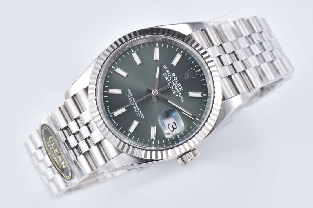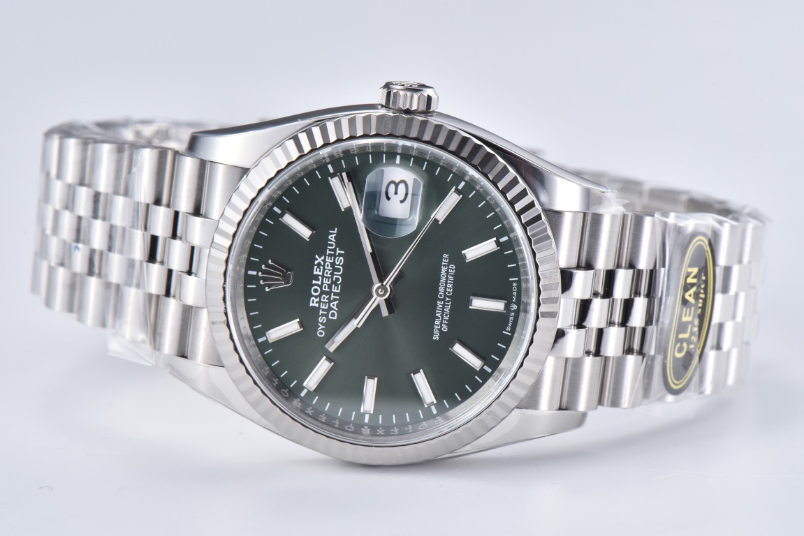 Clean廠推出全新日誌系列,型號126234日誌,跟我們經常見到的勞力士日誌不一樣的是盤面有改進,這也是同步於正品的盤面,只是Clean廠在盤面上下的功夫比較足,我們可以先看到盤面的顏色為綠色主題, 大部分錶友喜歡勞力士日誌這一支腕表更多的是日誌給我們帶來成熟的標誌,但這一支的腕表尺寸是36MM,現時Clean廠出的日誌尺寸有36MM跟41MM,選擇36MM尺寸的日誌大部分都是女士佩戴的尺寸,但也有男士去選擇36MM,這也是根據自身的腕臂尺寸大小去選擇! 後續Clean廠也會推出更多36MM跟41MM尺寸的日誌! 盤面的刻度條經過精密衝壓科技,並不是普通的膠水粘連,比1到12個阿拉伯數字的刻度,這一支日誌在刻度條上設有分鐘的標示,在12點的位置上顯示60分鐘,也就是一個小時的計算管道,但12點的位置用了勞力士的LOGO作為代替,顯得更加醒目,並且LOGO的顯眼位置有明顯的突出性! 皇冠LOGO下麵則是勞力士的標識語,包括6點上面的英文刻度都是同步於正品的標示! 在3點鐘的位置上是由行事曆顯示,有放大250倍的效果,在我們正常看腕表行事曆時更加明確的看到行事曆。 這一支126234 36mm日誌,圈口採用象牙圈口,在圈口上的處理打磨和拋光,Clean廠作為複刻界的圈口大佬自然是業內的頂尖打磨和拋光,並且象牙圈口的絲滑度是非常有手感的,同時也可以媲美正品的象牙圈口,包括象牙圈口的深度也是! 在現在魚龍混雜的複刻市場,很多錶友購買到的勞力士日誌腕表會發現象牙圈口的缺點非常嚴重,特別是會劃手或者摸上去的手感非常頓挫,根本沒有一點絲滑的手感! 鏡片採用標配的藍水晶高透鏡片,可以在猛烈的陽光下或者是燈光的直射下清楚可見的盤面,並且我們在側面檢查這一支日誌腕表時,鏡片突起的厚度是跟正品一模一樣的,這也是證明了Clean廠在細節方面的把控非常到位,沒有一點漏洞值得大家去解析! 整錶採用904L精鋼材質,錶殼、圈口、錶帶的打磨沒有任何瑕疵,特別是錶殼銜接到錶帶上的拉絲非常到位,絲滑順暢。 並且錶殼向下的幅度有過改進,更加圓潤了,也是為了達到正品的幅度。 錶帶則是最為經典的五珠鏈,對於香港澳門的錶友是最初選擇日誌的原因。 機芯底蓋則是勞力士傳統的耗式底蓋,有防水效能,密底蓋的設計! 在機芯方面則是搭載了3235機芯,3235機芯有搭載過三代水鬼系列和遊艇系列腕表,同時3235機芯搭載在日誌上,所謂的腕表效能更為突出一支日誌的重要! 並且3235機芯在續航的能力極其高,在72個小時左右,無任何返修率或者故障率的發生! 對於這一支Clean廠全新推出的日誌,不知道是不是你的菜呢? 有喜歡的錶友可以諮詢我們Clean Factory直營店客服!