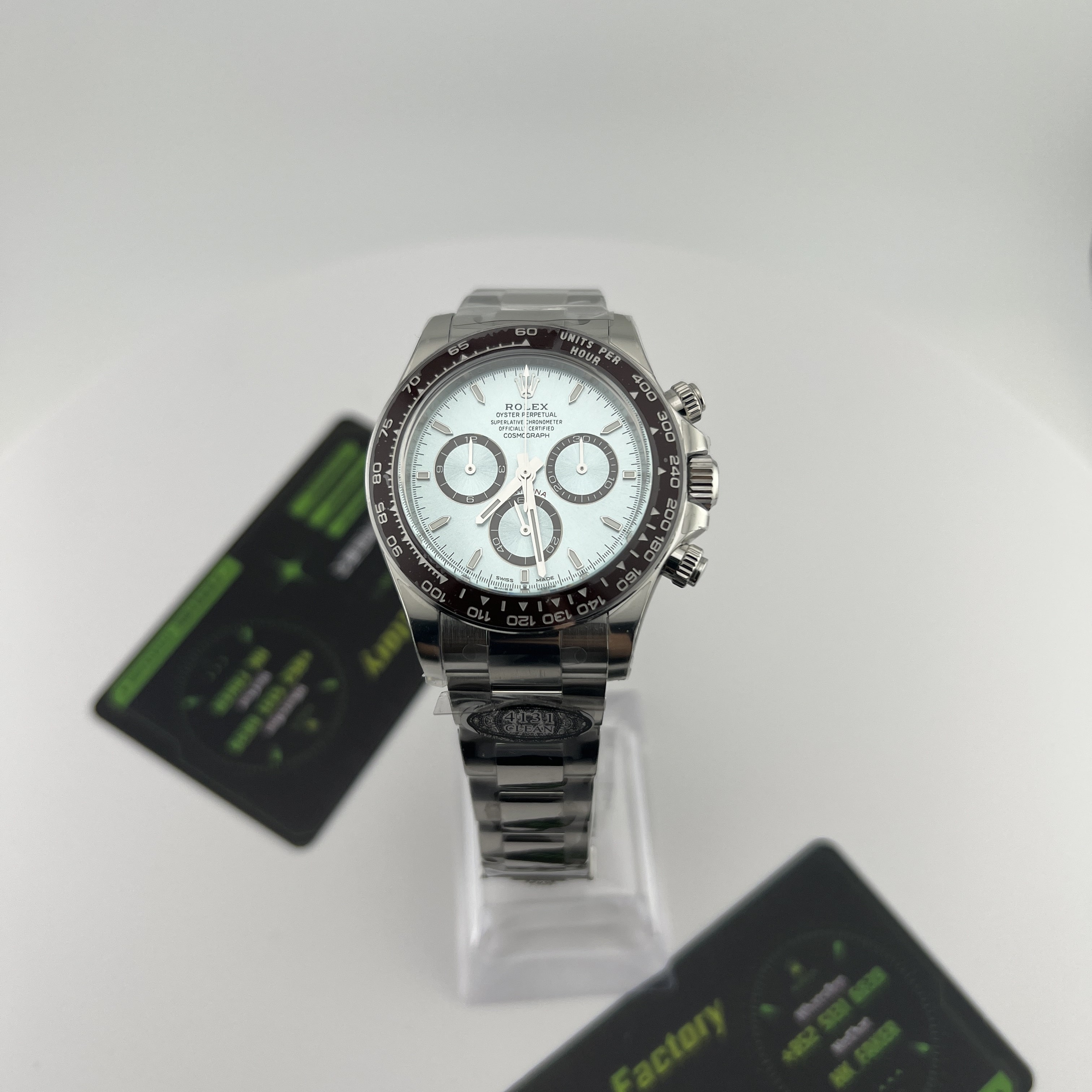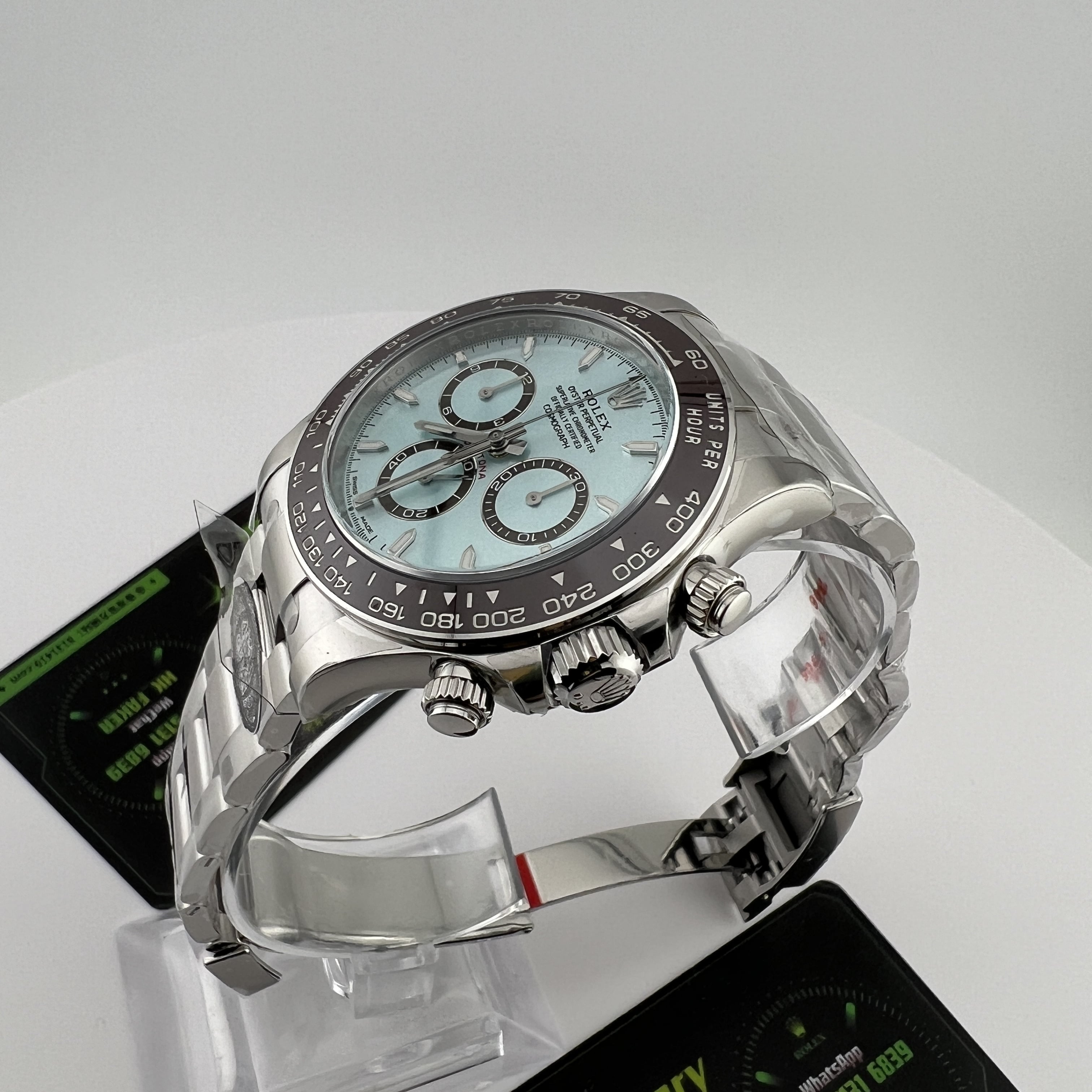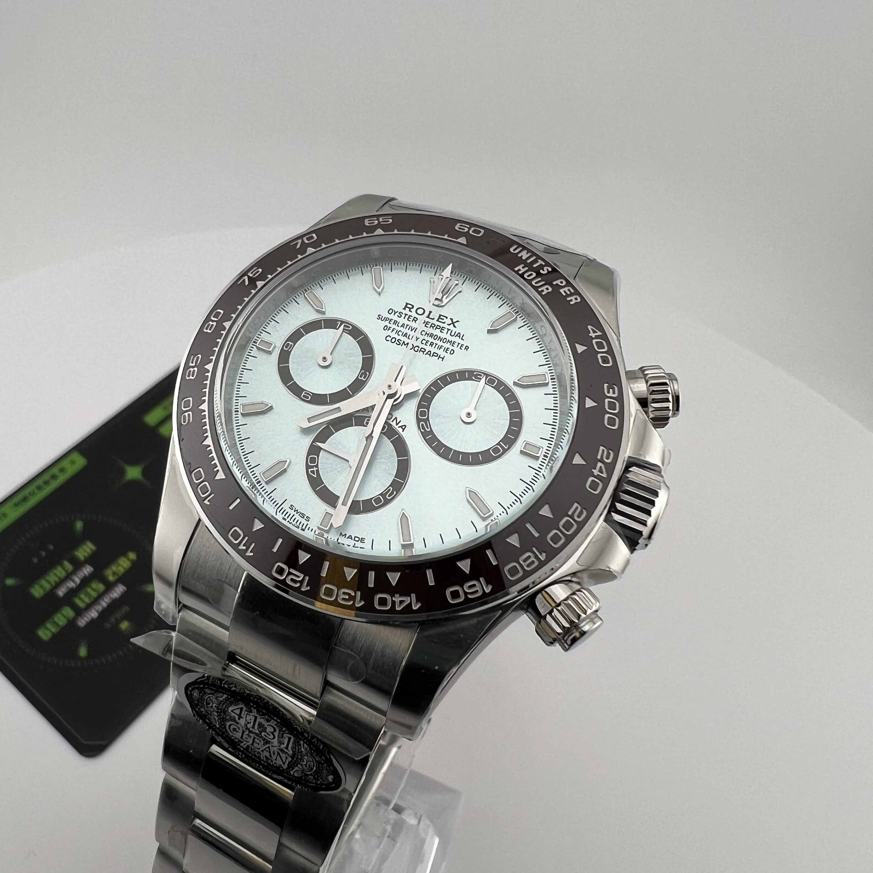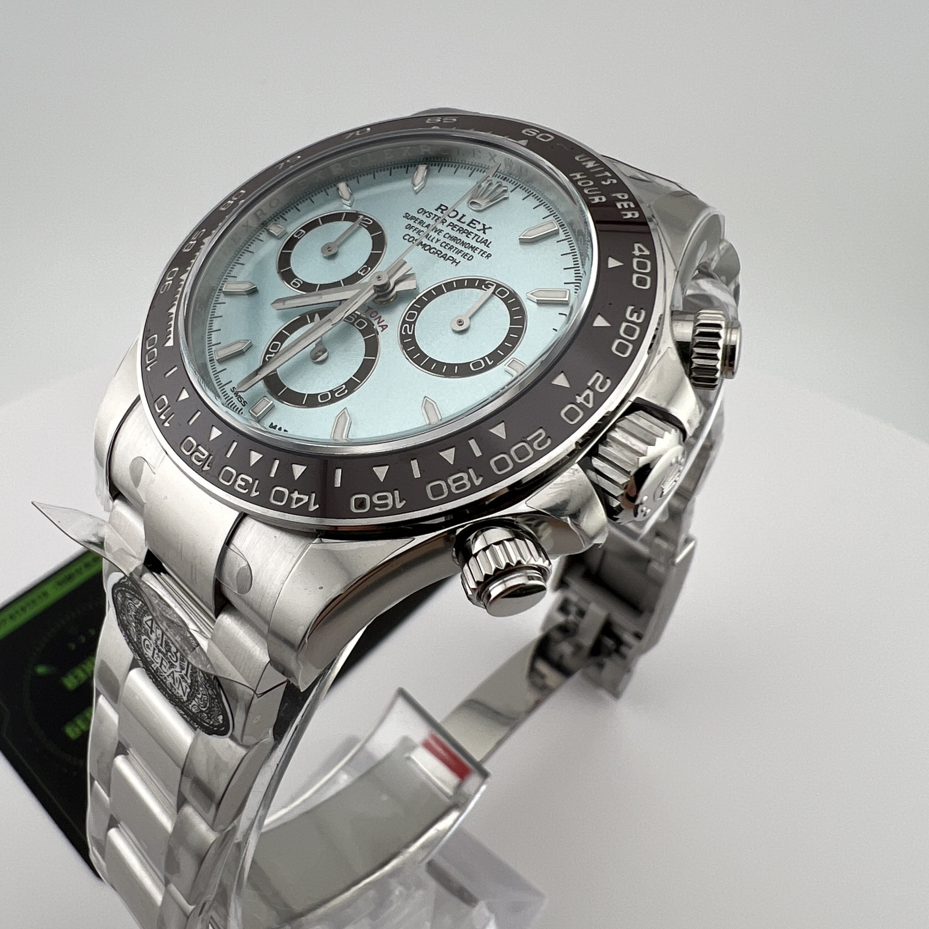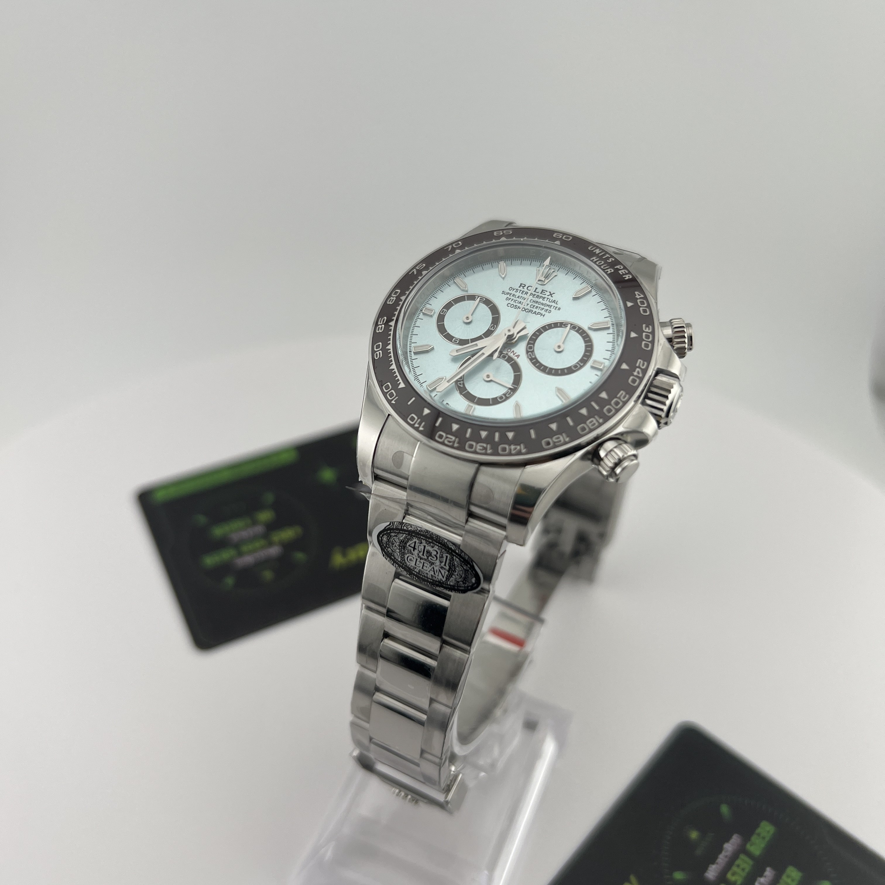 Clean廠香港官網全新推出的勞力士地通拿系列m126506-0001背透機芯全新亮相,此次作為全網首發由CleanFactory香港官網直營店獨家實拍,目前Clean廠126506一共推出了0001型號為條丁版本,126506-0002則是鑽刻版本.兩款冰藍地通拿都是以正品勞力士官方在2023年推出的最新款4131機芯地通拿相機1:1復刻而成,也將m116506冰藍地的貴,精,稀的特性完美傳承下來,秉承了出身即是豪門氣質的地通拿.Clean廠冰藍地在對比原裝正品情況下最大的缺陷就是重量差問題,不過這個缺陷是屬於正常現象,不單只針對C廠4131冰藍地,同時是針對高仿市面上所有廠家.在未出品配重版本前提下,高仿Daytona126506以及其他K金錶款都是存在重量差.由於原裝正品是使用到18K鉑金材質打造,而C廠地通拿冰藍款式則是採用904L精鋼外加PVD電鍍工藝完成製作.