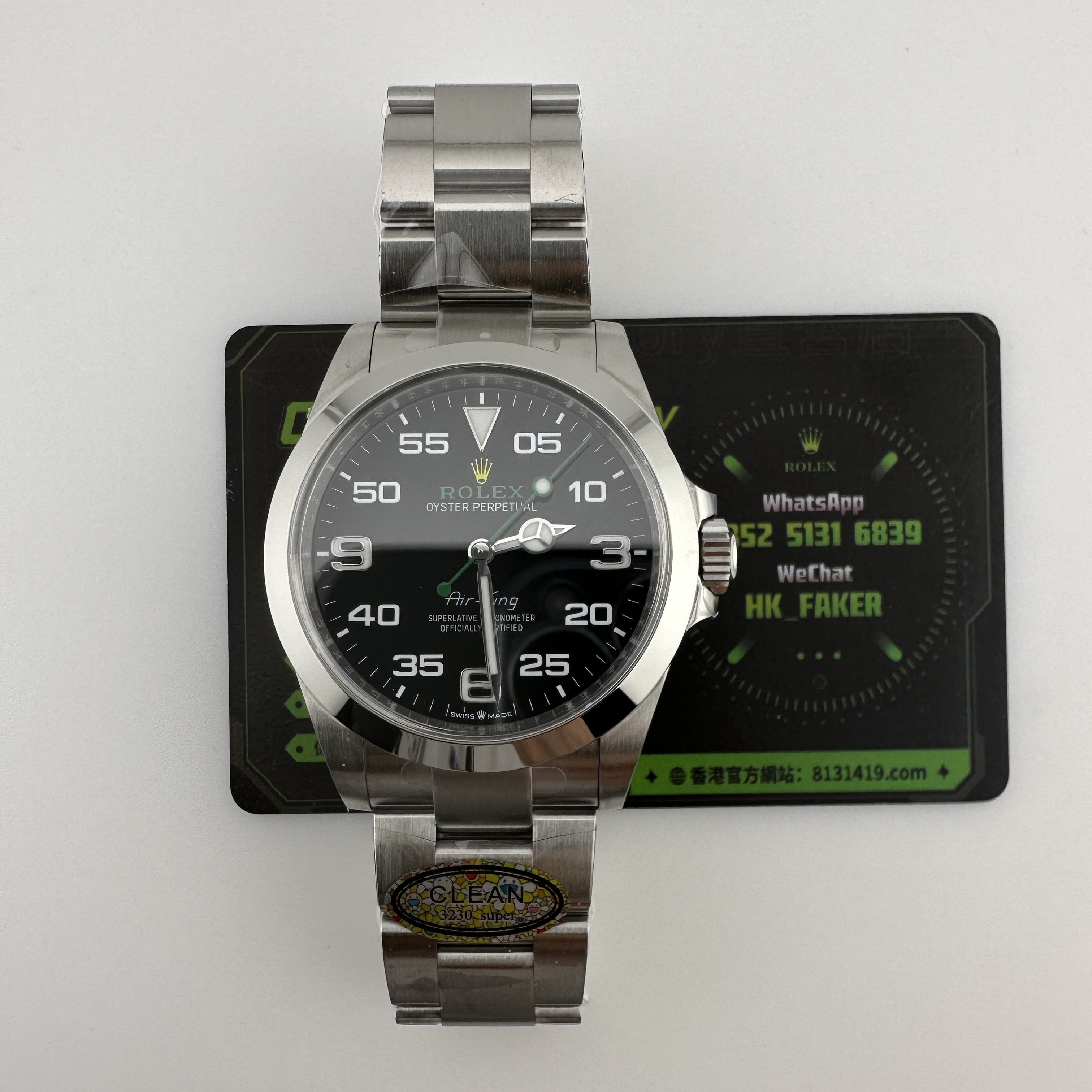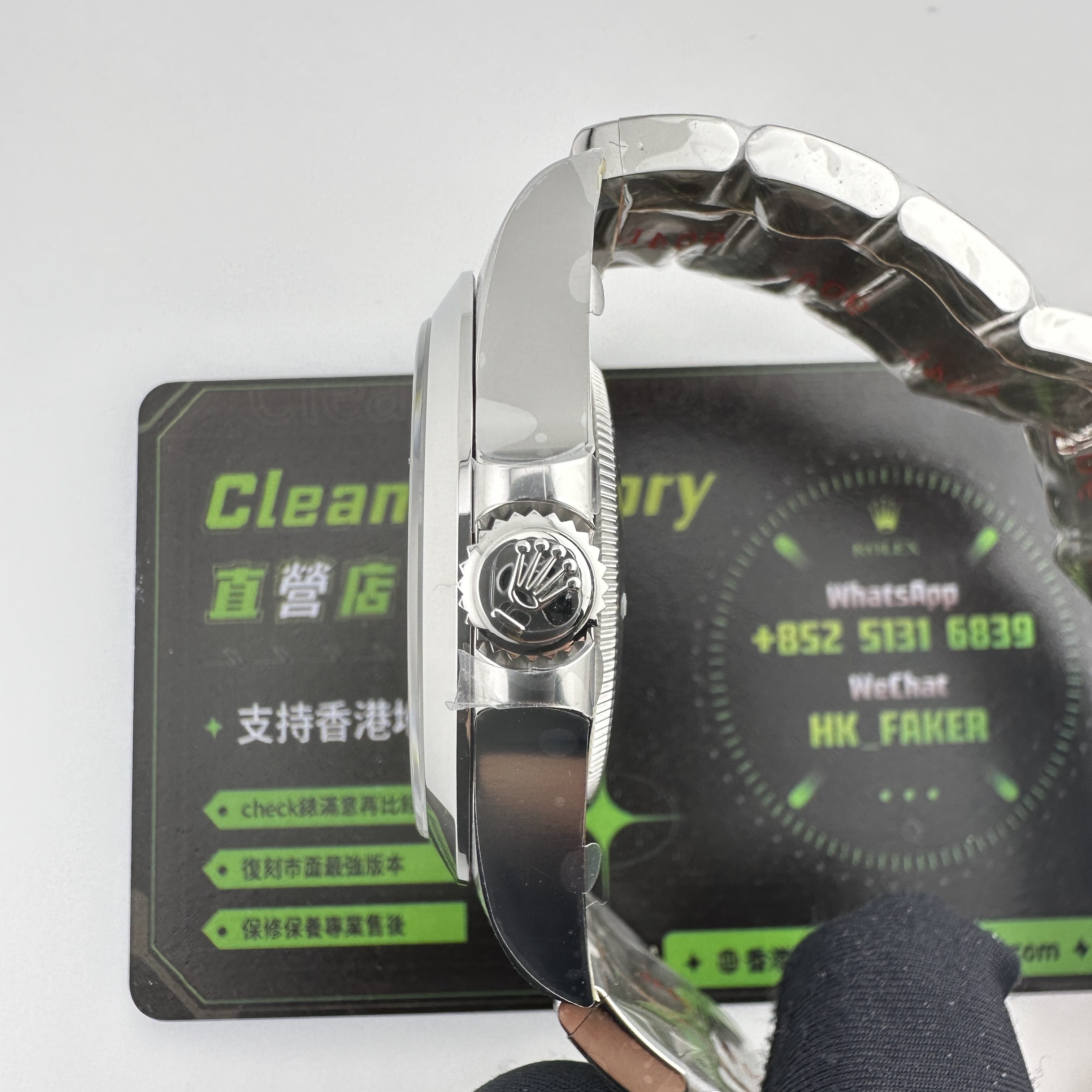 Clean廠勞力士全新推出空中霸王系列,作為勞力士入門級別腕錶,在Clean廠頂級復刻工藝下,進行一比一還原正品最新版本.整錶尺寸36mm,使用與原版一致的904L精鋼材質打造.錶殼弧度呈現鷹嘴狀,在對比原版錶殼結構做到精度打磨拋光.表面拉絲跡象明顯,側面部分做的拋光,反光角度極致狀態.圈口邊緣向下呈現弧度狀態,拋光後的效果圓潤度都附帶了立體感.同時可以通過右邊調節把頭部分可以辨認出一代或者是二代版本空霸.C廠勞力士做的這款空霸是根據正品在2022年發佈的最新款,把頭兩端帶有護耳,不僅辨別版本區別,而且對於把頭的保護也做到了實際用途.