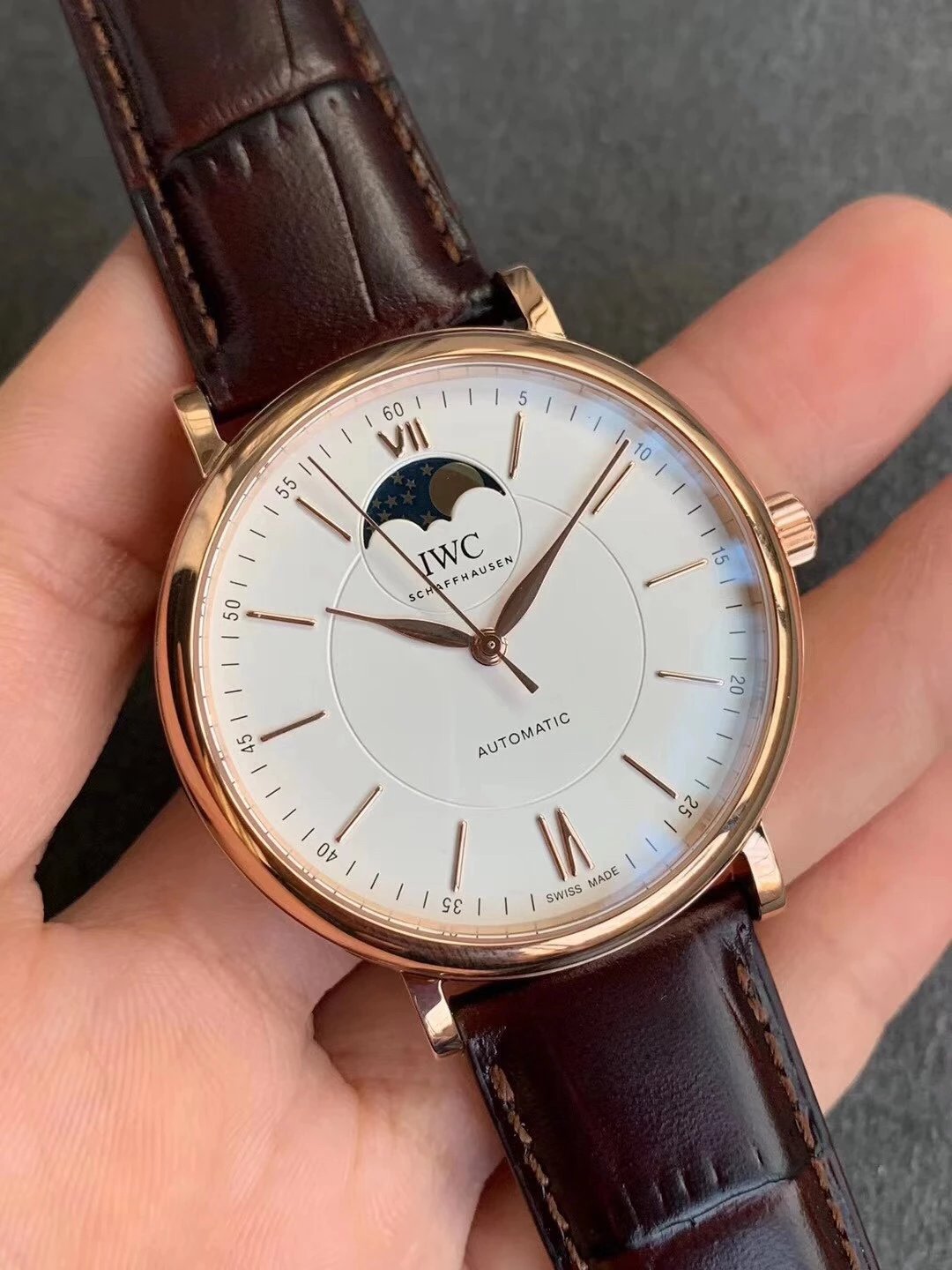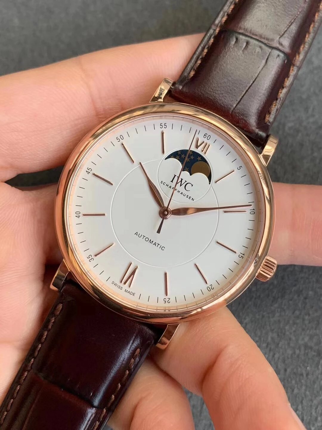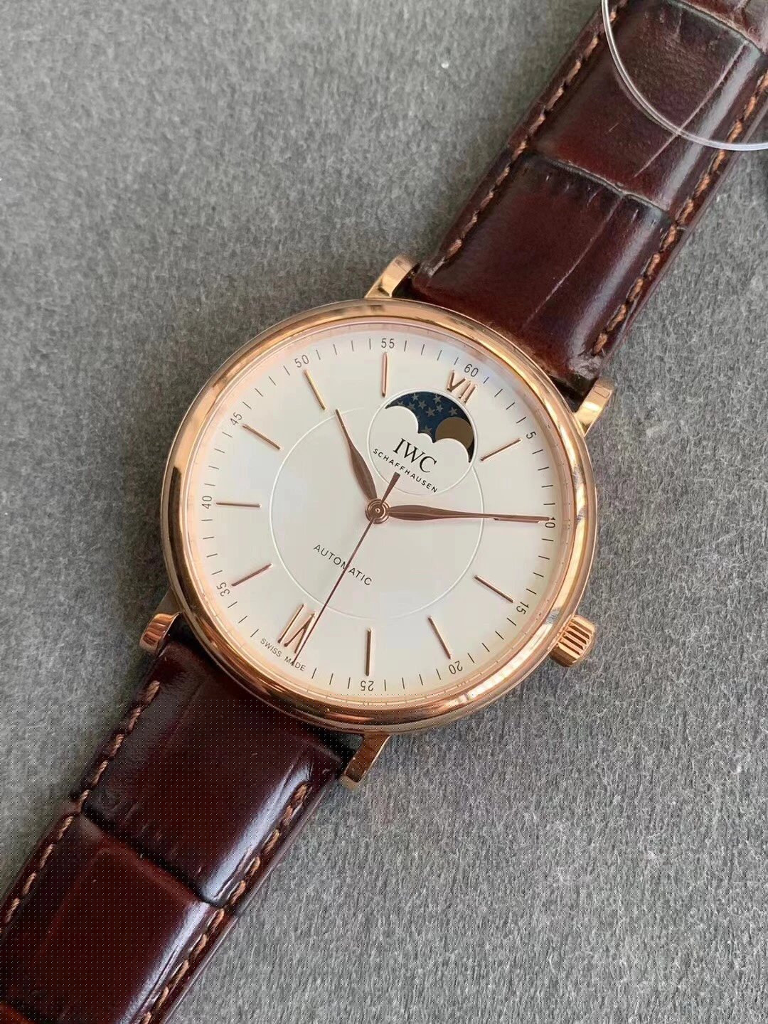 MKS萬國柏濤菲諾系列IW459401玫瑰金月相 棕色皮帶男士機械手表