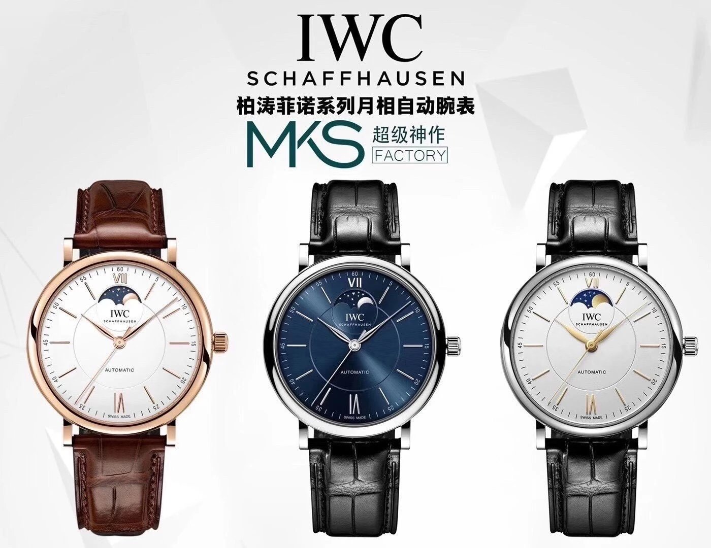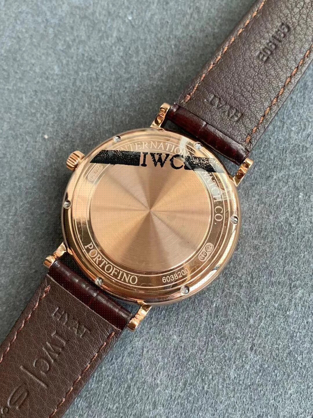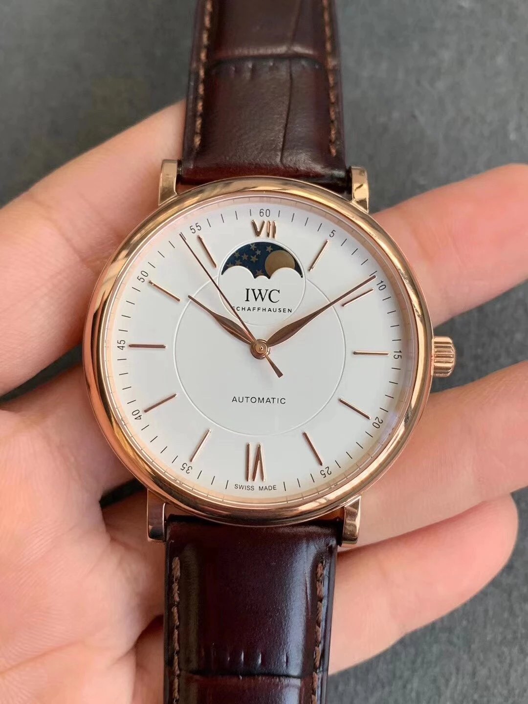 MKS萬國柏濤菲諾系列IW459401玫瑰金月相 棕色皮帶男士機械手表