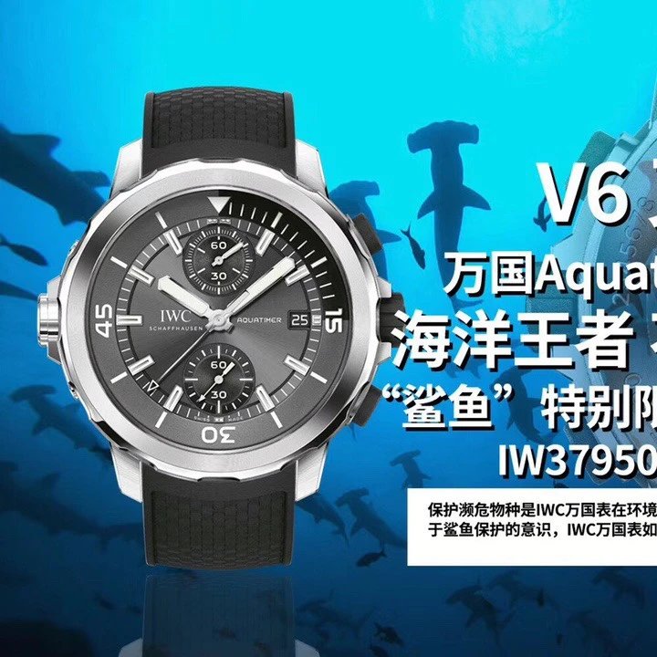 為了進步大眾關於鯊魚保護的意識, iwc 萬國表如今在極具代表性的海洋時計潛水腕表系列中推出一款特別限量版時計:萬國Aquatimer海洋時計計時IW379506鯊魚特別版腕表!下麵隨著一起來看看這款萬國海洋時計鯊魚腕表做工究竟如何!