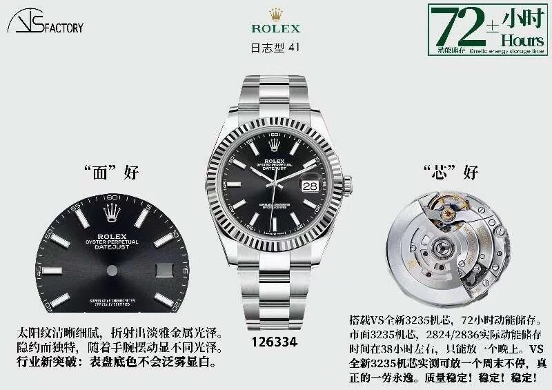 【VS廠出品】一比一頂級複刻勞力士日誌型m126334-0017黑盤41mm,新版6點位小皇冠logo新款錶盤,搭載VS獨家機芯,動力儲存可達70小時,尺寸41x13mm,VS自產3235自動機械機芯,904L鋼表殼錶鏈,藍寶石鏡面,折疊扣,防水大於50米級