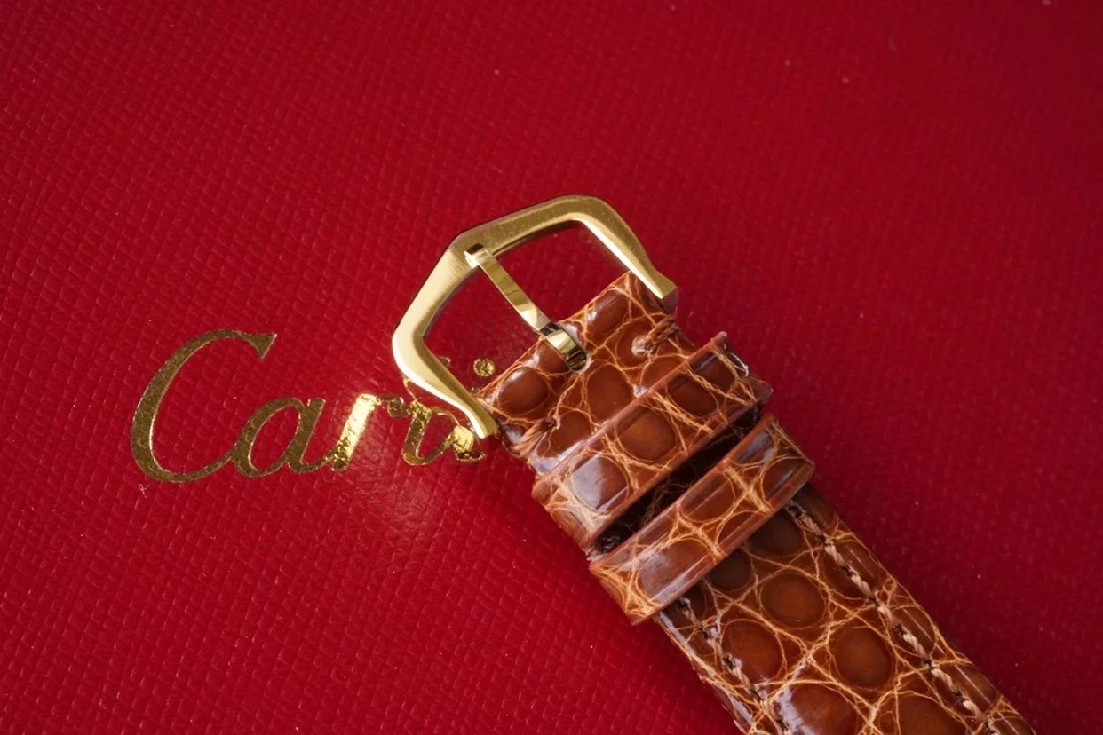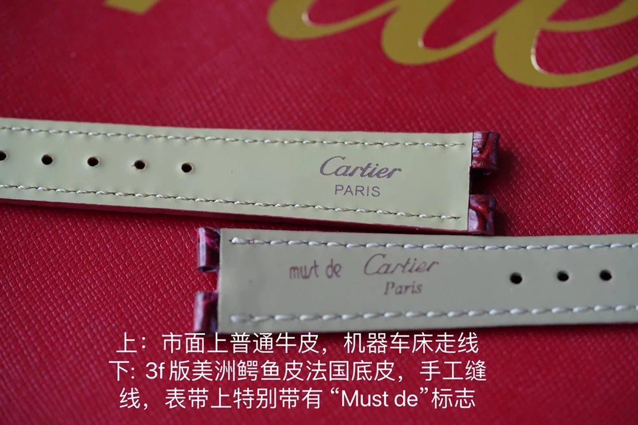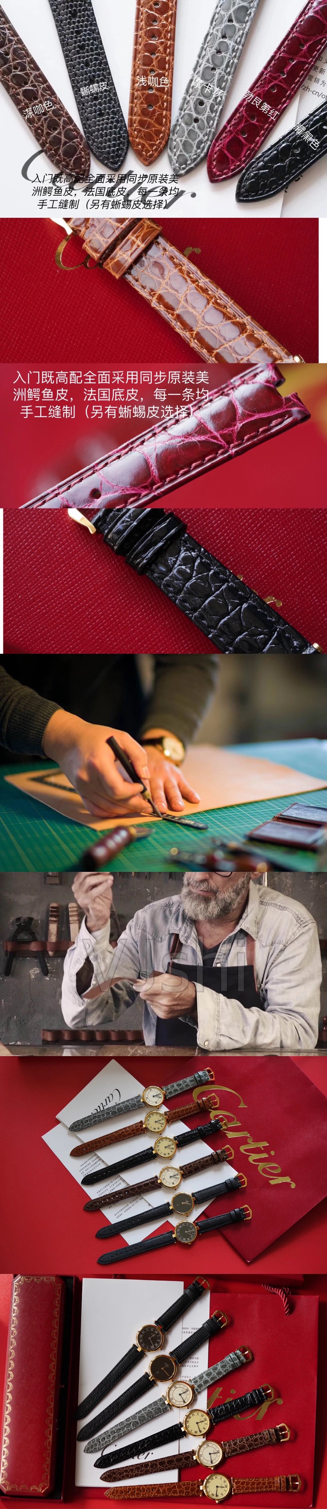 1 ?入門既高配全面採用同步原裝美洲鱷魚皮,法國底皮,每一條均手工縫製(另有蜥蜴皮選擇)錶帶上特別帶有 “Must de”標誌,鱷魚皮顏色可以指定,默認發貨深咖色