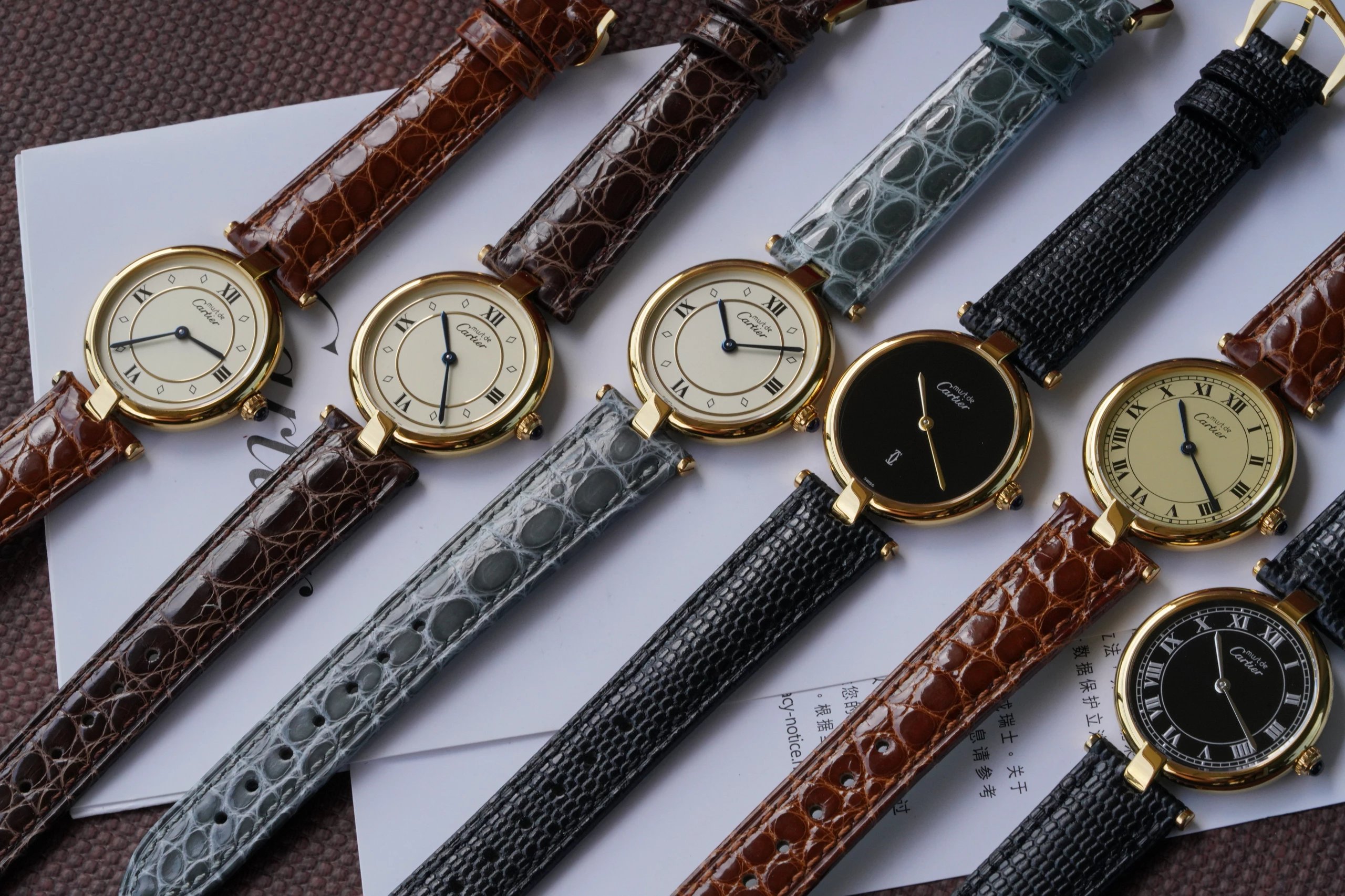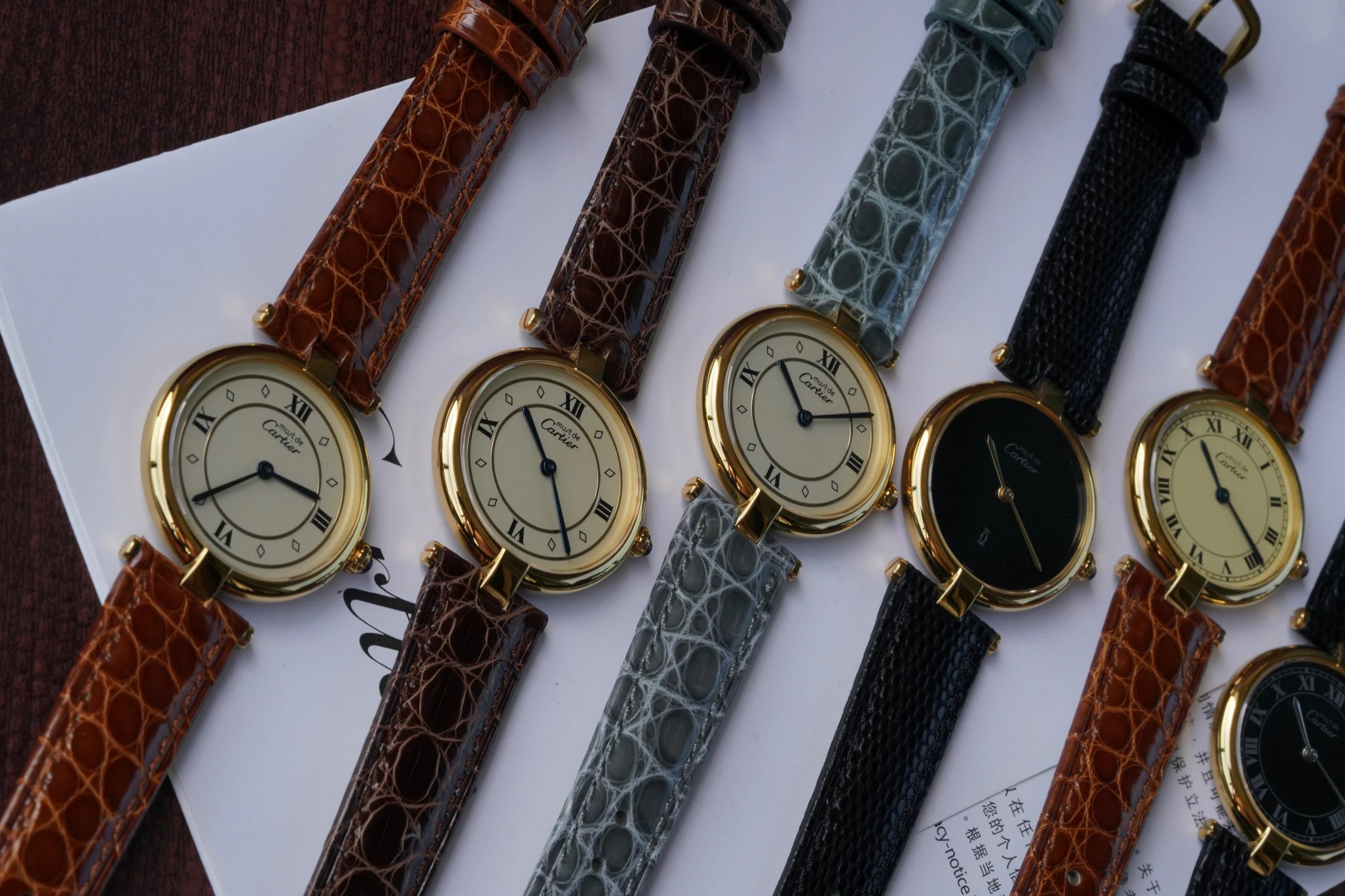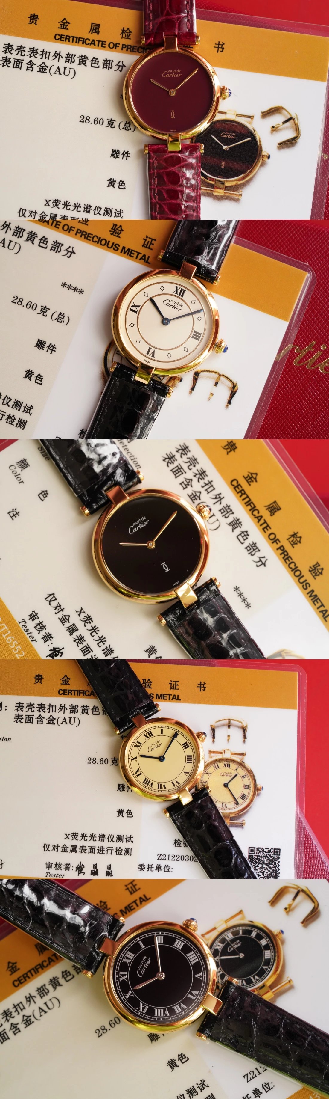 1 ?入門既高配全面採用同步原裝美洲鱷魚皮,法國底皮,每一條均手工縫製(另有蜥蜴皮選擇)錶帶上特別帶有 “Must de”標誌,鱷魚皮顏色可以指定,默認發貨深咖色