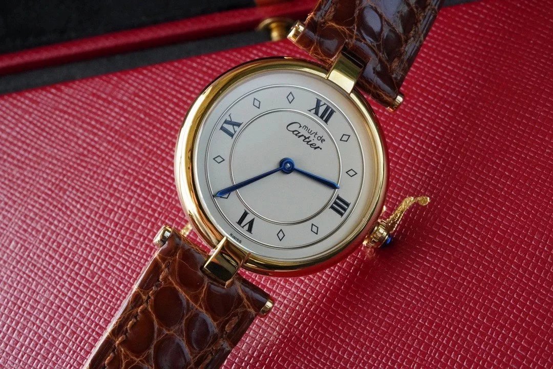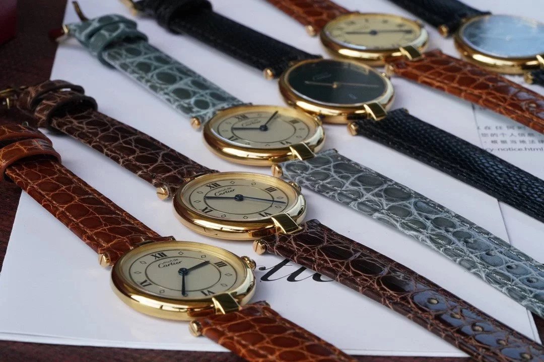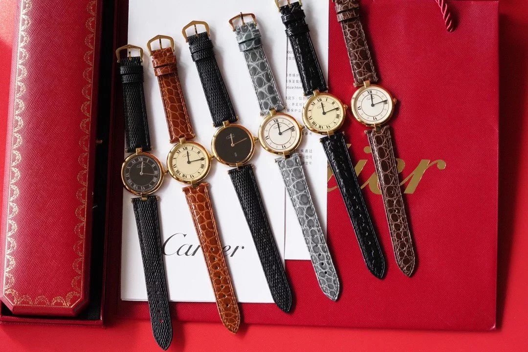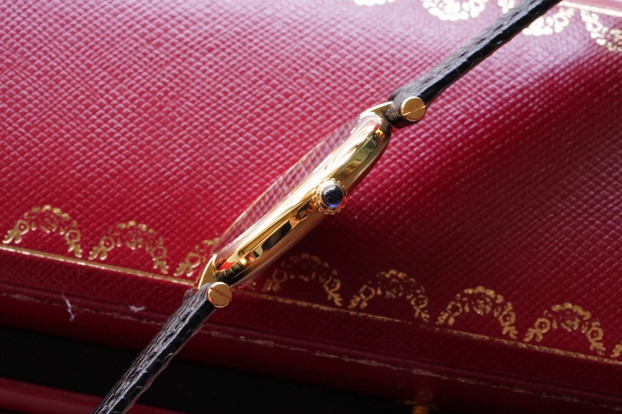 Les Must de Cartier系列將卡家的傳統設計經典美學與超凡創意、簡約線條與無限活力、標誌性魅力與自由精神彰顯得淋漓盡致。邂逅新時代潮流造型大膽,時光流轉 經典永恆,流轉百年風靡依舊,百年都不會過時,錶盤兩頭以簡潔的T形金屬銜接錶帶,採用美洲鱷魚皮錶帶,雙面皮透氣好,由於此款腕表產於80年代,部分零件流失後配!中古美表不僅滿滿的vintage韻味,而且一點也不過時!配全套包裝出!送禮佳品!