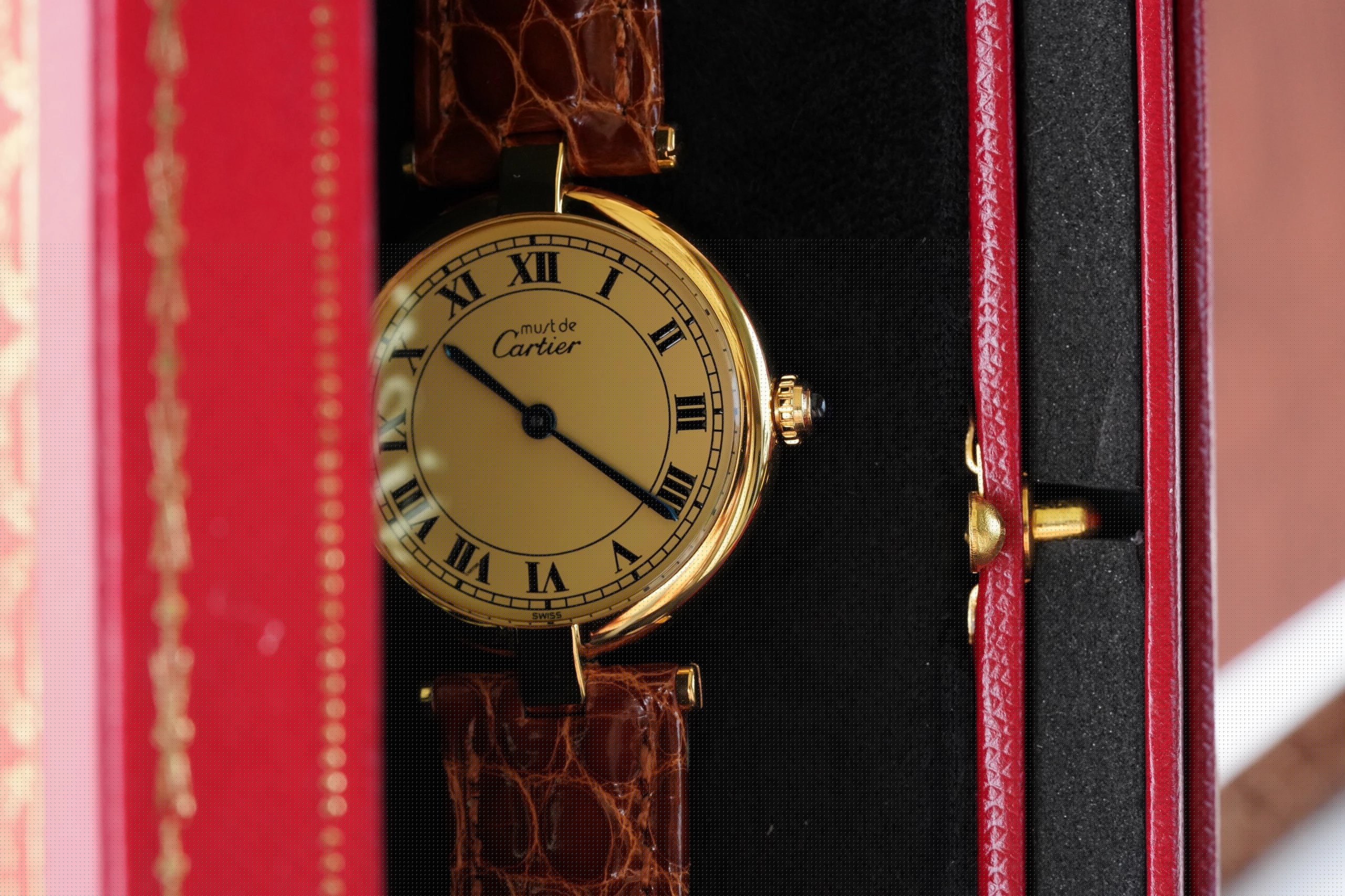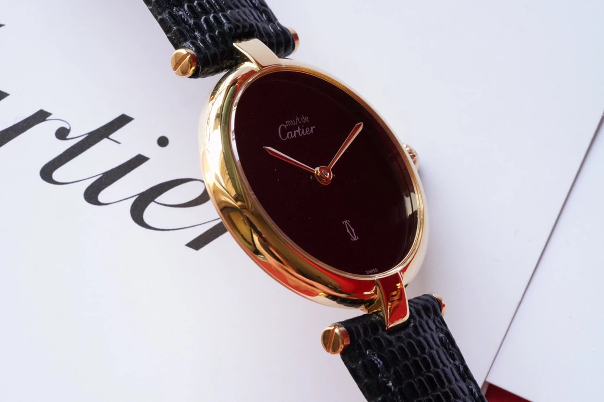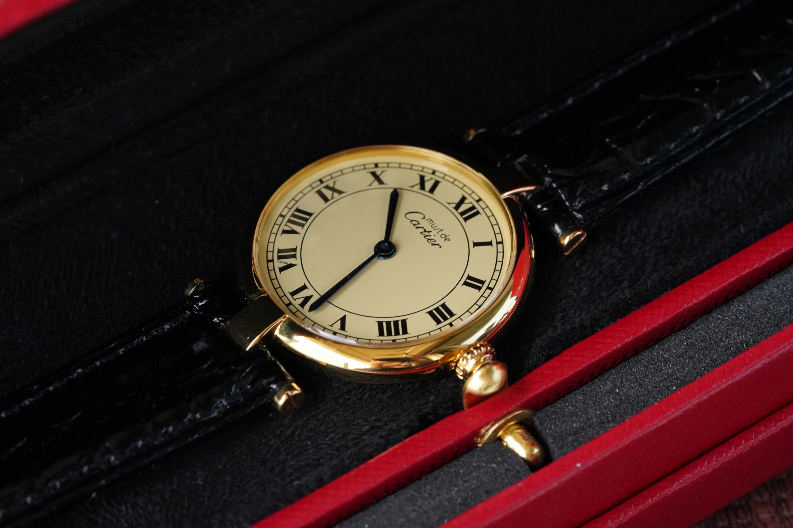Les Must de Cartier系列將卡家的傳統設計經典美學與超凡創意、簡約線條與無限活力、標誌性魅力與自由精神彰顯得淋漓盡致。邂逅新時代潮流造型大膽,時光流轉 經典永恆,流轉百年風靡依舊,百年都不會過時,錶盤兩頭以簡潔的T形金屬銜接錶帶,採用美洲鱷魚皮錶帶,雙面皮透氣好,由於此款腕表產於80年代,部分零件流失後配!中古美表不僅滿滿的vintage韻味,而且一點也不過時!配全套包裝出!送禮佳品!