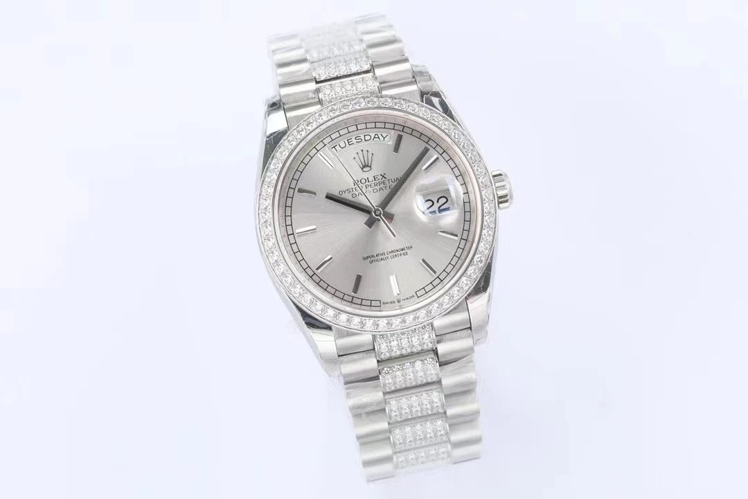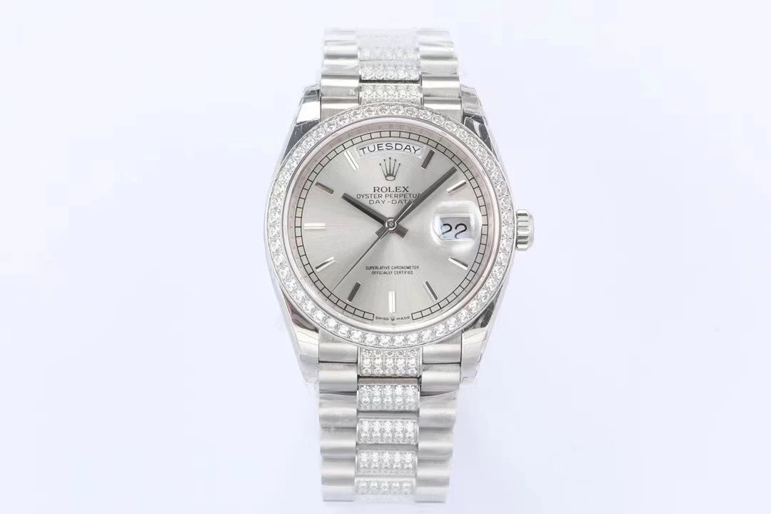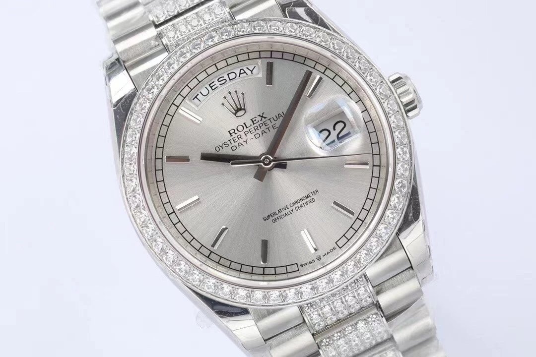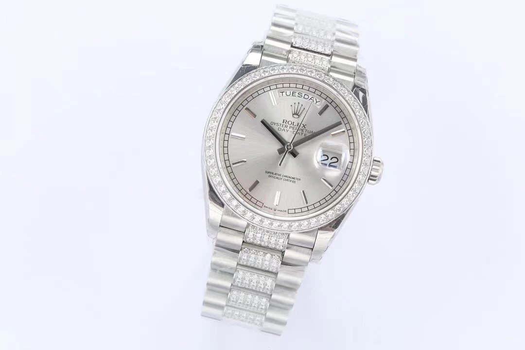 2022新品,EW 勞力士 星期日志型36 1?? 錶盤設有18ct金,鑲鑽石,6及9點鐘位置鑲方形鑽石。 2??蠔式表殼結構,一體中層表殼,旋入式底蓋及上鏈表冠。 3??結構尺寸厚度同步原裝,直徑36毫米,厚度為12毫米。 4??搭載3255自動上鏈機芯,快調瞬跳星期日曆、做到調時、厚度、結構同步原版。 5??頂級做工,每條錶帶與表耳完美契合,給予手腕最高的舒適度; 6?? 表扣做工前無來者,打開logo輕鬆解開!請認准細節 每個極致的細節都是EW工廠匠心開發的誠意!! 圖片來自實物高清拍攝? 無濾鏡!所見即所得! 我們都是通過平臺擔保交易,收到後 不喜歡 不滿意 完全可以申請退款退貨。我們機芯終身免費保修有問題直接聯繫我們(石英十年免費更換電池) 我們打包配有包裝 含發票?說明書,真正做到一應俱全!送人自用首先!