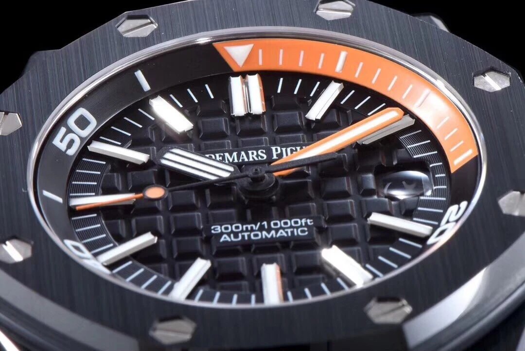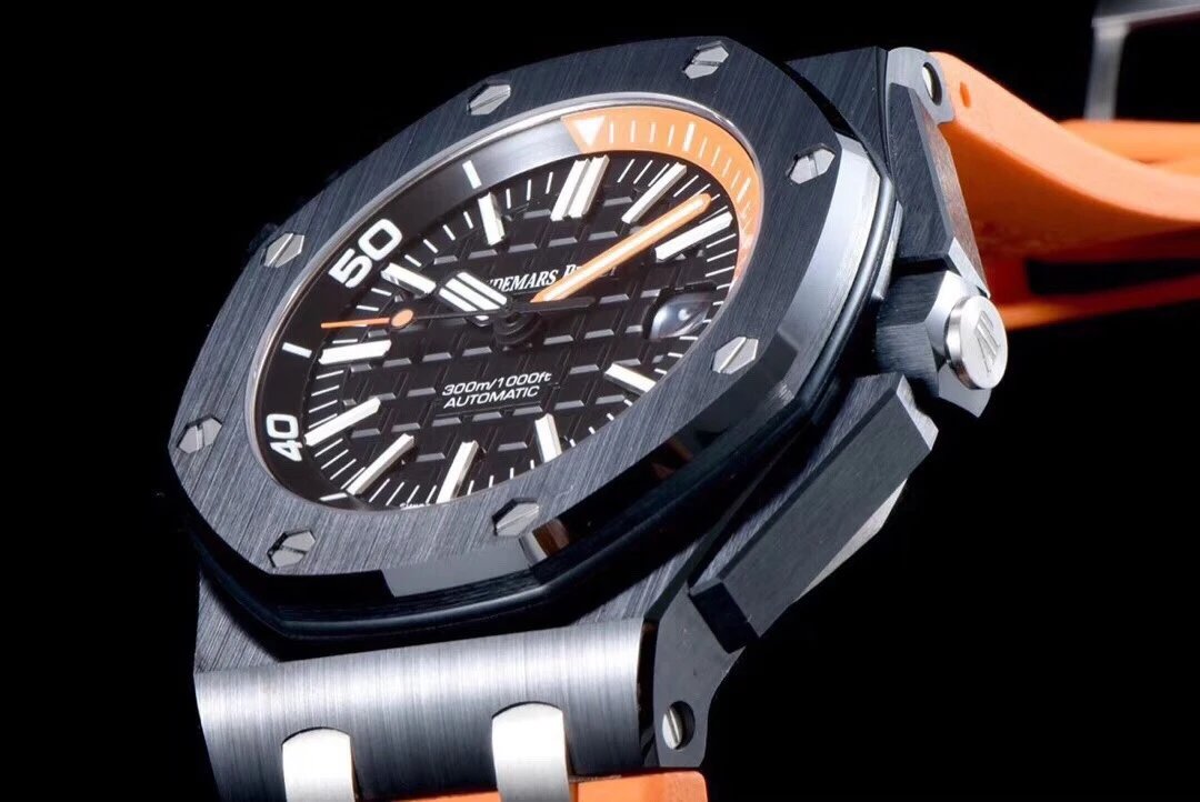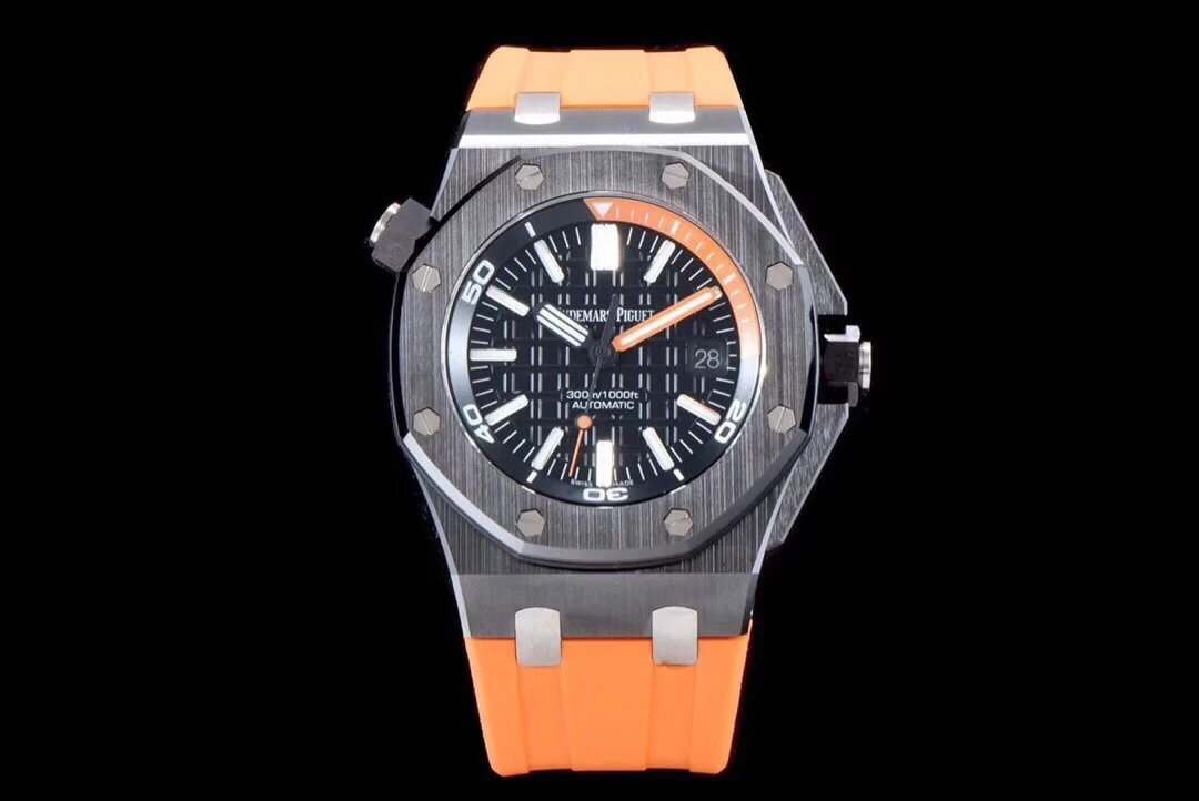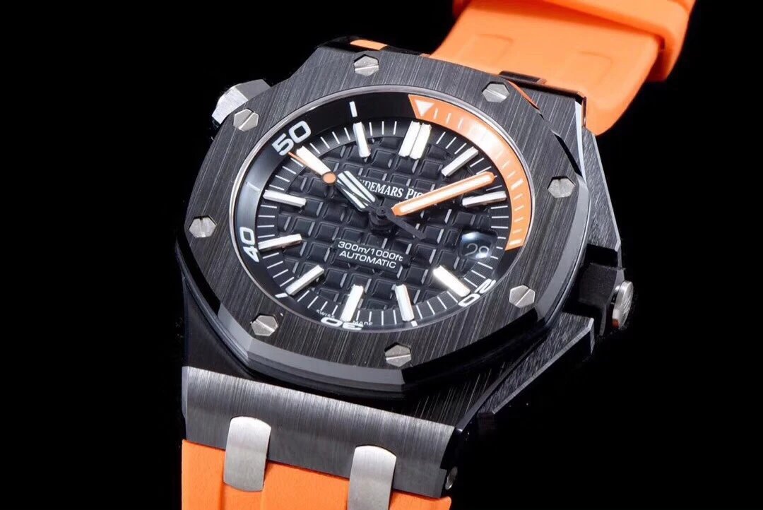XF升級版15707,1全新升級 活動版頭粒 升級不加價!並隨表任意贈送天然橡膠錶帶一幅!鹿晗近期同款代言:皇家橡樹離岸型DIVER 升級版 A.P 最新版字面+時分針,進口面玻,透射≥97%,市面最強面玻之一,性價比超爆!