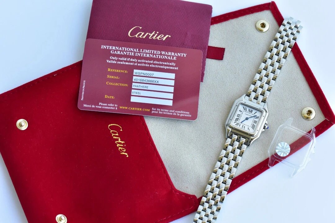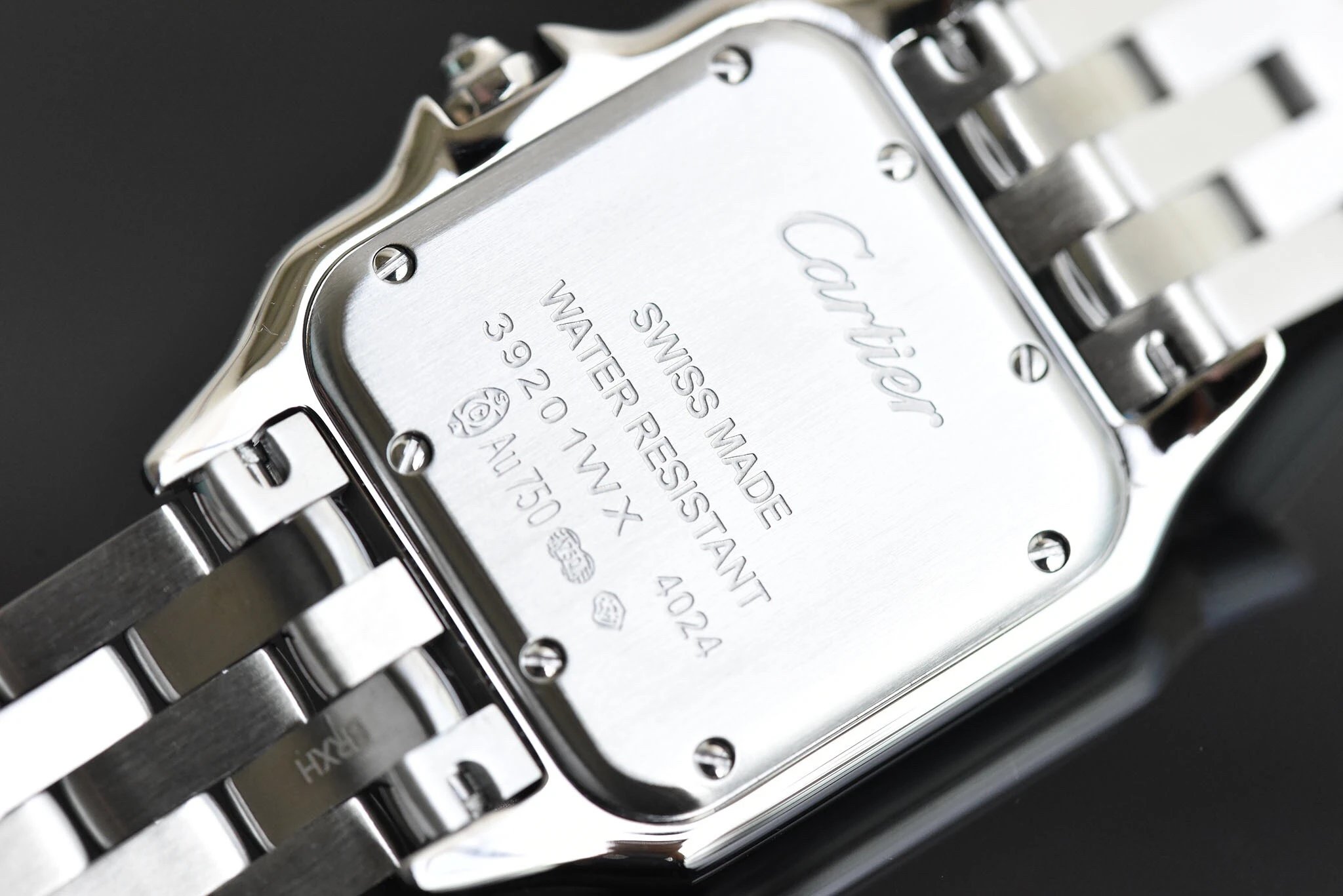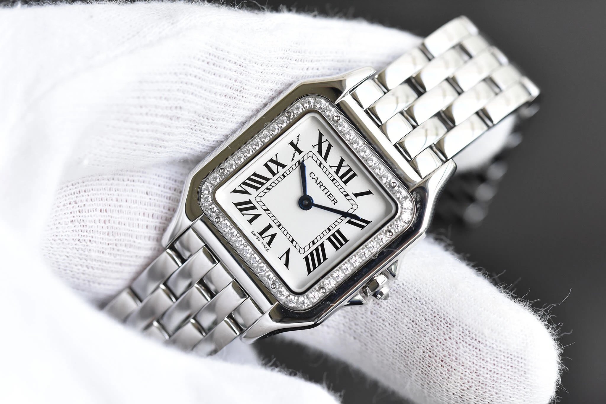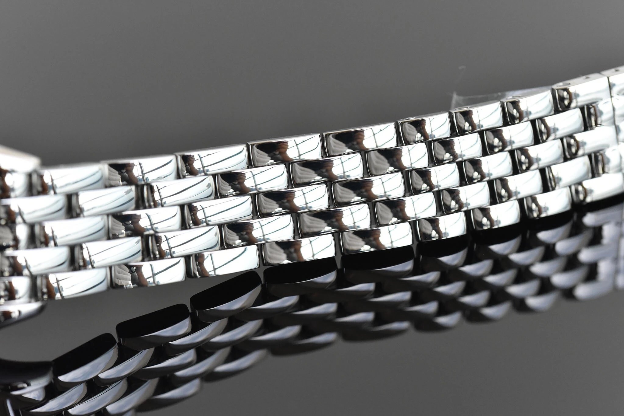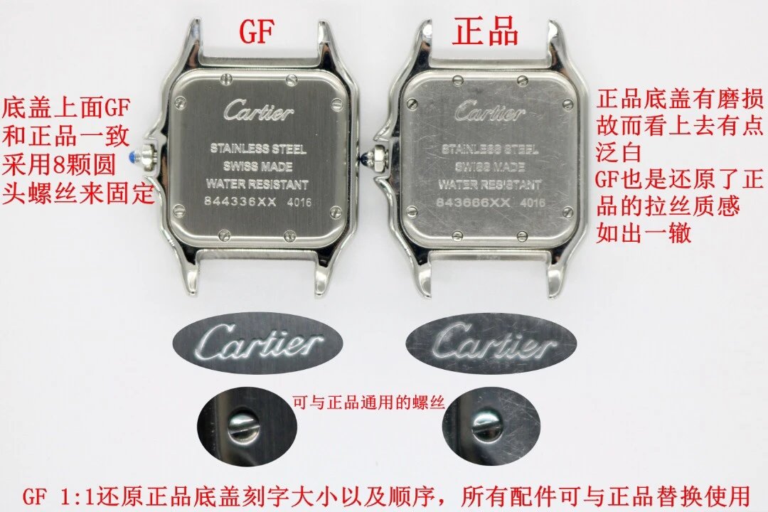 GF工廠以精湛技藝,原裝開模,打造出與正品無異的精美流線表耳,與表殼一體成型。搭載瑞士朗達石英機芯,316L精鋼殼套,尺寸:27 x 37毫米,厚度:6毫米,表冠鑲嵌一顆合成藍色尖晶石,鍍銀錶盤,劍形藍鋼指針,100%三度防水。搭配專櫃旅行包裝物料。