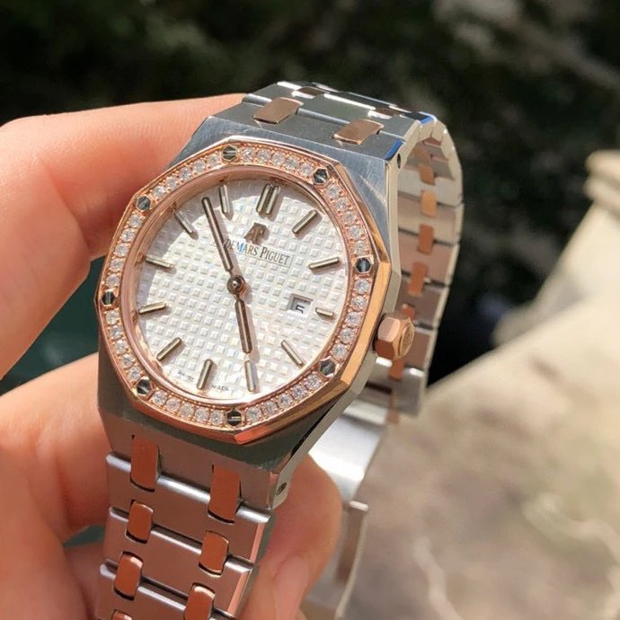 管道貨訂制皇家橡樹67650/67651女裝石英腕表,最牛版本,直徑33mm,316L精鋼表殼,進口瑞士ETA石英金色機芯,藍寶石鏡面,精鋼錶鏈,折疊扣,防水50米,可以和15400搭配情侶款