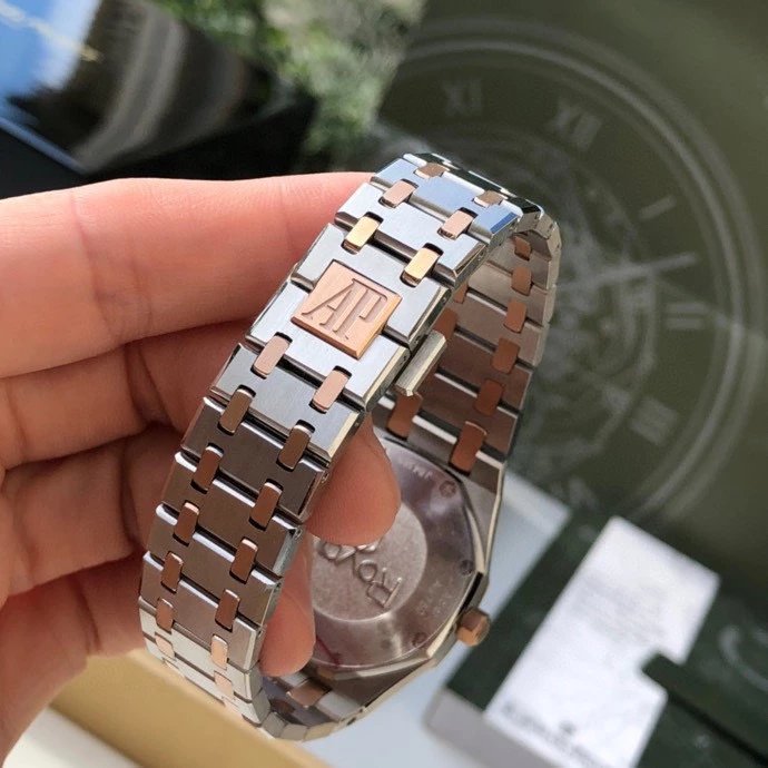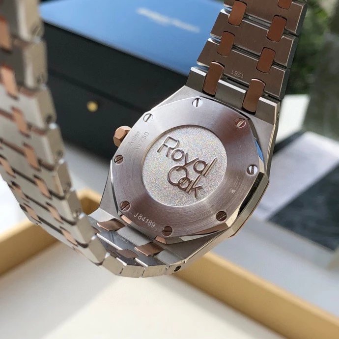 夜光玫瑰金嵌入式時標及Royal Oak皇家橡樹指針。