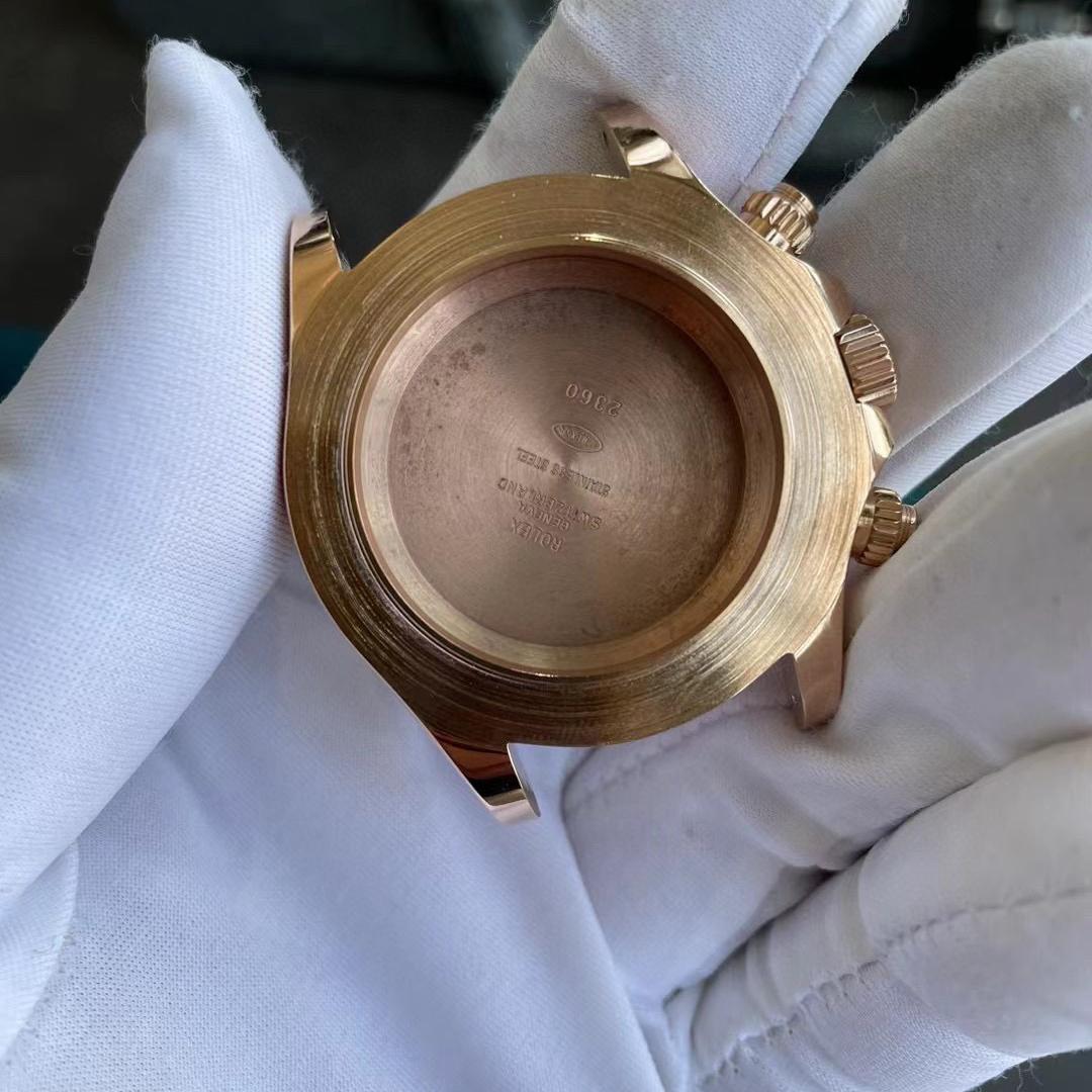 關於目前高仿手錶市面上新增了關於K金錶配重案例,使用新型無毒無害鎢鋼材質打造接近原版克數重量.特別是高仿勞力士地通拿K金款式,相較於對比原版克重是相差比較大的.此前能夠達到正品同步克重唯一的方案就是進行18K金配重.而對比現在鎢鋼材質不僅能夠達到18K金一致的密度大小,在色值方面和重量克數都能夠達到百分之99相似度.特別是造價成本方面,純18K金打造一隻復刻錶改裝配重按照當今K金售價和手工費用最低的價格是在20000HKD左右,這也是膠帶款式地通拿的最低標價,而對於純鋼帶K金材質去打造的話,價格都是非常高昂的.