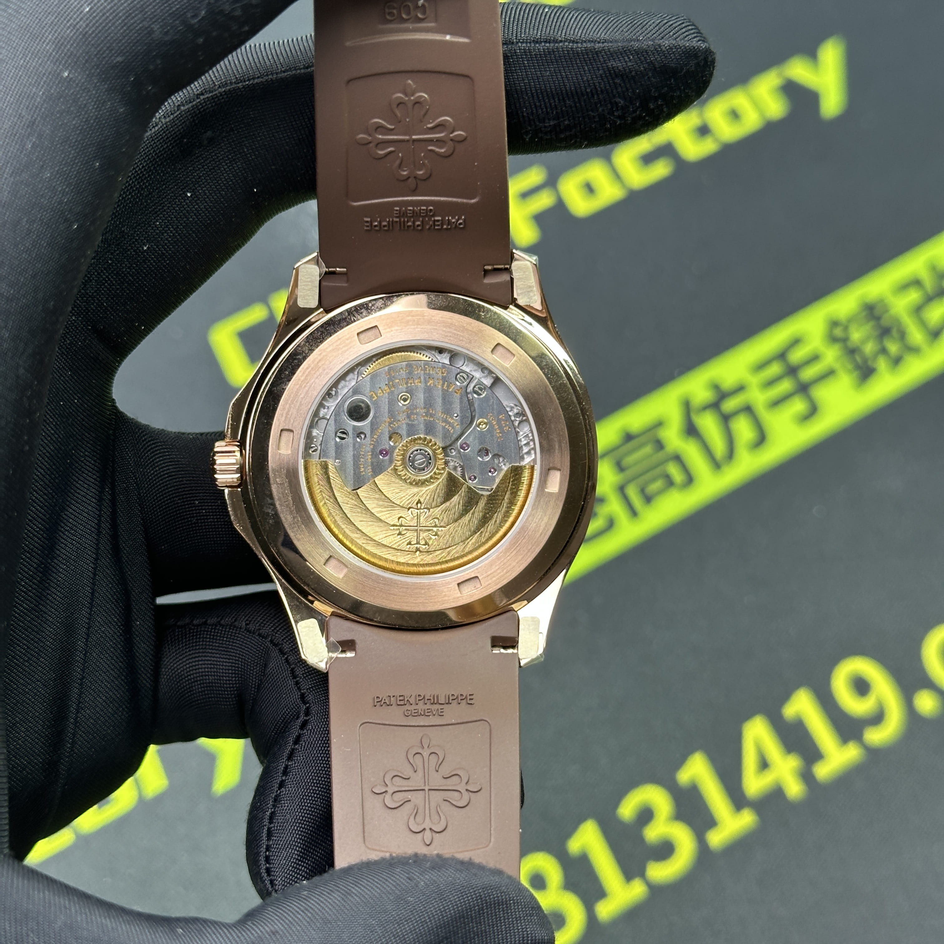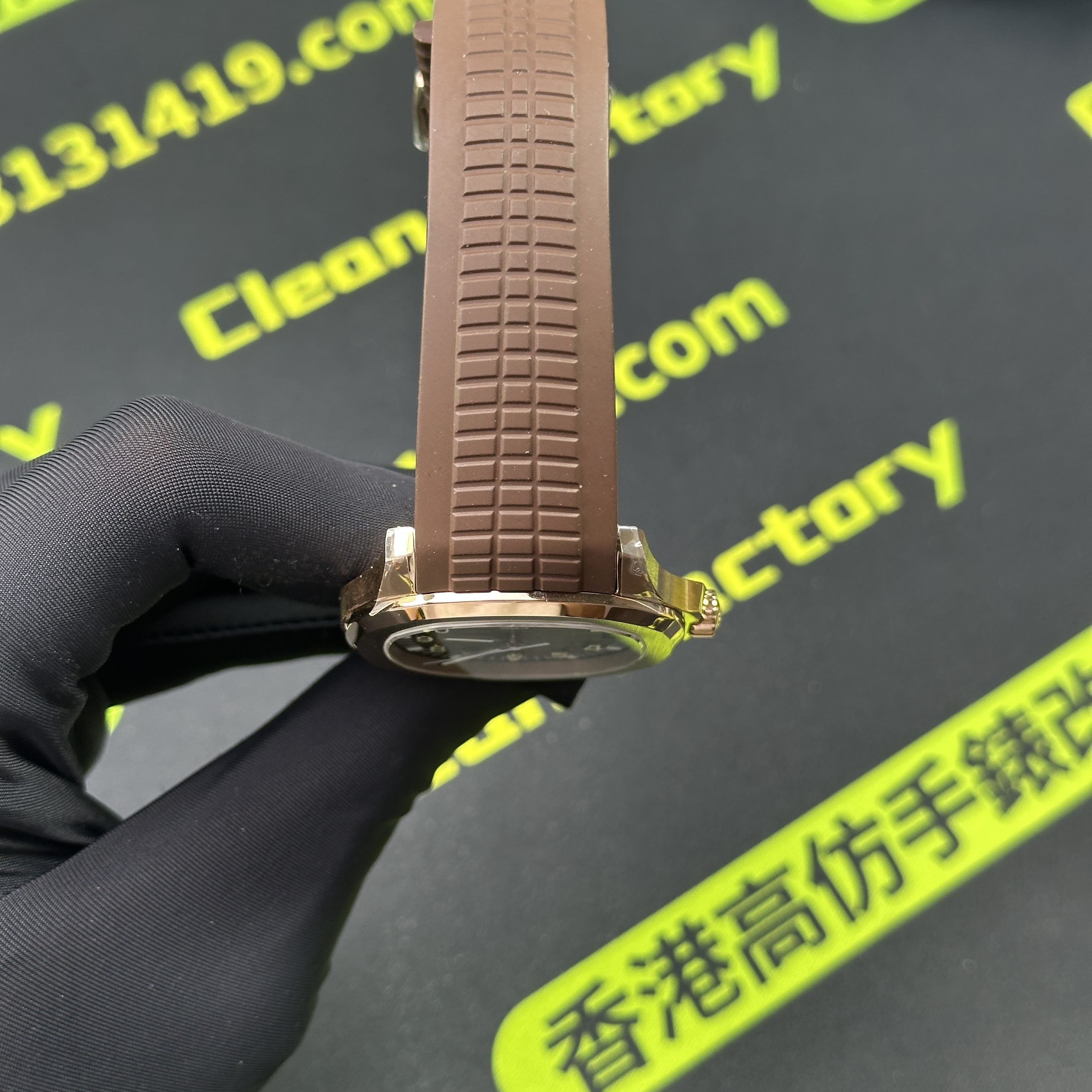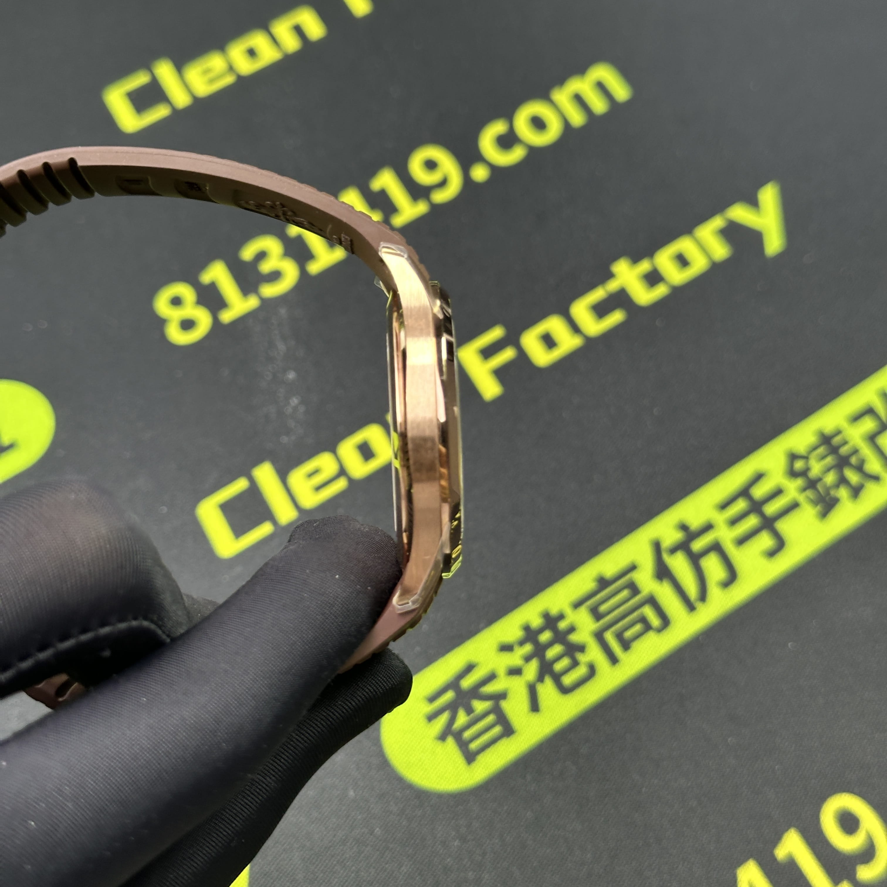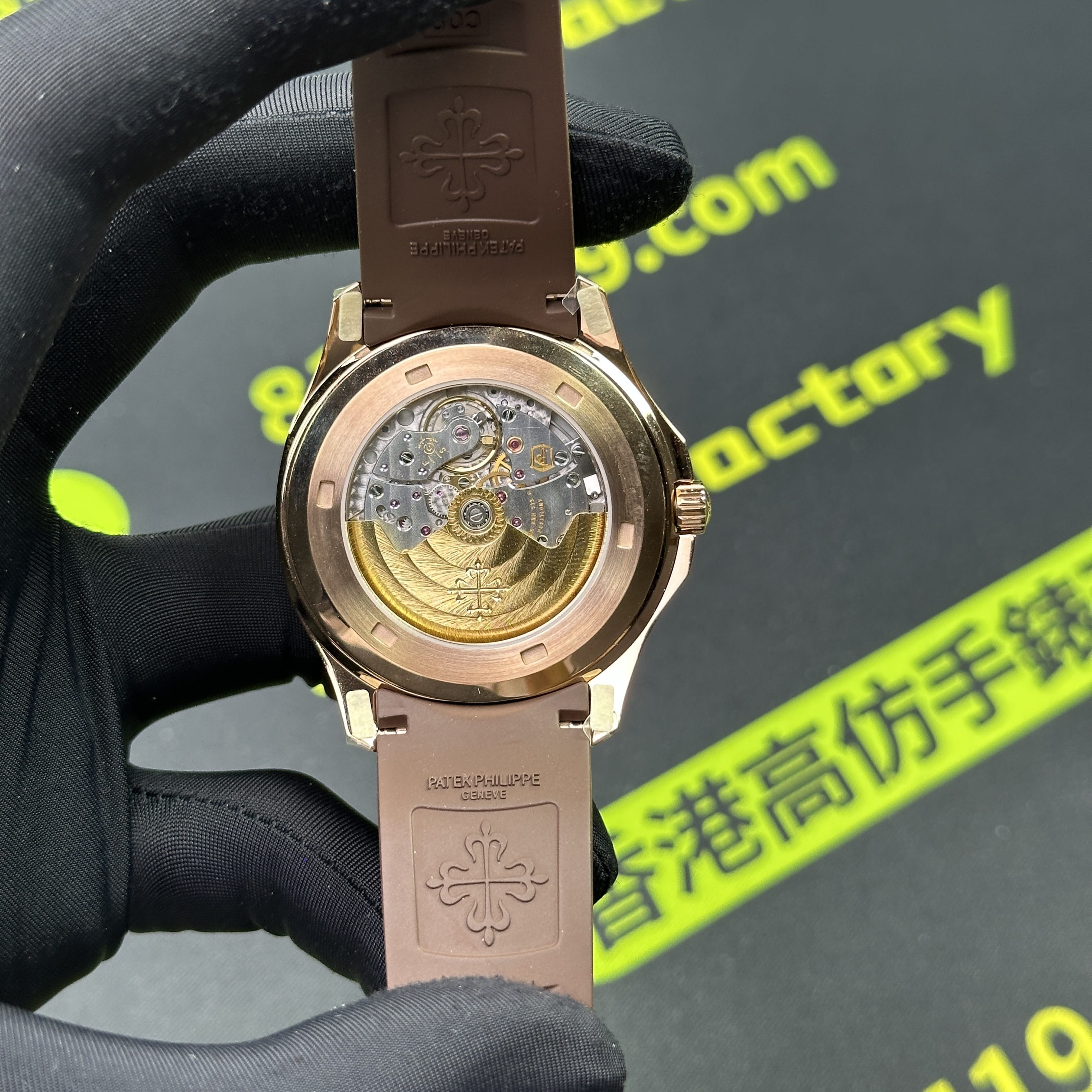 私人訂製版本高仿百達翡麗5167R-001玫瑰金手雷配重版本,整錶尺寸40mm,原有的基礎是使用混合重金屬材質打造,外觀是通過PVD電鍍工藝完成的玫瑰金色澤.高仿百達翡麗5167私人訂製克重是做到了131克,棕色的錶盤搭配棕色的橡膠錶帶,形同手雷表面的結構紋路.在功能方面也是簡易的三大針結構,只有日曆調校功能.背透式底蓋機芯.不過這些都是高仿手雷配重版本標配的基礎配件,後續達到更加頂級的版本是需要通過改裝升級完成製作.