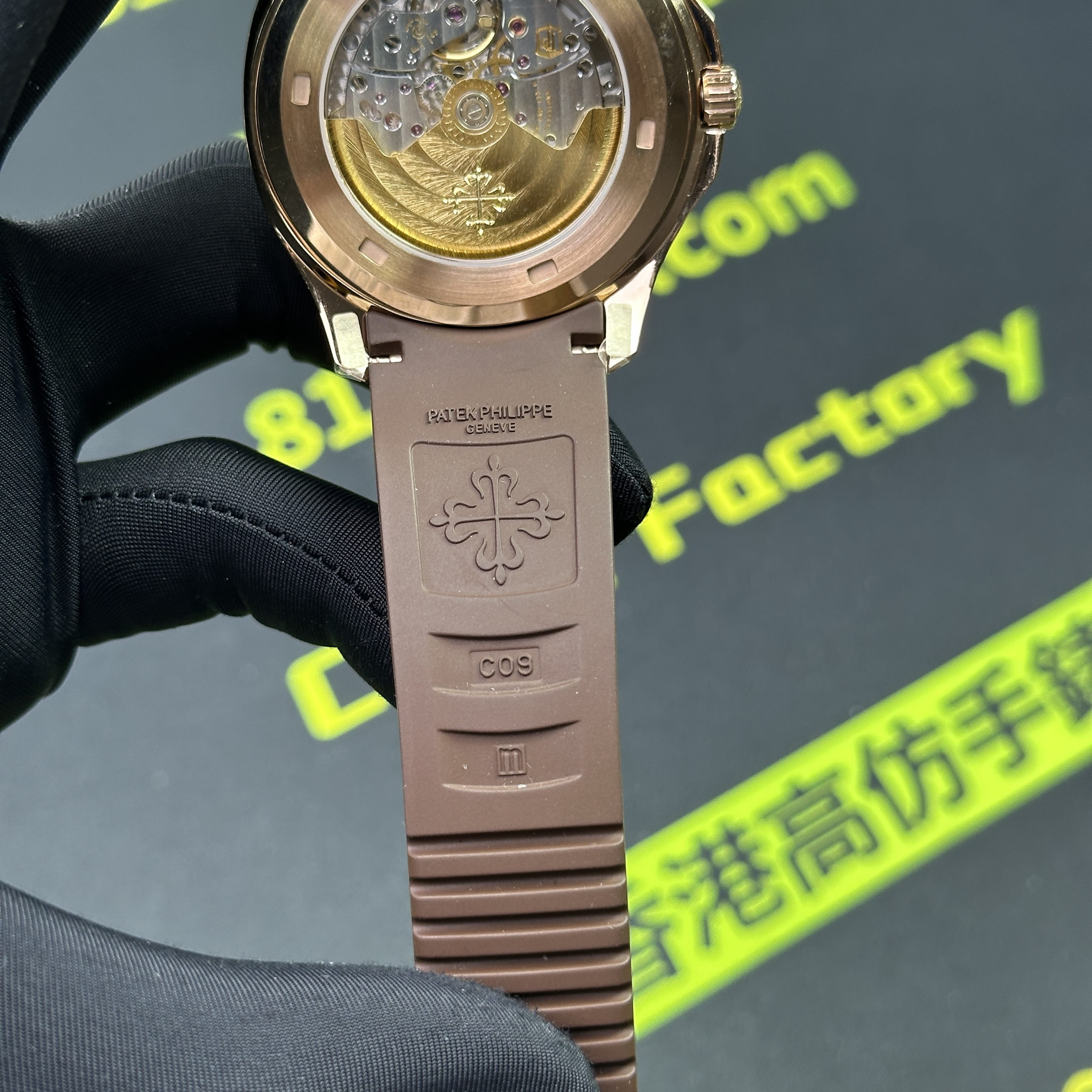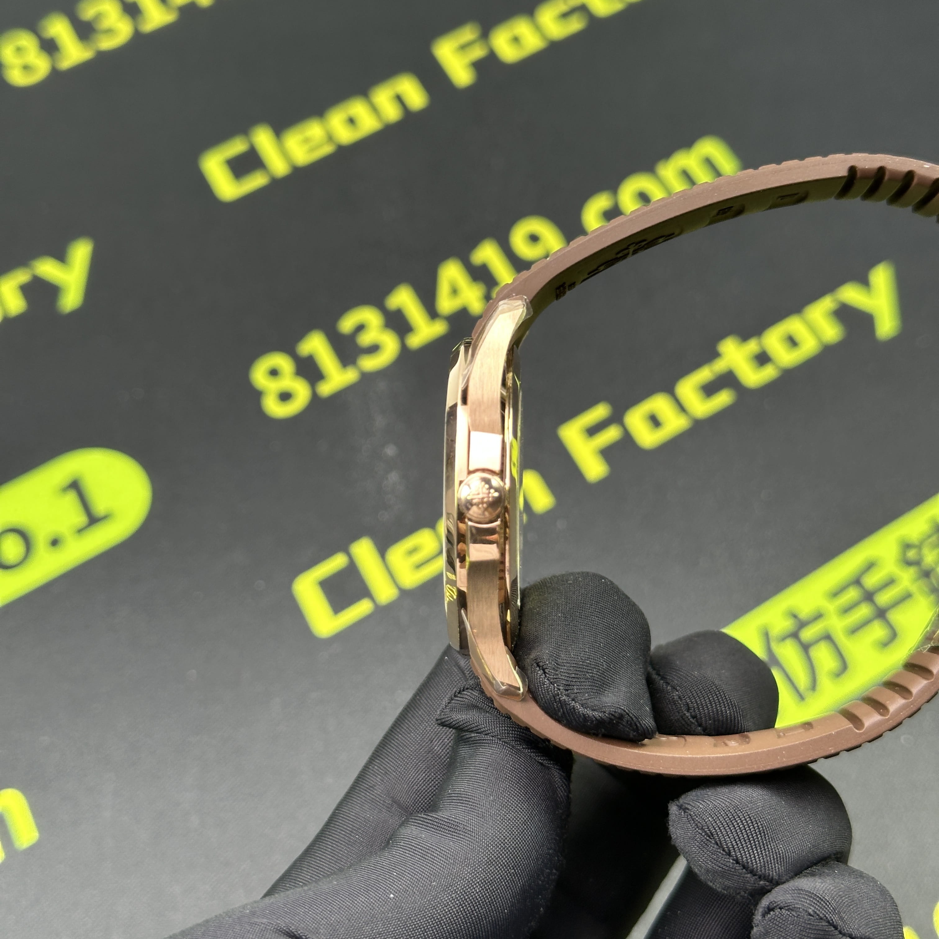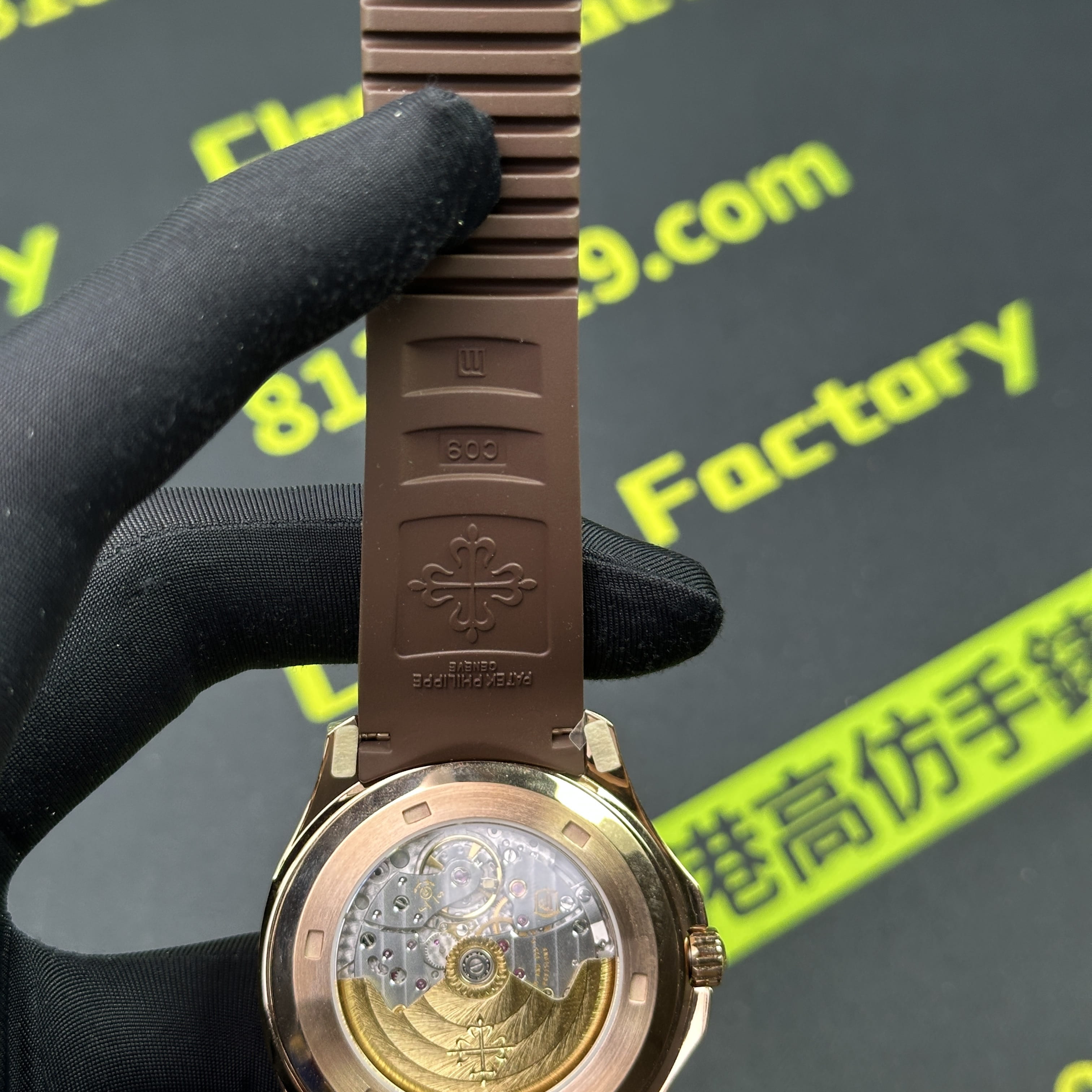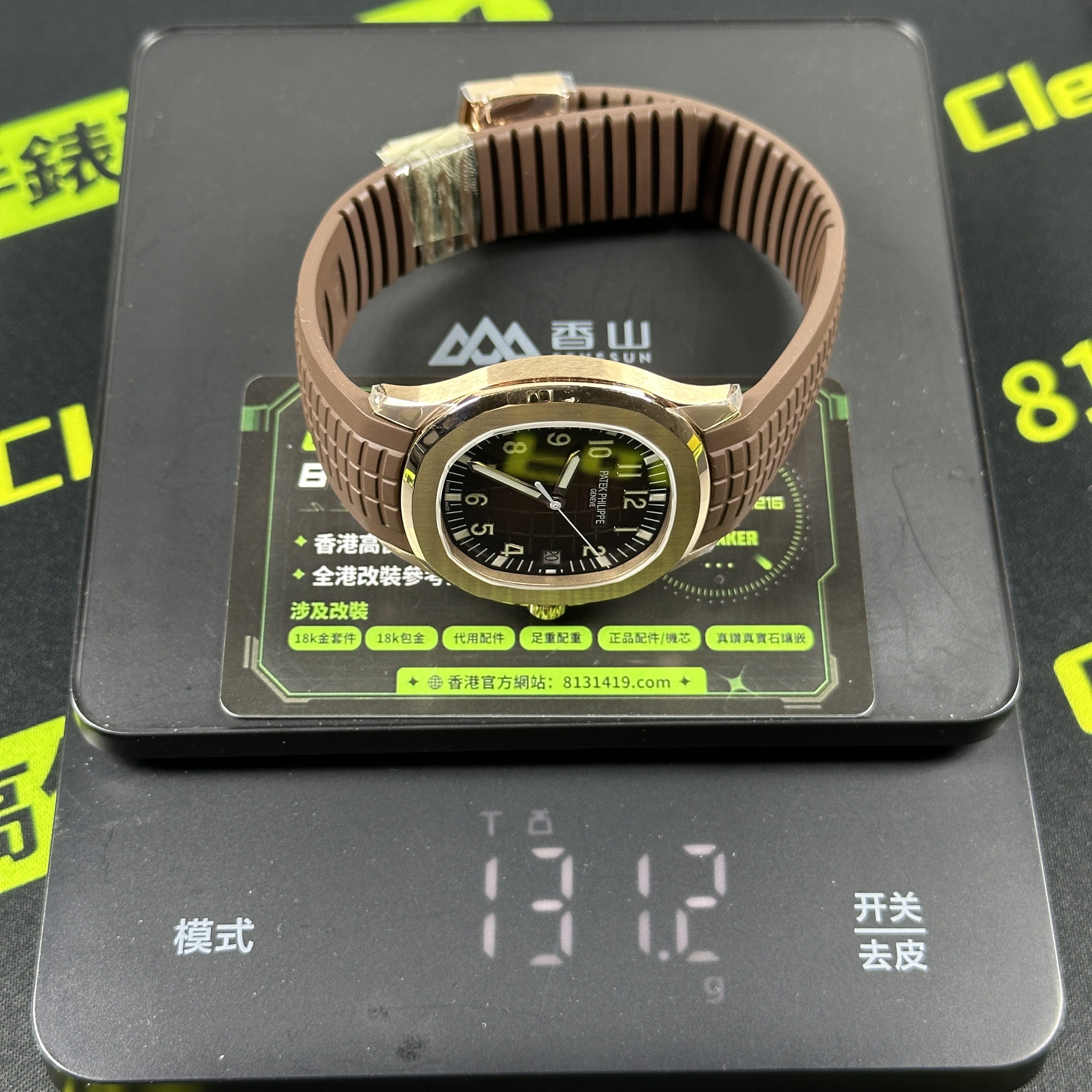 私人訂製版本高仿百達翡麗5167R-001玫瑰金手雷配重版本,整錶尺寸40mm,原有的基礎是使用混合重金屬材質打造,外觀是通過PVD電鍍工藝完成的玫瑰金色澤.高仿百達翡麗5167私人訂製克重是做到了131克,棕色的錶盤搭配棕色的橡膠錶帶,形同手雷表面的結構紋路.在功能方面也是簡易的三大針結構,只有日曆調校功能.背透式底蓋機芯.不過這些都是高仿手雷配重版本標配的基礎配件,後續達到更加頂級的版本是需要通過改裝升級完成製作.
