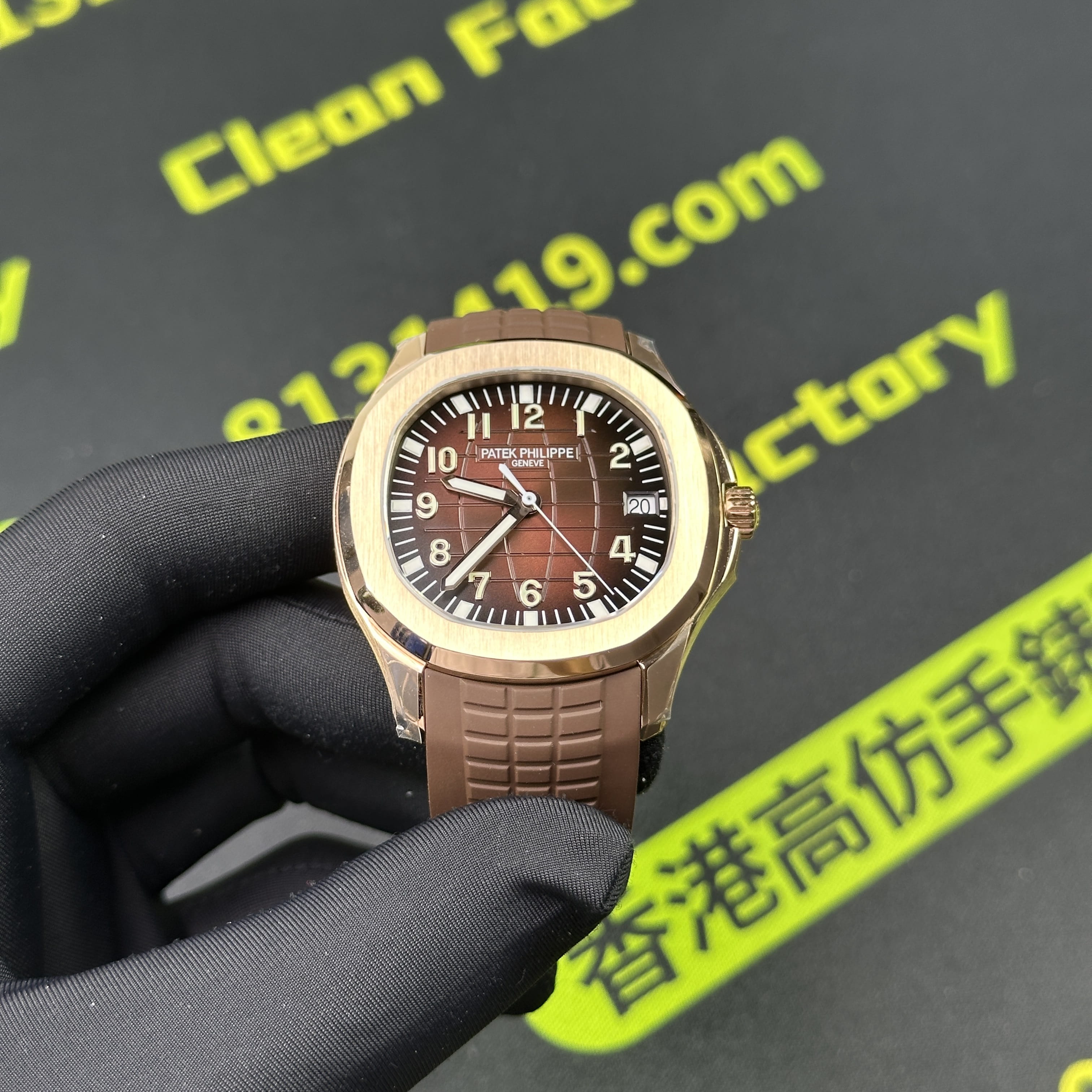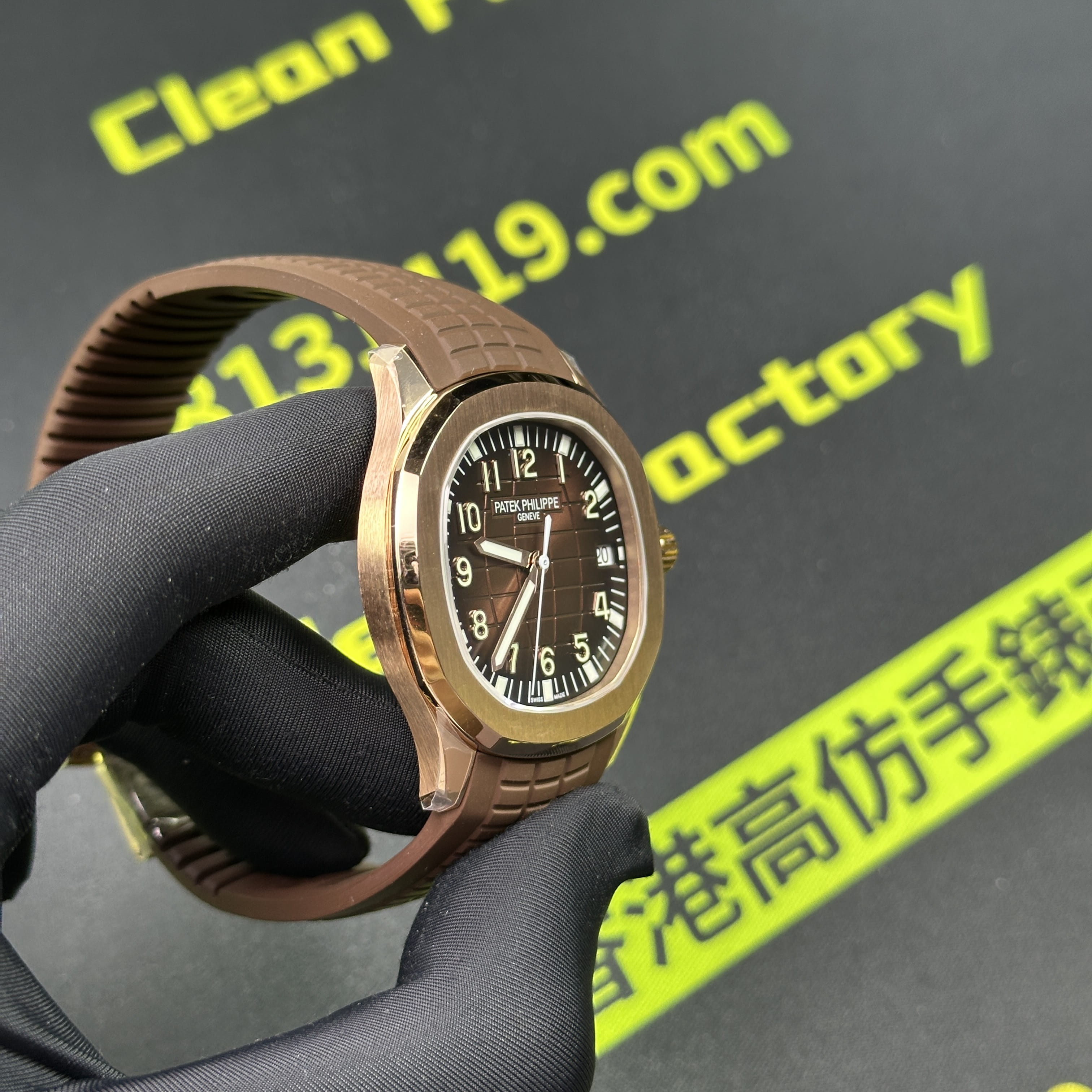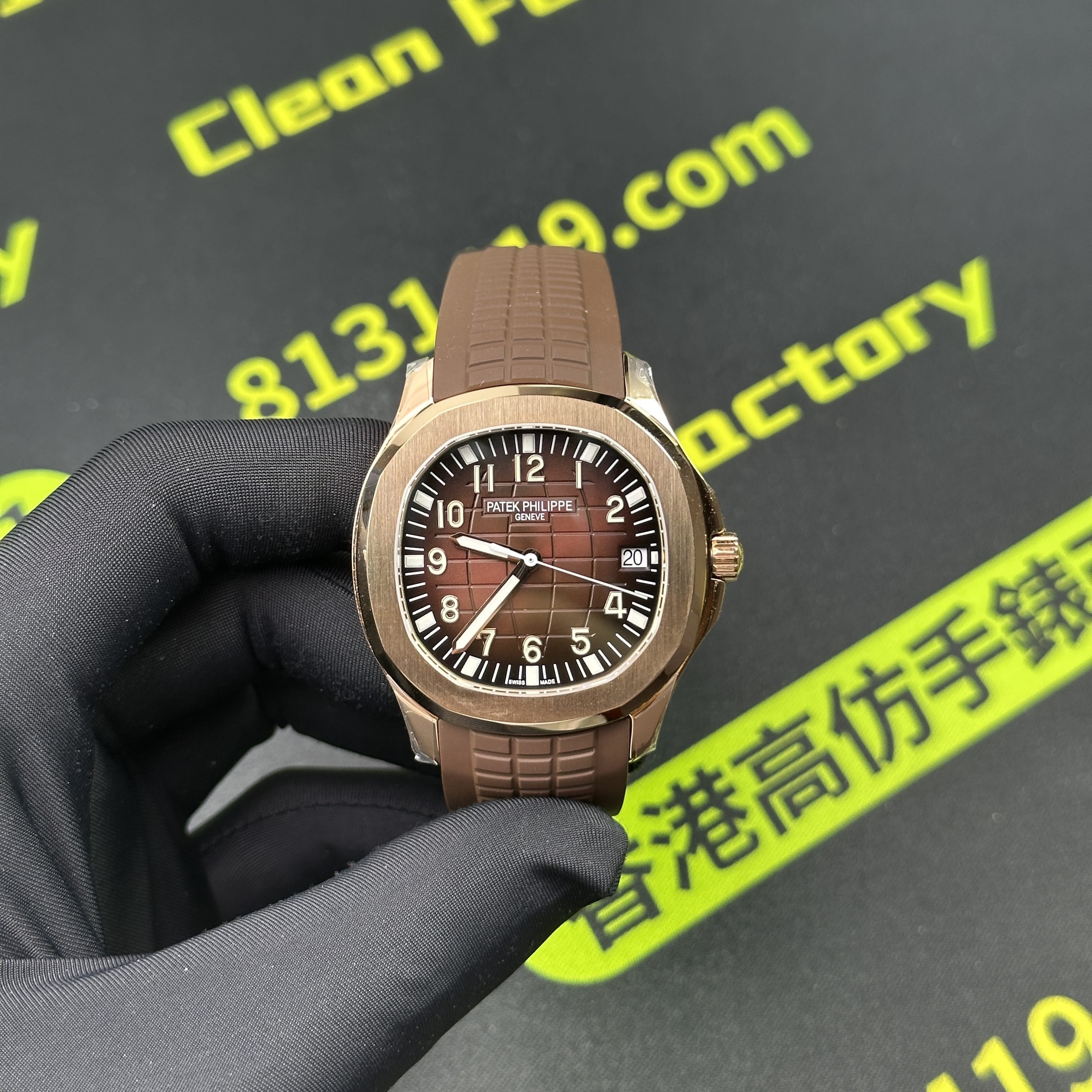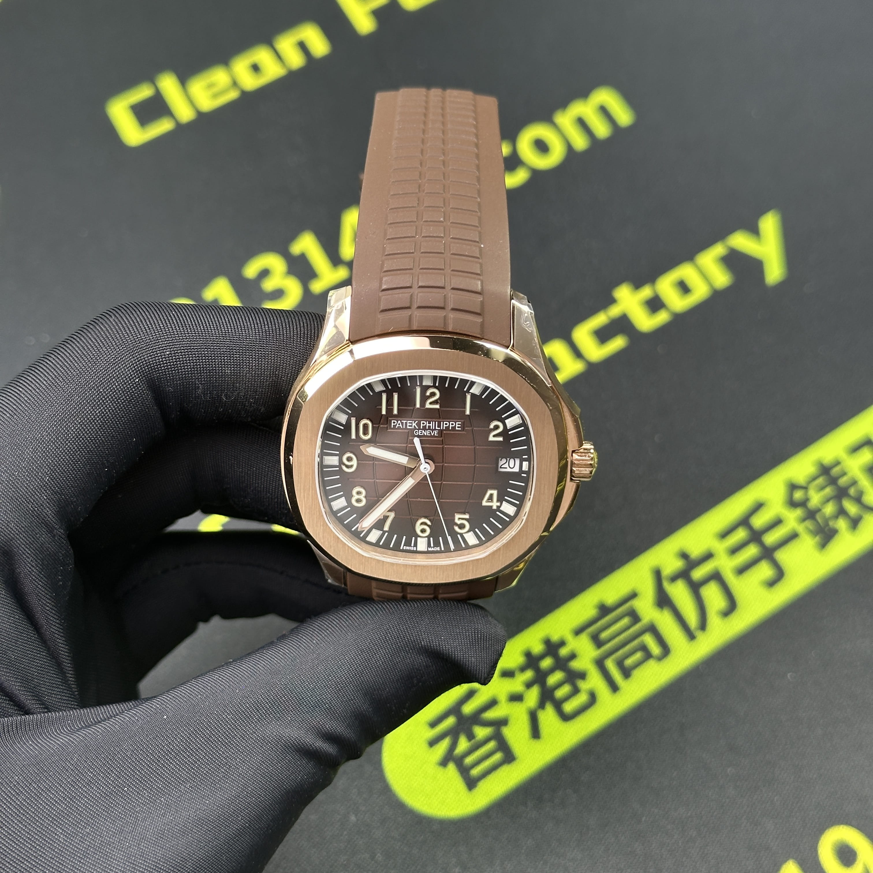 私人訂製版本高仿百達翡麗5167R-001玫瑰金手雷配重版本,整錶尺寸40mm,原有的基礎是使用混合重金屬材質打造,外觀是通過PVD電鍍工藝完成的玫瑰金色澤.高仿百達翡麗5167私人訂製克重是做到了131克,棕色的錶盤搭配棕色的橡膠錶帶,形同手雷表面的結構紋路.在功能方面也是簡易的三大針結構,只有日曆調校功能.背透式底蓋機芯.不過這些都是高仿手雷配重版本標配的基礎配件,後續達到更加頂級的版本是需要通過改裝升級完成製作.