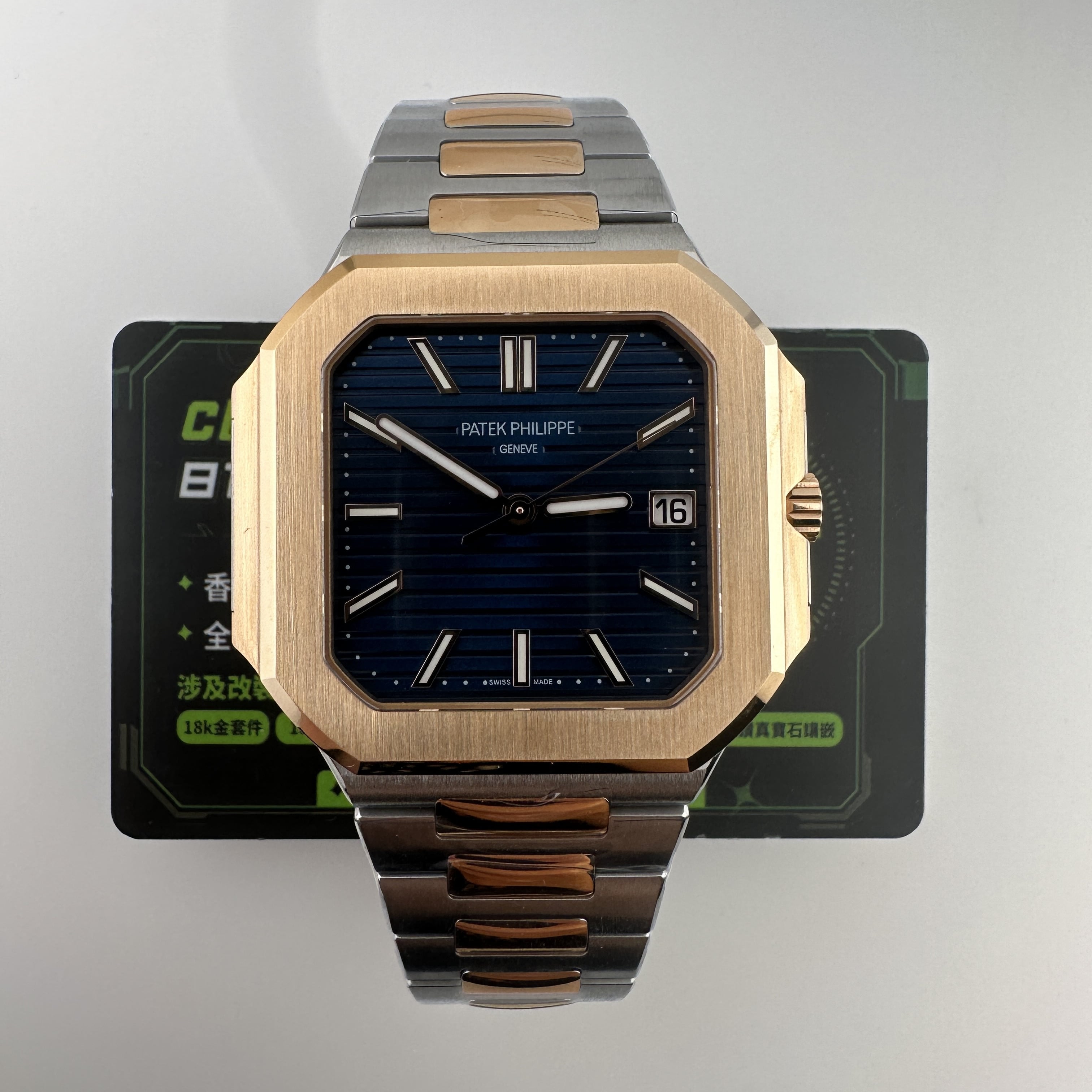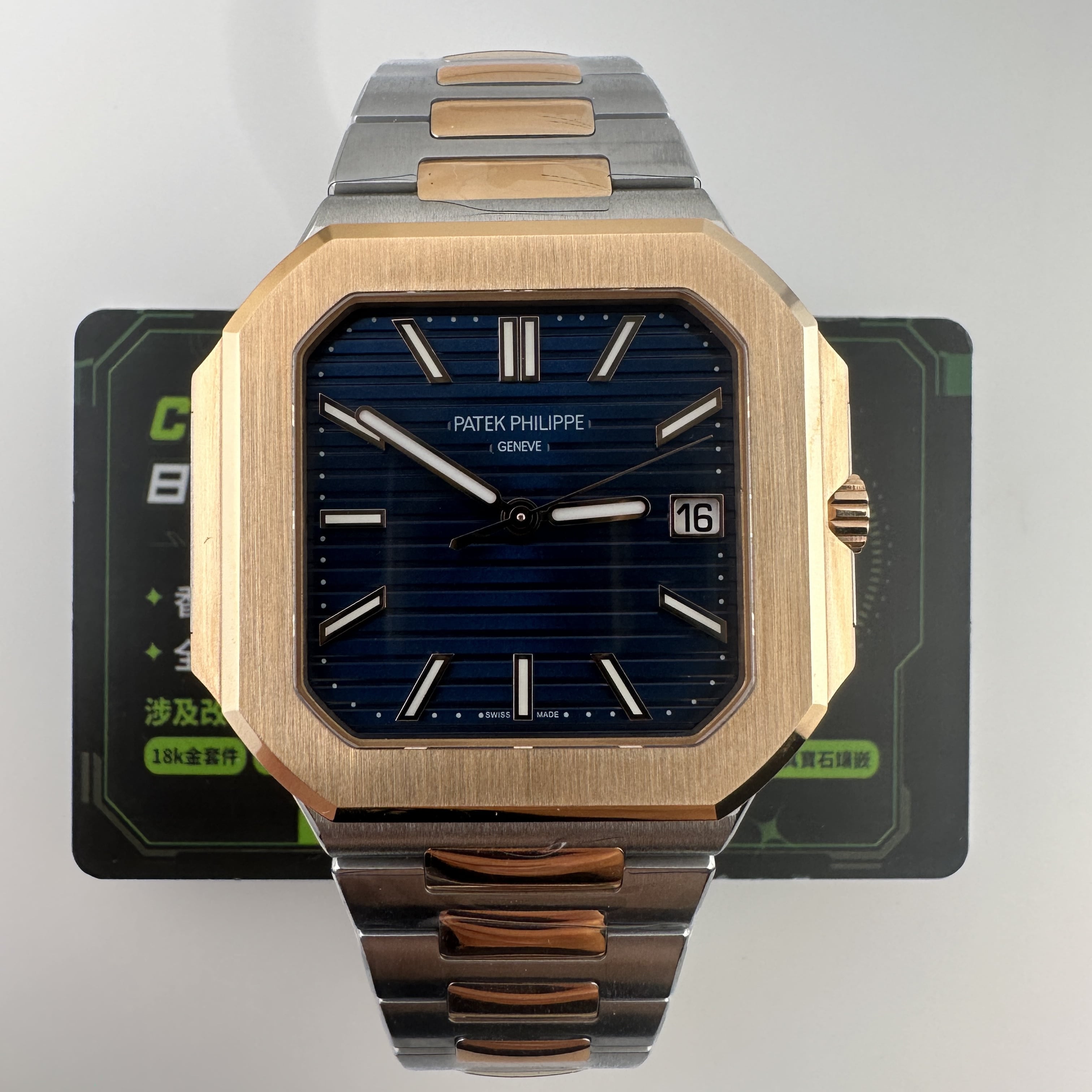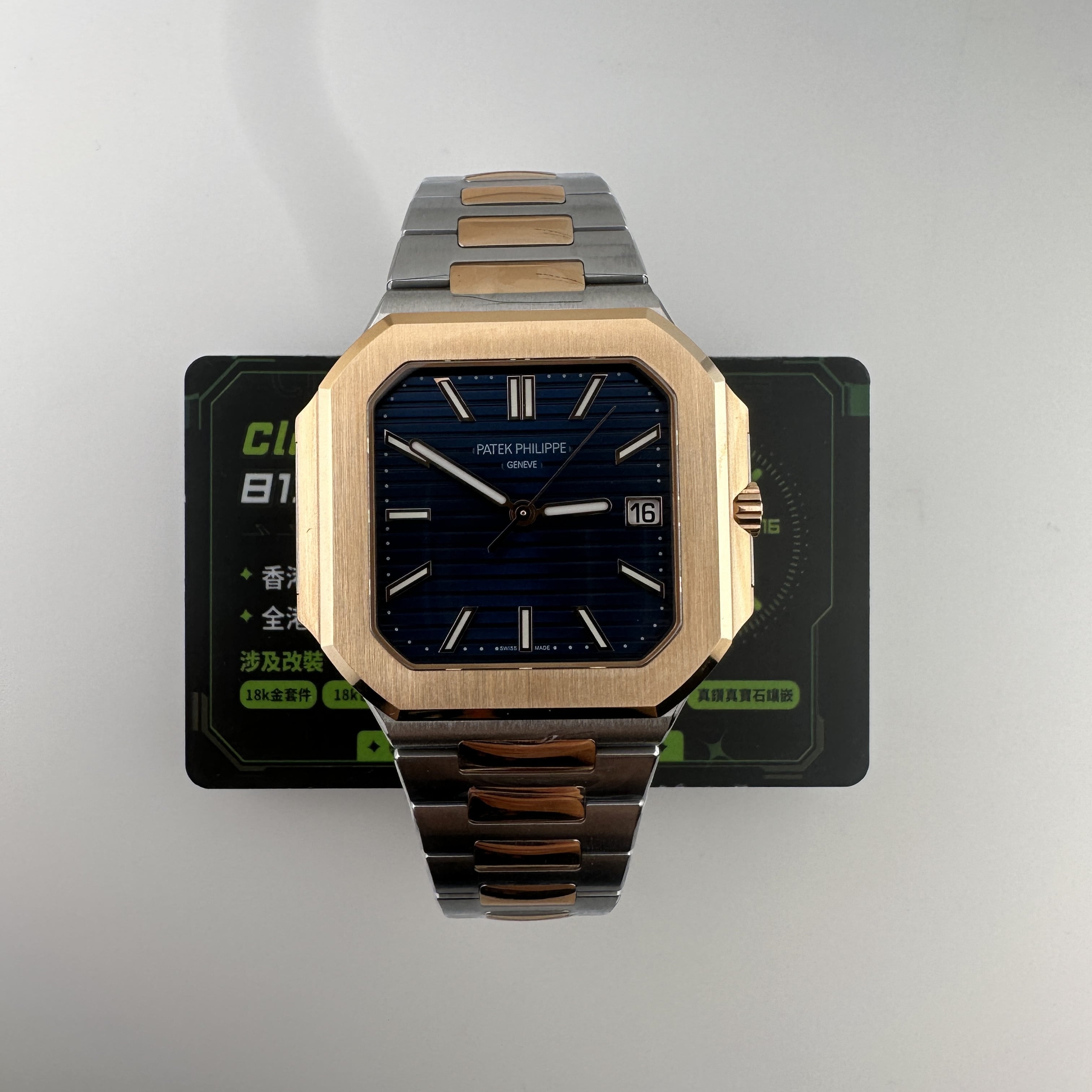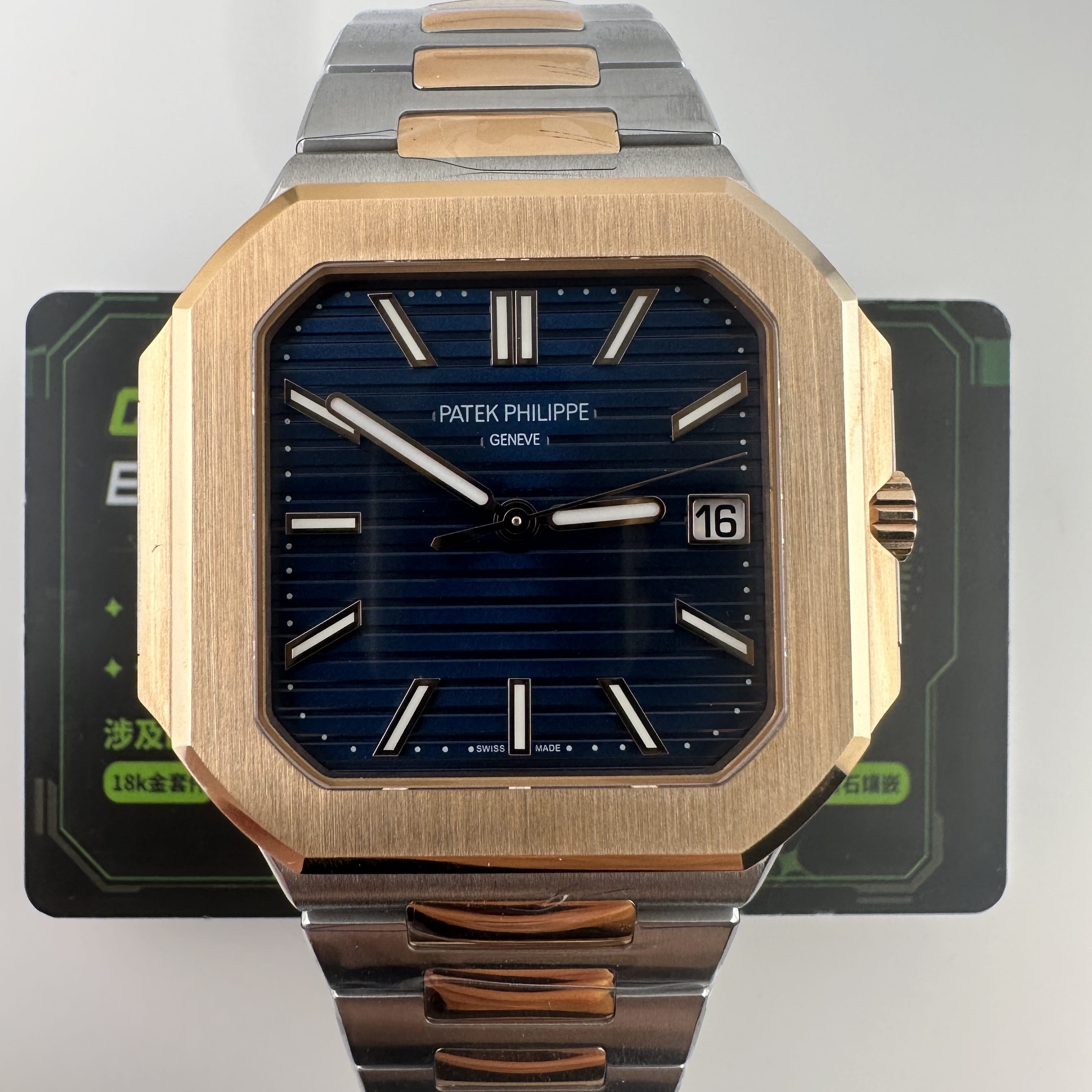 私人訂製廠全新推出百達翡麗CUBITUS系列5821/1AR-001間玫瑰金錶款,是復刻了PP官方在2024年推出的最新款百達翡麗主打熱門產品,俗稱"電視機".由於腕錶直徑達到了45mm,加上方正結構因此得名.目前高仿市面上比較多廠家推出高仿PP5821玫瑰金藍色盤面款,從而存在競爭力,錶友們在選擇過程中可以參考價錢以及相關配置.以這一隻高仿PP訂製版本為例在細節處理中達到原版品質需求.