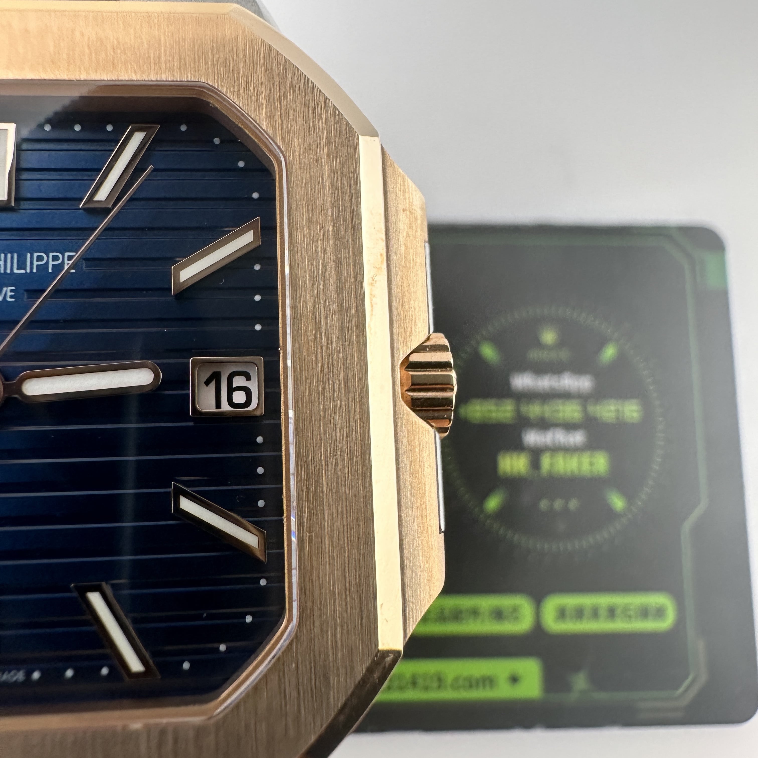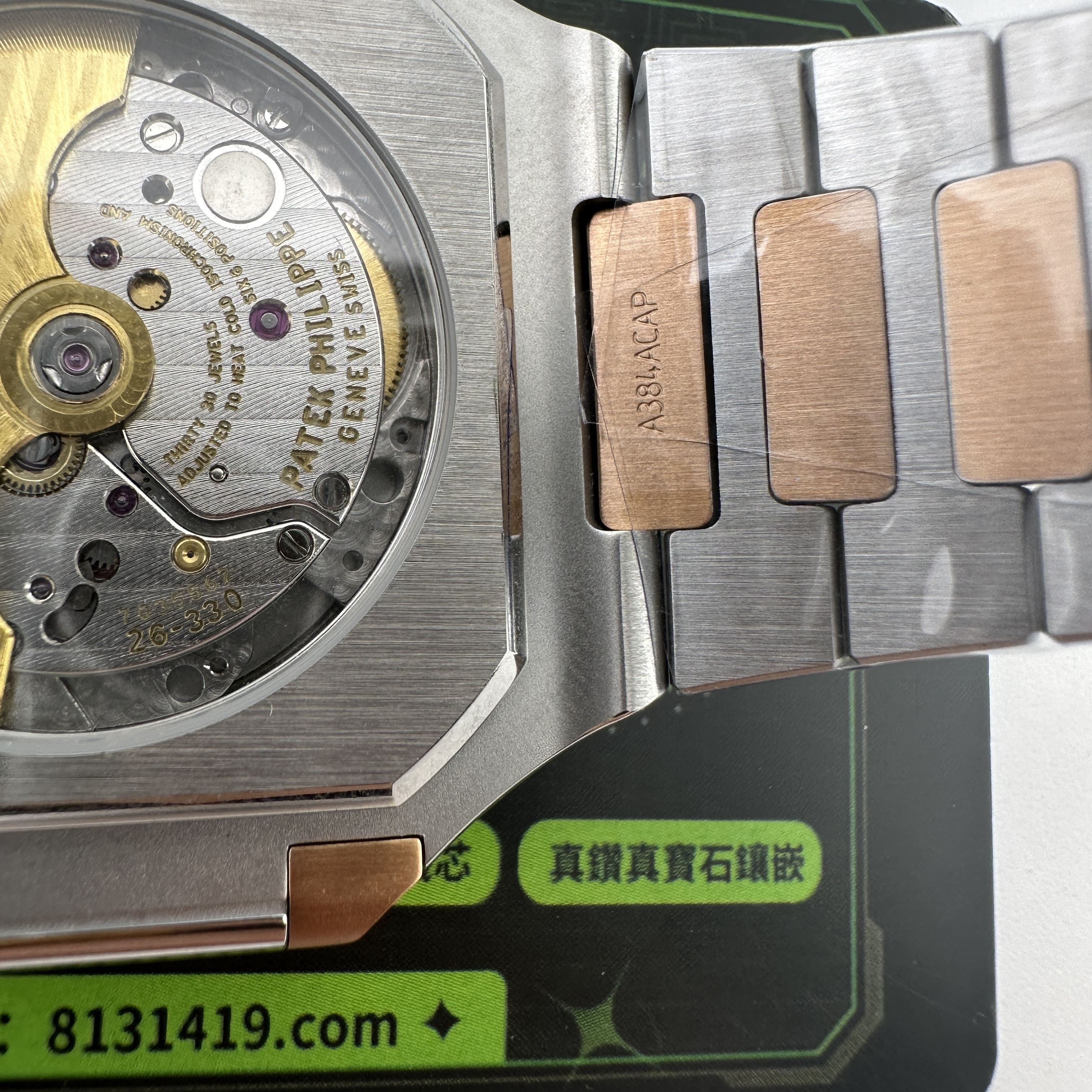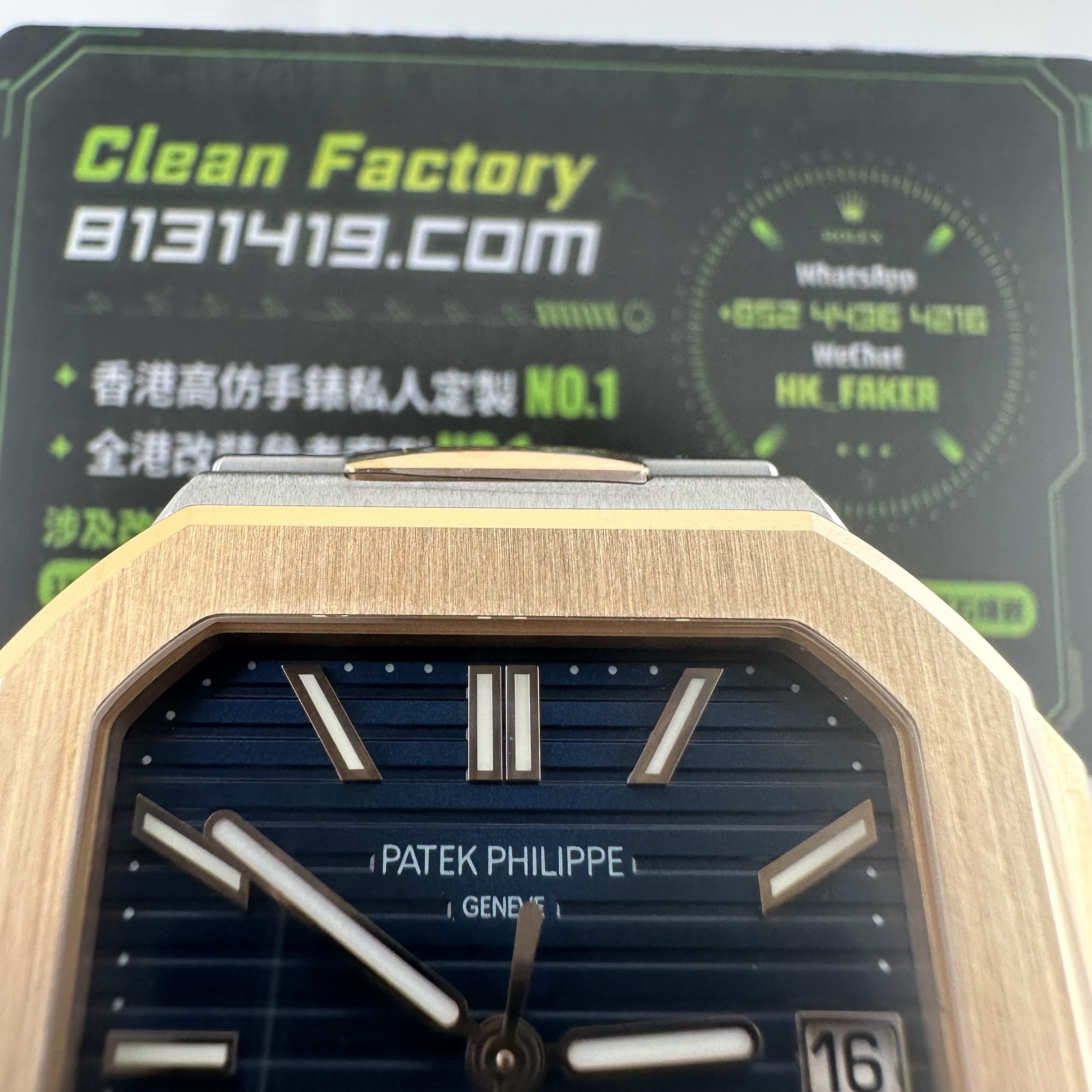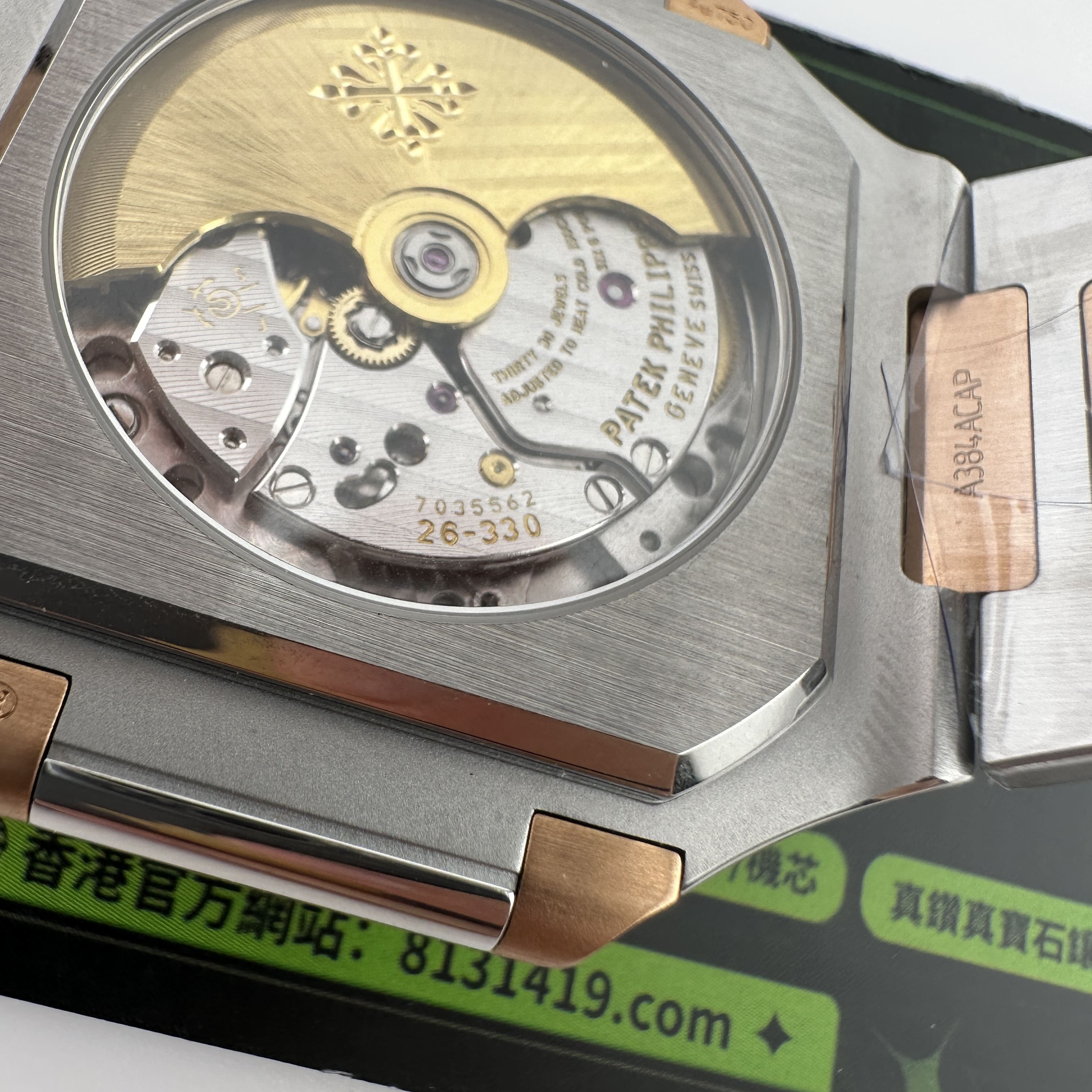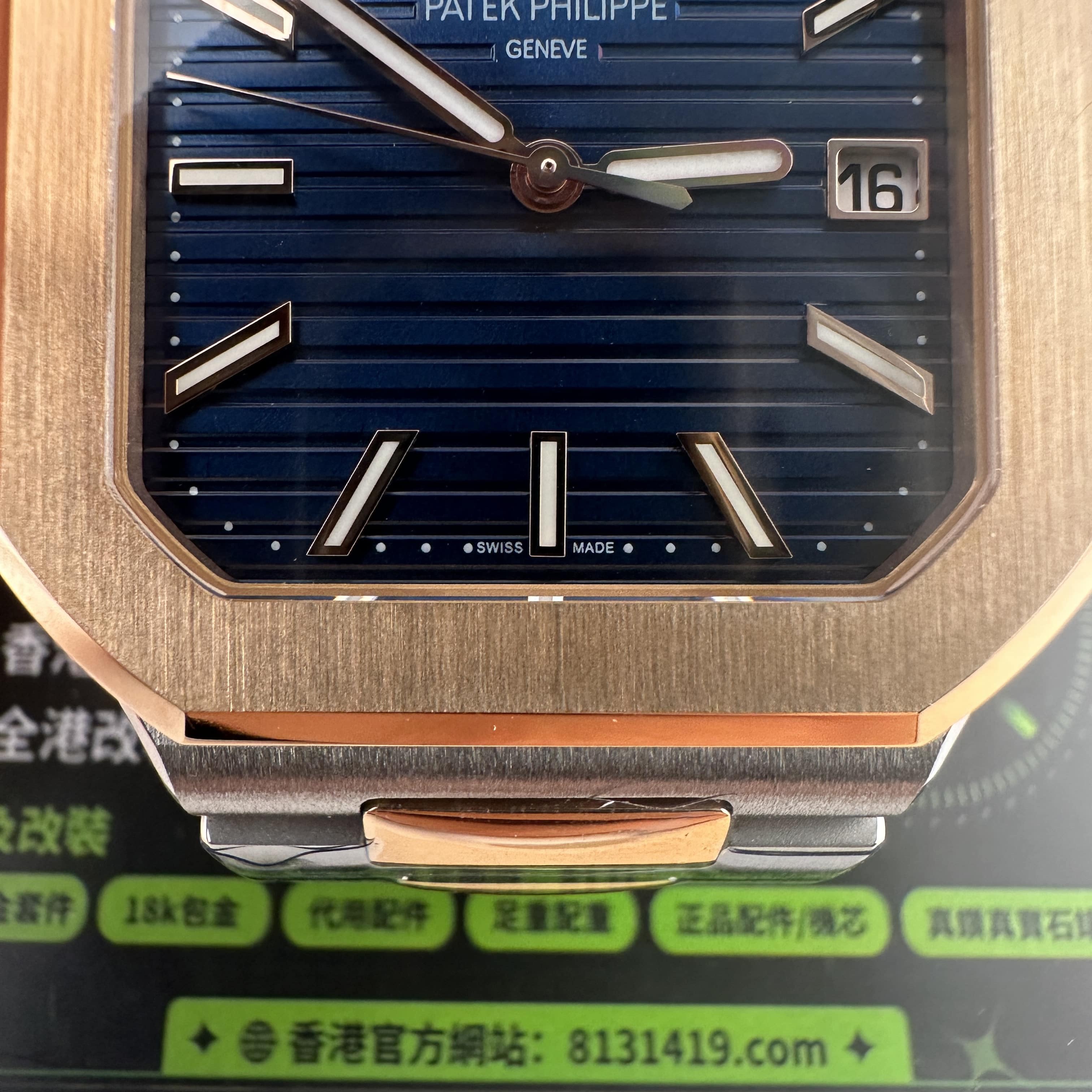 高仿PP5821玫瑰金是採用了PVD電鍍工藝完成製作,外觀色澤部分對比原版色澤還原百分之96左右.其次是藍色的錶盤私人訂製廠採用原版錶盤進行對比以及多次測試中得出對應的藍色.而細節處理部分高仿百達翡麗訂製款出品的日曆窗口符合專櫃版本的工藝,其中印刷字面日曆大小一致,再者是窗口的位置偏移右邊,而市面上很多版本都是偏向左右.最後就是高仿PP電視機搭載了Cal.26-330機芯,一體機芯穩定性更加持續.