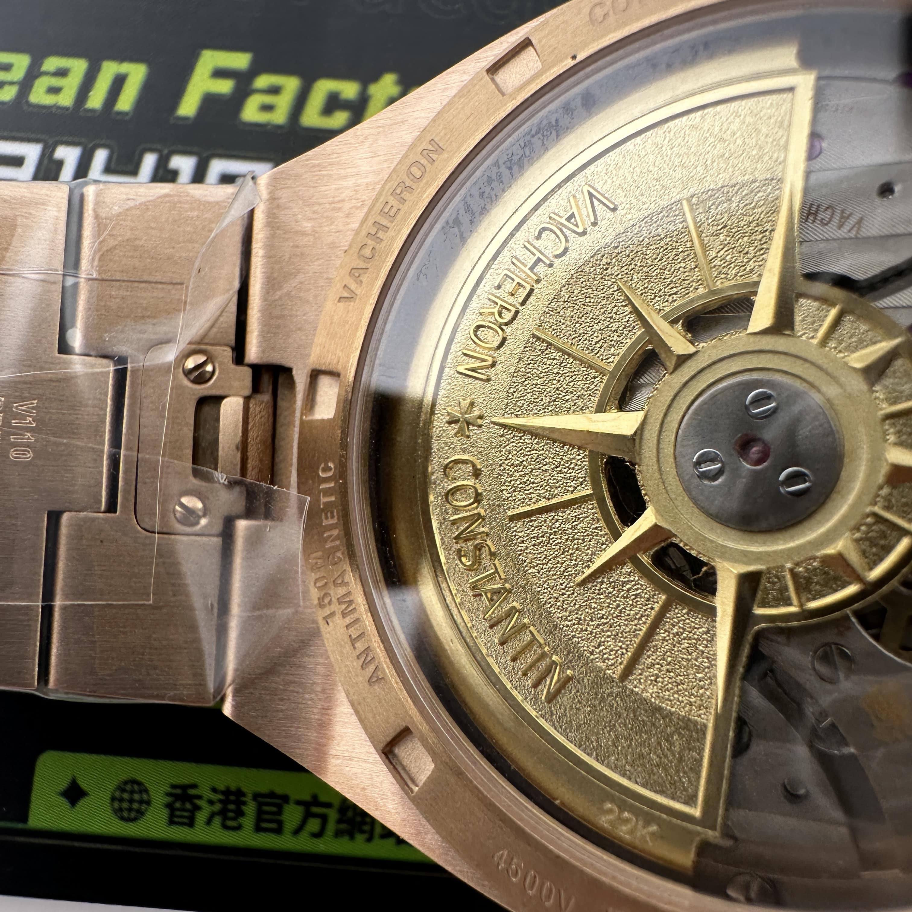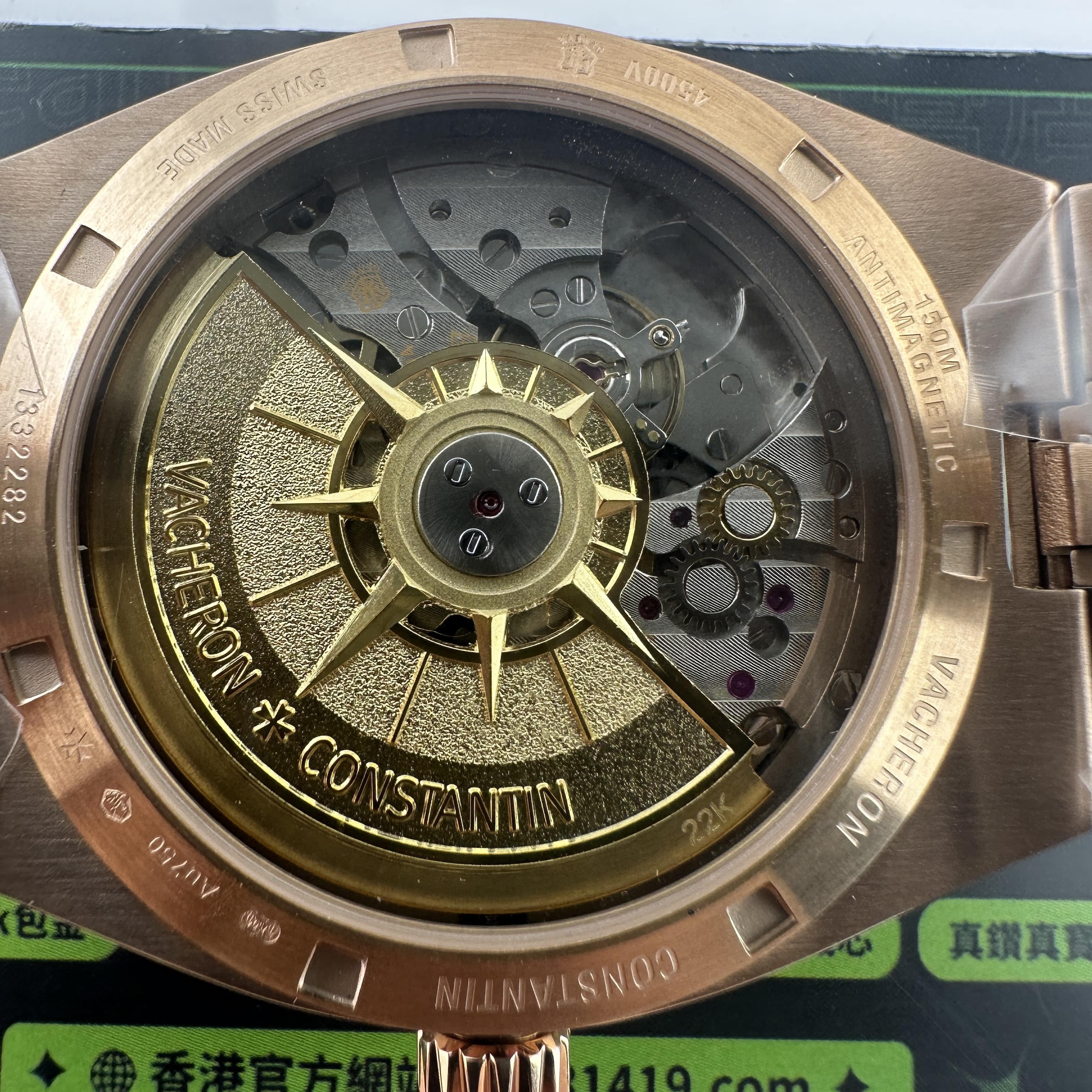在高仿市面上PPF廠江詩丹頓4500V是公認做的最好的廠家,對比同行MKS廠以及8F廠都是超越性的碾壓同行.細節處理是直接影響一款腕錶是否存在一眼假,PPF廠江詩丹頓出品的圈口,就是鏡面與圈口貼合的角度是比較細微的,而其他廠這個結構是非常粗,對比正品肯定是有缺陷且不對版.機芯部分PPF廠4500V玫瑰金是搭載了獨家研發的5100一體機芯,同步原版一致.具有的優點是18K金陀色澤是偏向玫瑰金,並非純K金色澤.其次是結構組成,一體機芯追求的不僅僅是穩定性,更多的是結構還原.自動上鏈盒包含了170多個零部件,雙發條盒,續航動力可以達到60個小時左右