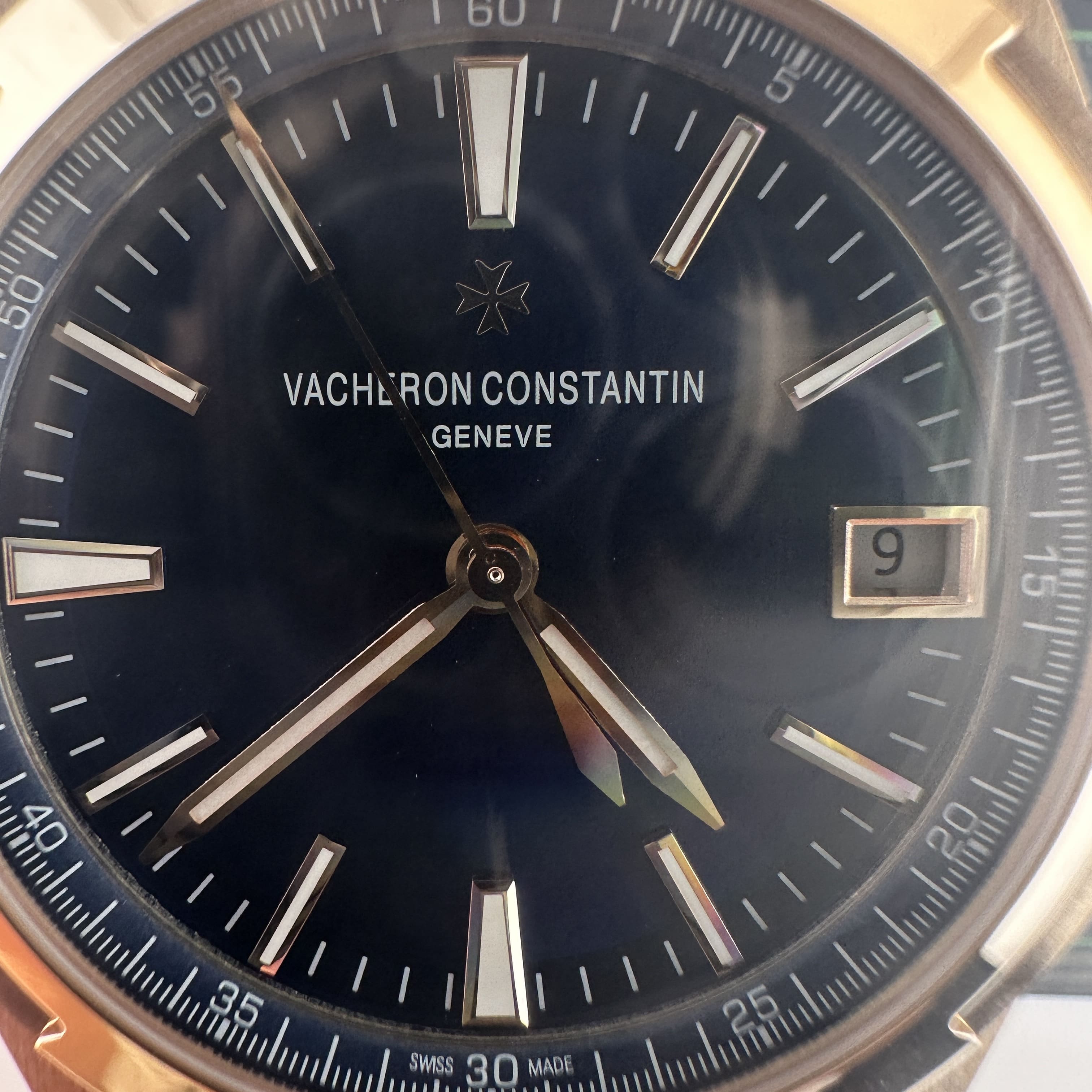 江詩丹頓縱橫四海高仿版本4500V玫瑰金款式,這一隻高仿手錶出自PPF廠傑作,目前是整個市面上獨家復刻,也是今年2024年期間推出的新款江詩丹頓高仿.在此之前PPF廠就已經掌握了精鋼款式4500V復刻工藝.整個錶款是採用原裝正品1:1開模復刻而成,腕錶直徑是41mm同步原版,圈口部分是具有辨識度的縱橫四海結構.錶殼的厚薄度以及側面弧度沒有缺陷,PPF廠外觀打磨拉絲工藝比較明顯,其次是圈口部分包括錶帶邊角縫隙PPF廠江詩丹頓4500V都做了無漏鋼電鍍金效果.右邊部分則是非常簡易的單個調教把頭,功能就是上鏈機制,調教日曆以及時間