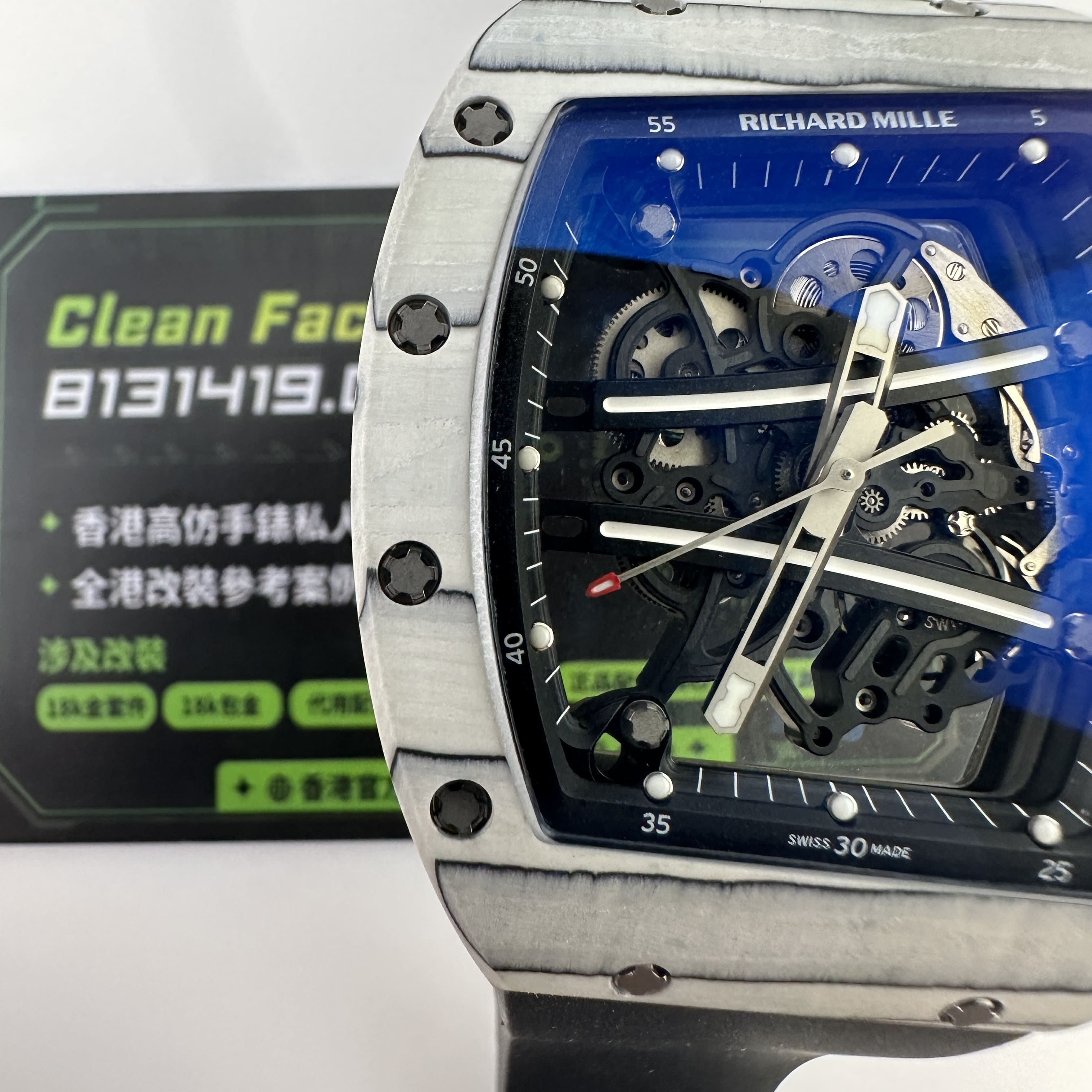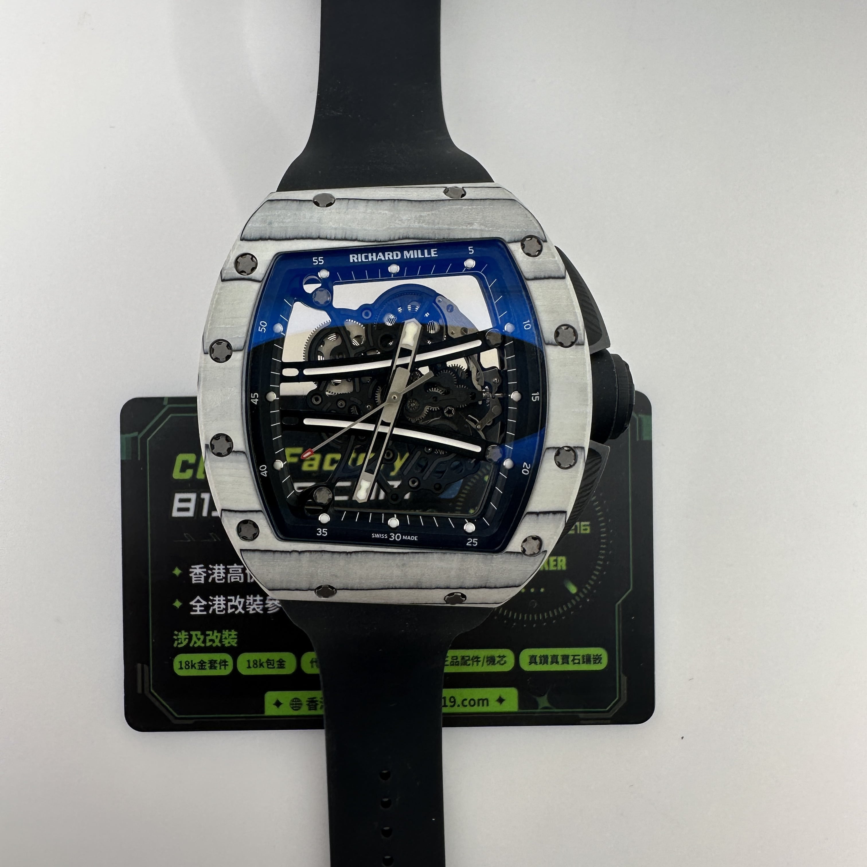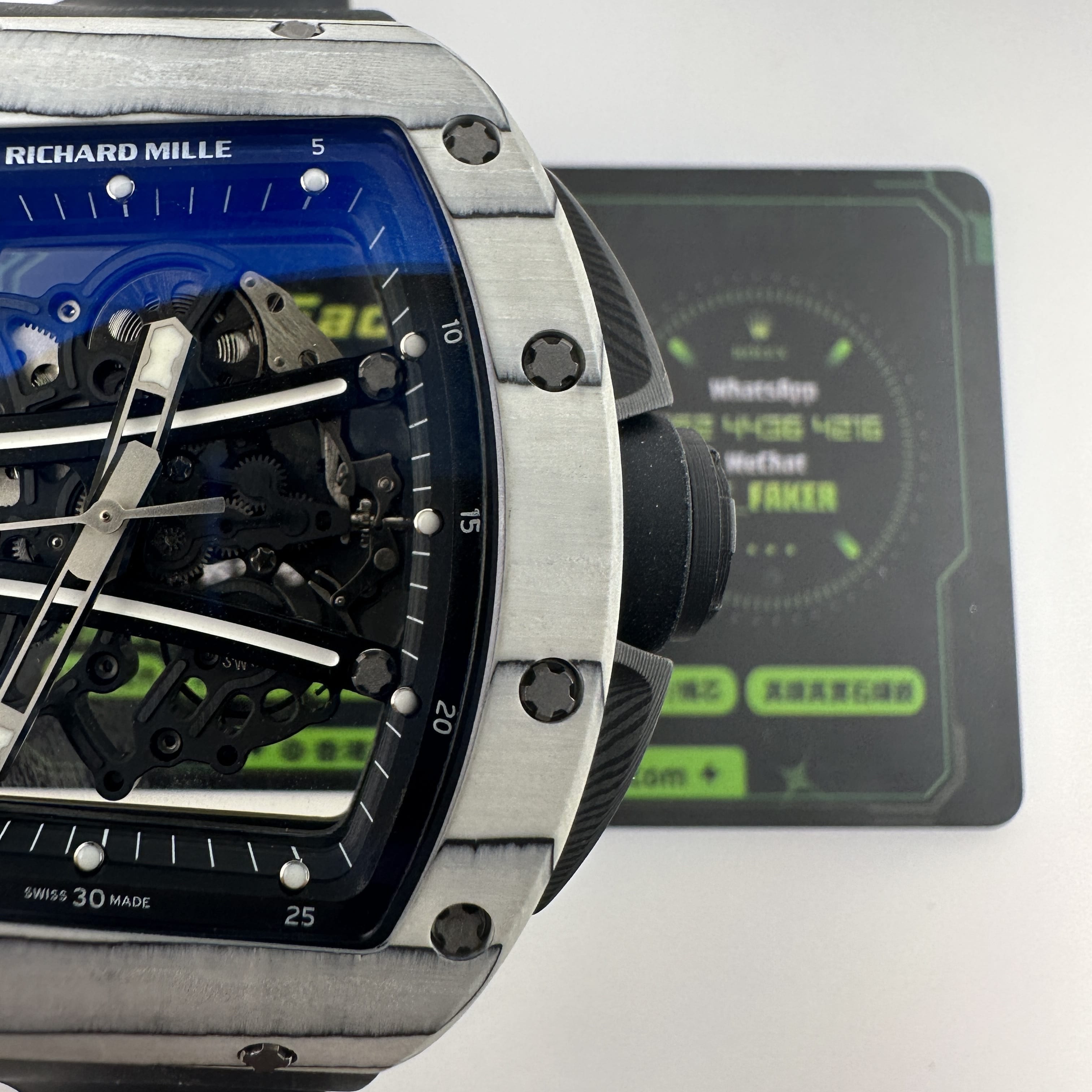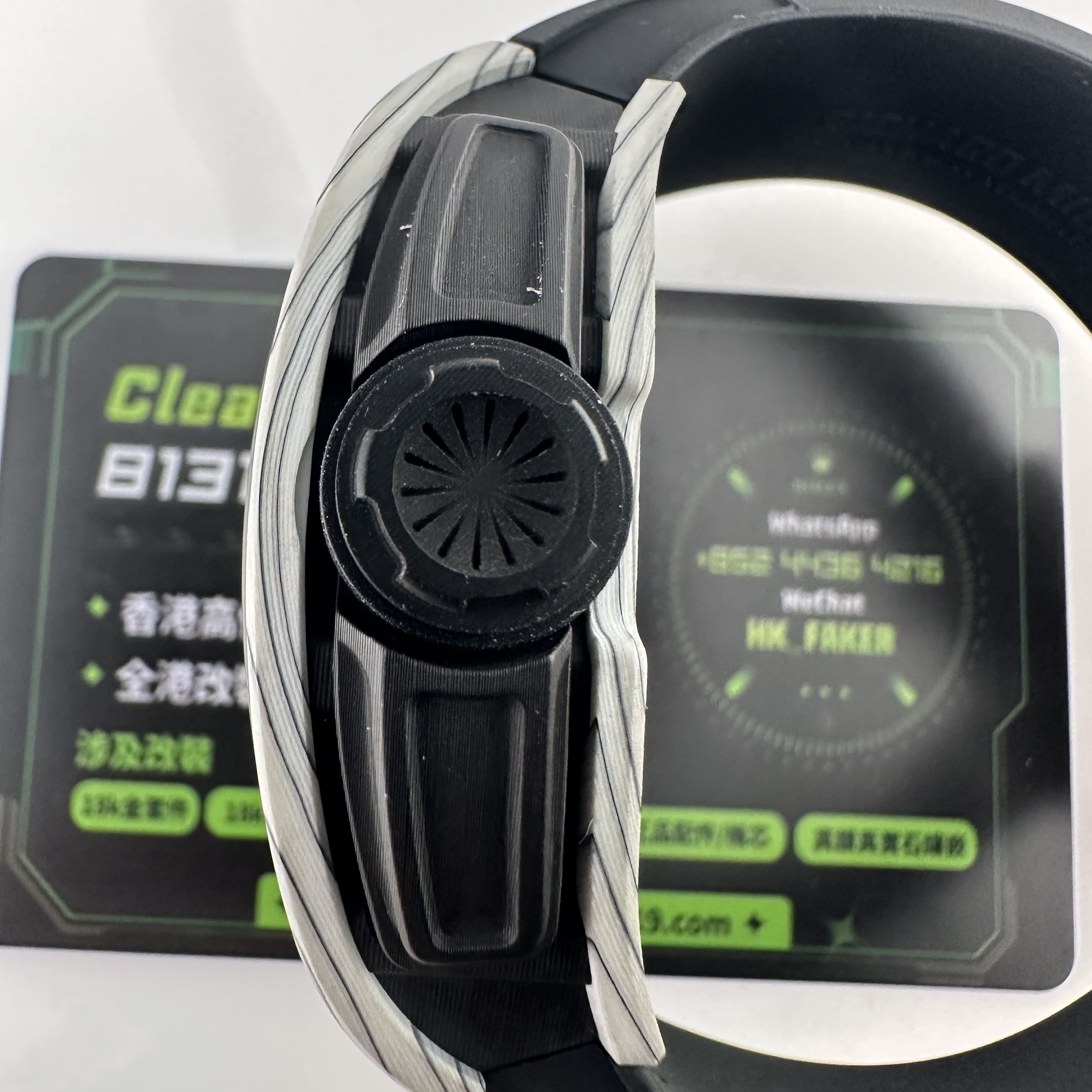 私人訂製改裝升級版本高仿Richard Mille RM61-01,被譽為"億萬富豪入場卷"的RM錶款簡直是高仿市面上的一股清流.這一隻高仿Richard Mille RM061碳纖維錶款,整錶尺寸50.23 X 42.70mm,白色暗紋碳纖維材質所塑造獨一無二的紋理紋路成為了該錶款具有的獨特魅力,其次是錶殼與錶盤內部空間範圍做了相關的弧度調整,可以通過6點鐘底部平行線並不是統一的水平,這也是理查德米爾RM061錶款所產生的"畸形"設計理念.