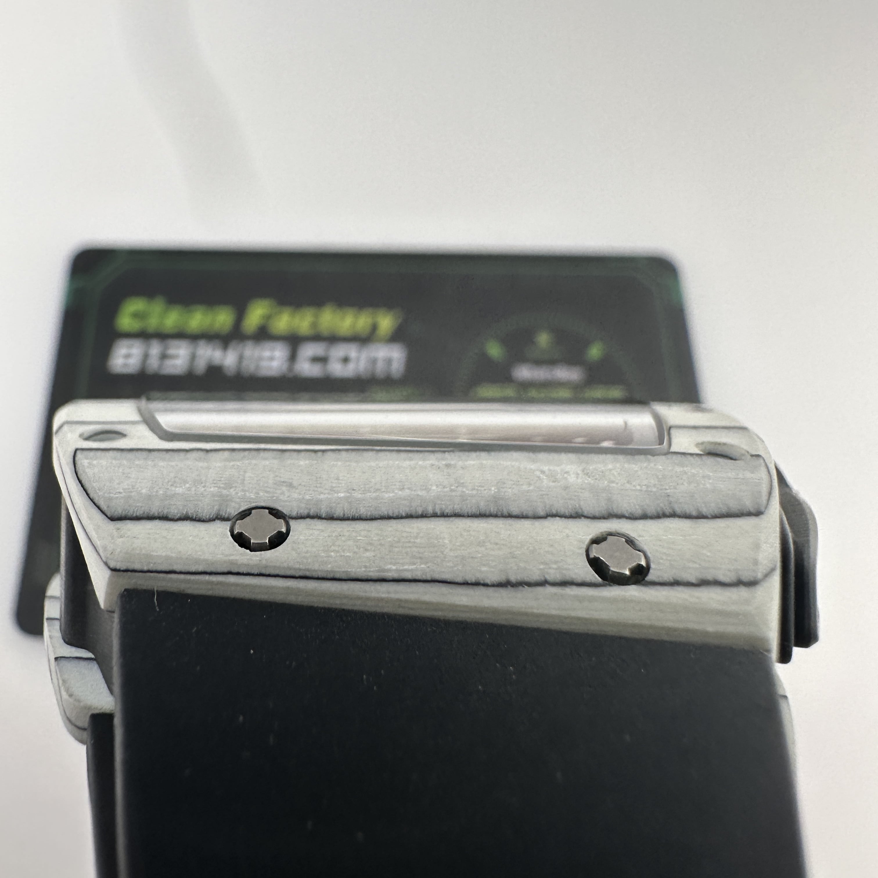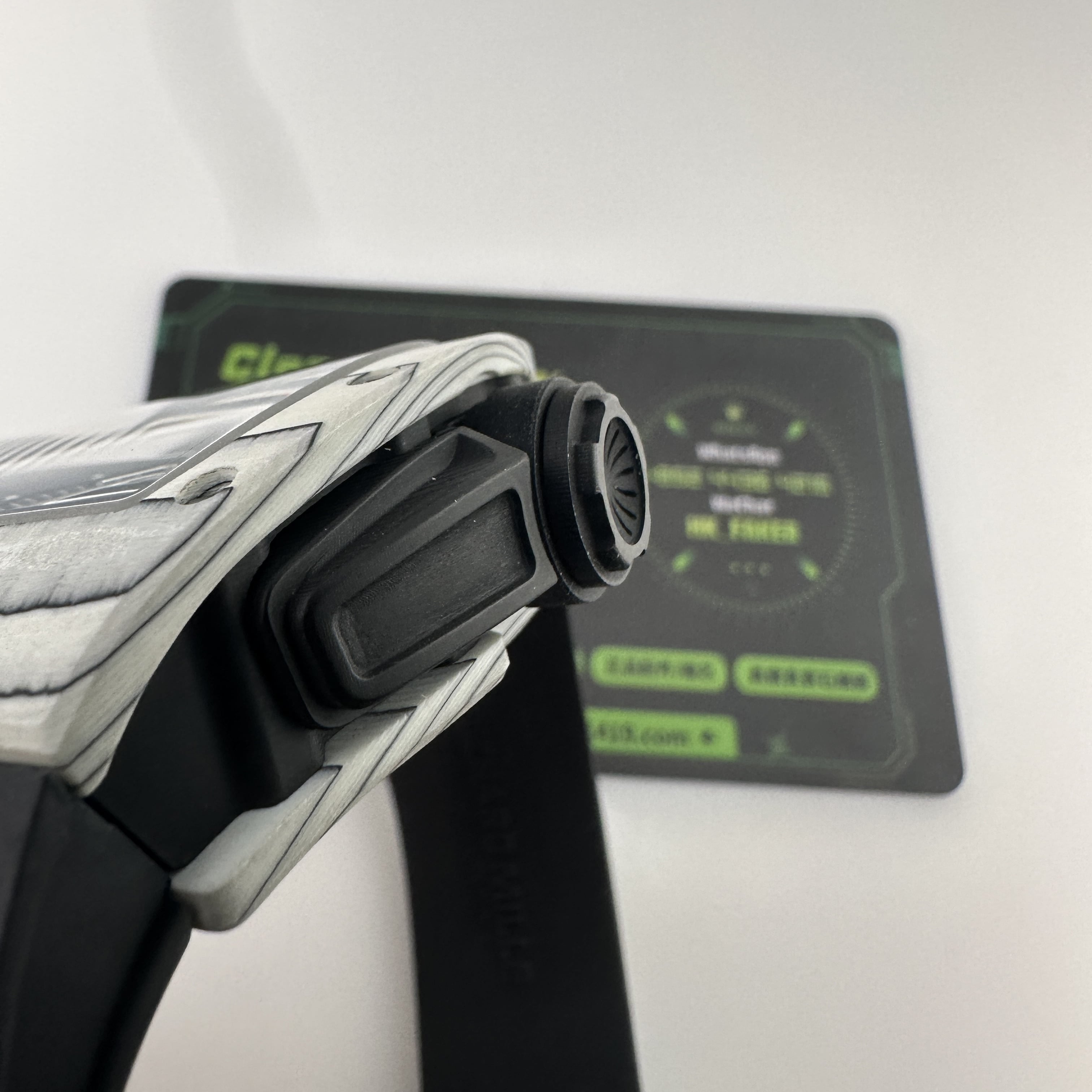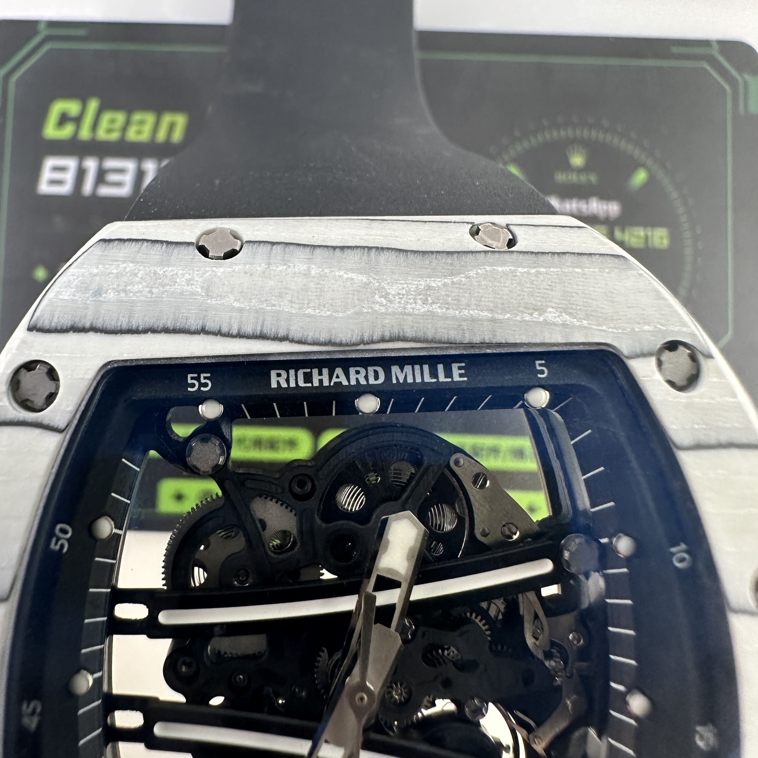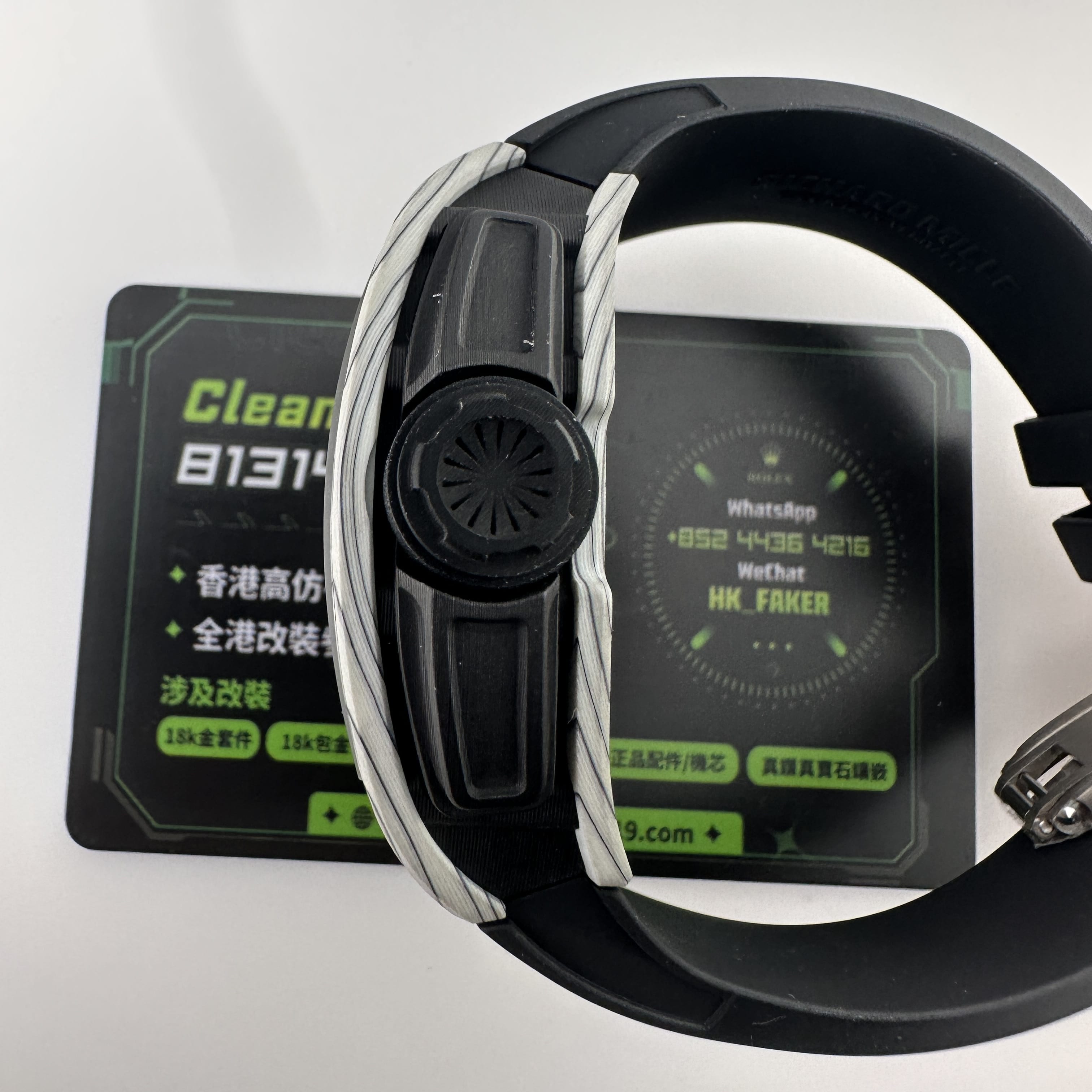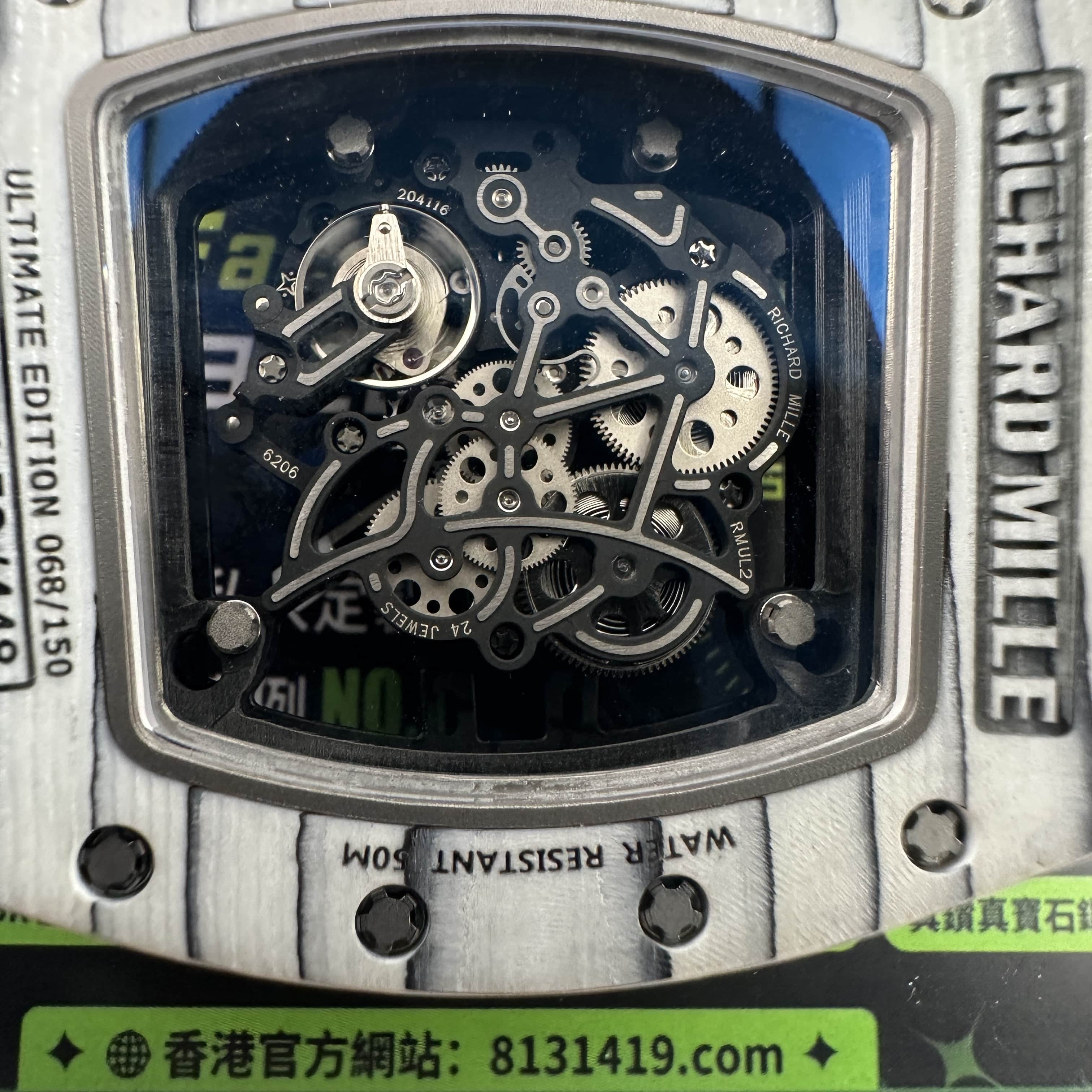 私人訂製改裝升級版本高仿Richard Mille RM61-01,被譽為"億萬富豪入場卷"的RM錶款簡直是高仿市面上的一股清流.這一隻高仿Richard Mille RM061碳纖維錶款,整錶尺寸50.23 X 42.70mm,白色暗紋碳纖維材質所塑造獨一無二的紋理紋路成為了該錶款具有的獨特魅力,其次是錶殼與錶盤內部空間範圍做了相關的弧度調整,可以通過6點鐘底部平行線並不是統一的水平,這也是理查德米爾RM061錶款所產生的"畸形"設計理念.