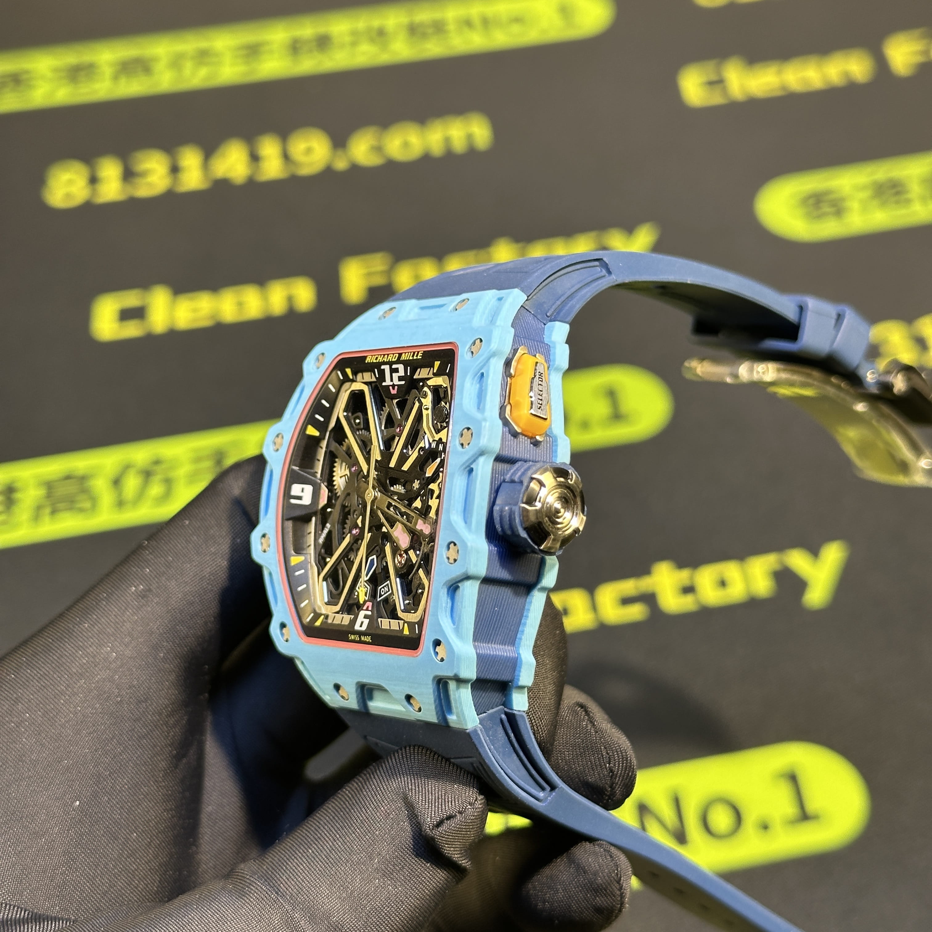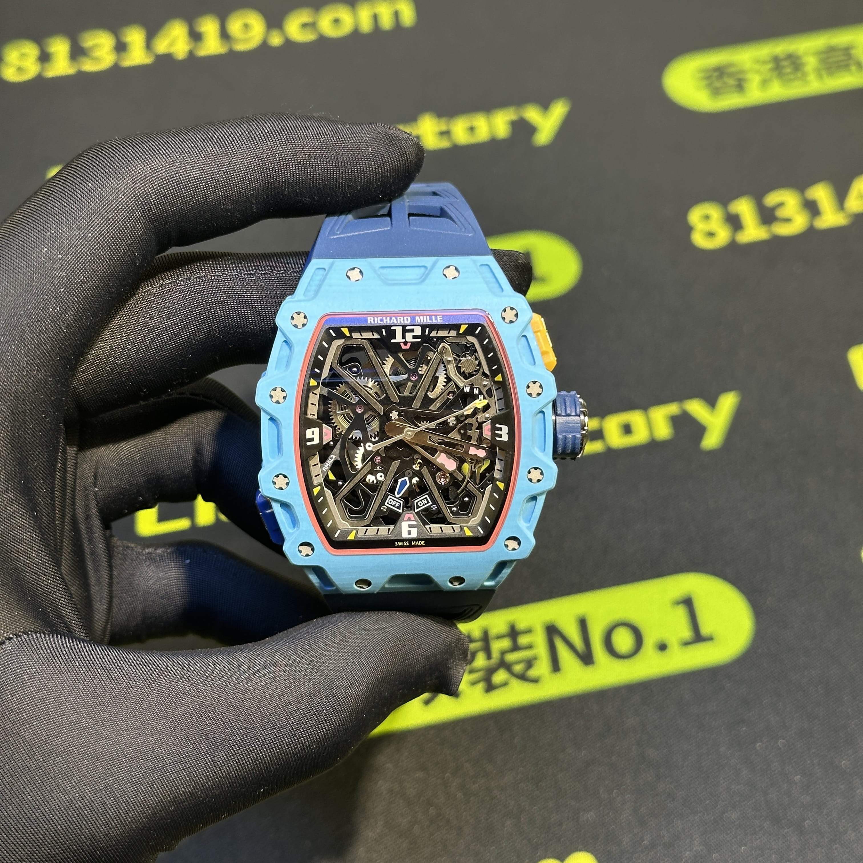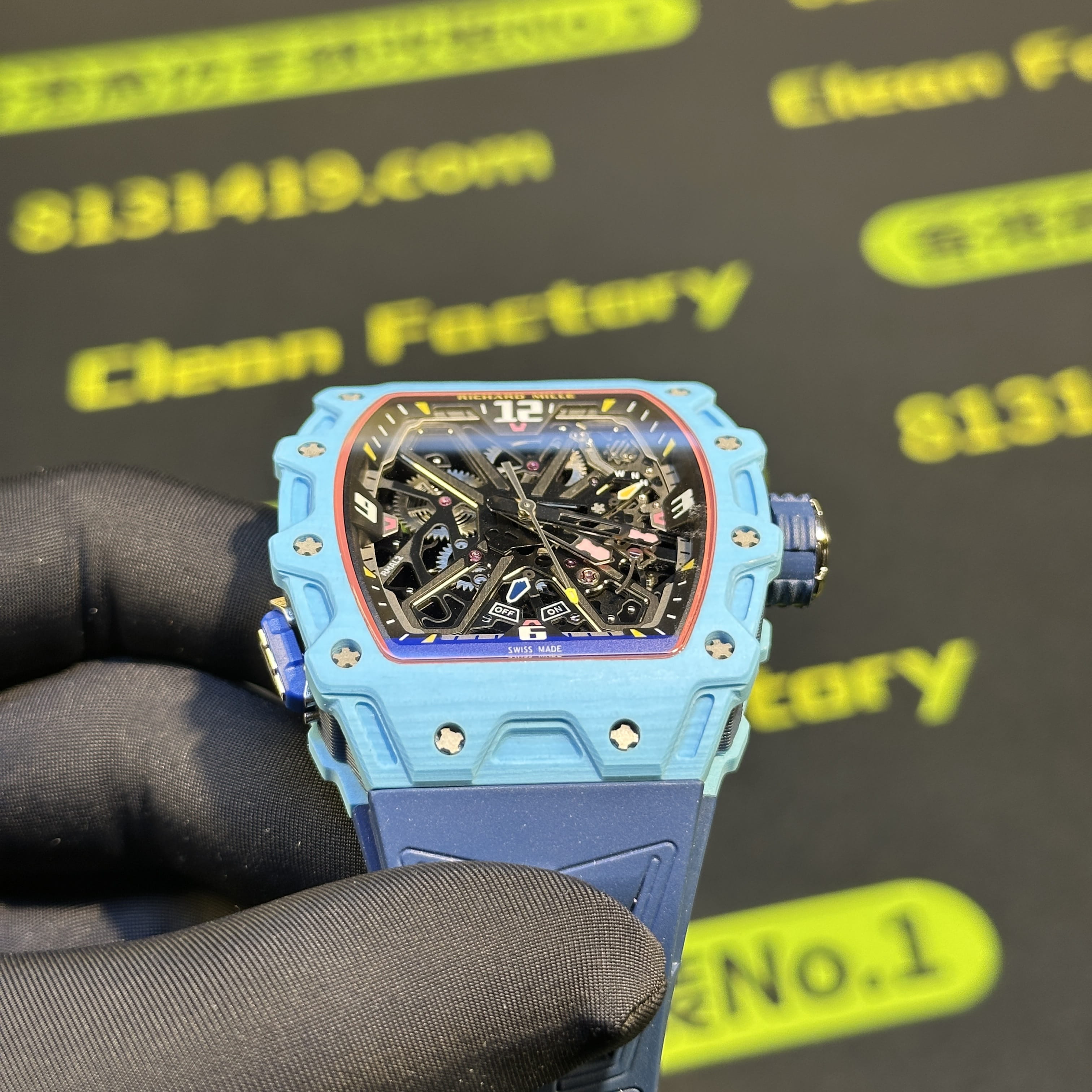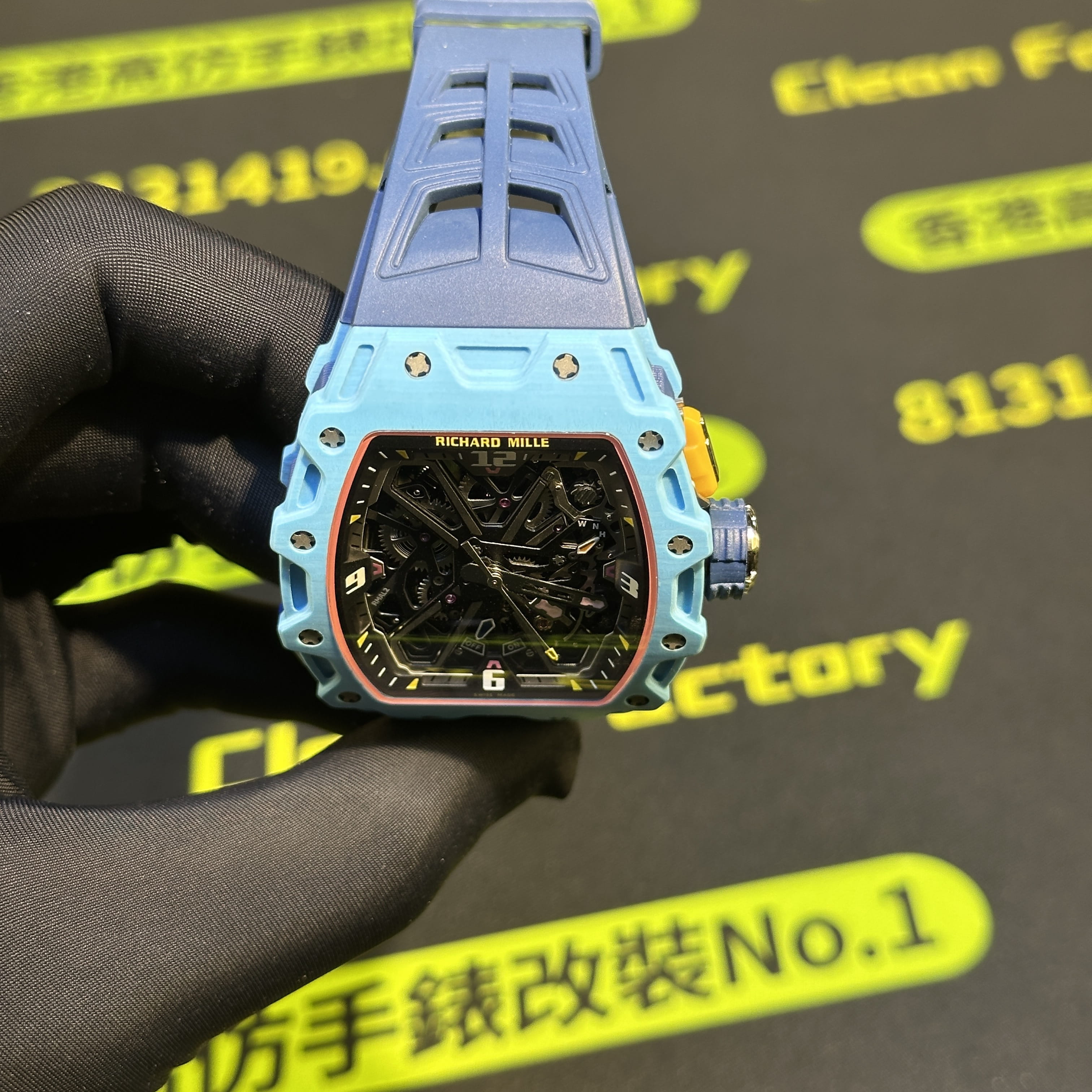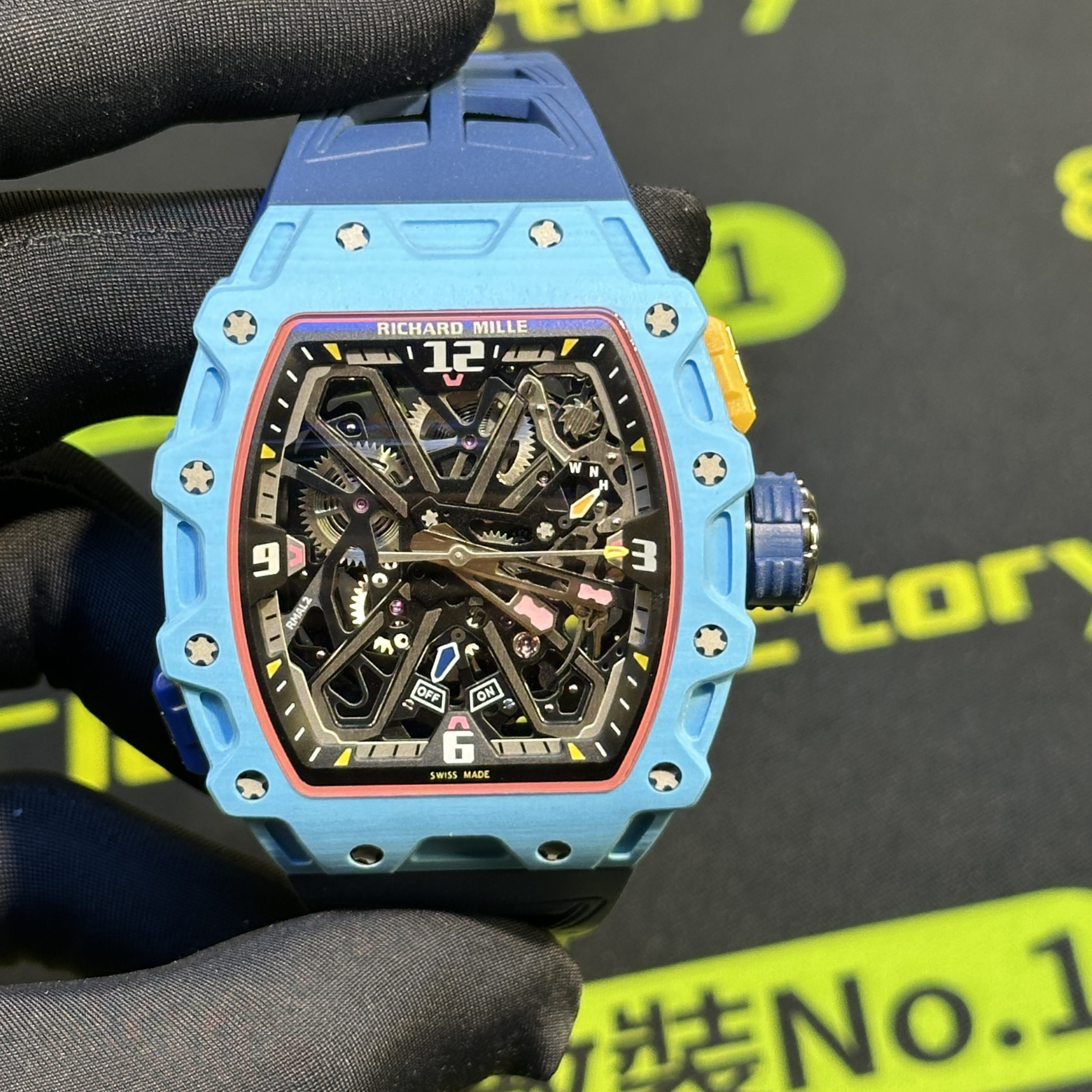 私人訂製高仿Richard Mille男士腕錶系列RM35-03蒂芙尼藍碳纖維款全新推出改裝升級版本,整錶尺寸49.95mm X 43.15mm.是Richard Mille官方在2025年發佈的最新款RM腕錶.目前在正版二級市場上的售價是高達600萬港幣左右.而針對高仿Richard Mille私人訂製版本的售價也是比較貴,主要是以改裝升級版本為例,使用的材質,機芯,配置,細節處理都是可以做到接近原版品質!當然對於一款以百萬港幣計算的高仿RM35-03而言,像真度達到90%以上已經是非常超A級別的品質.