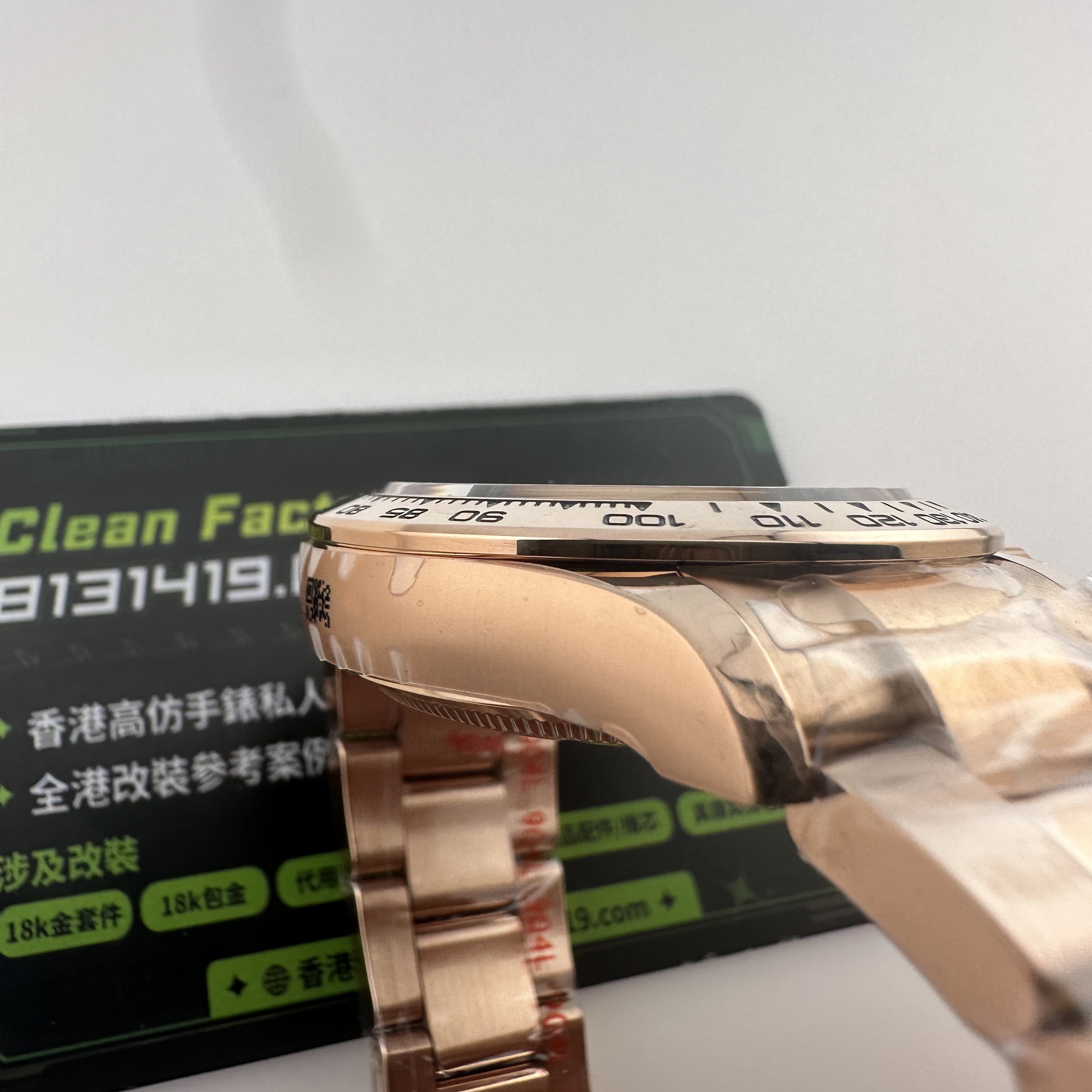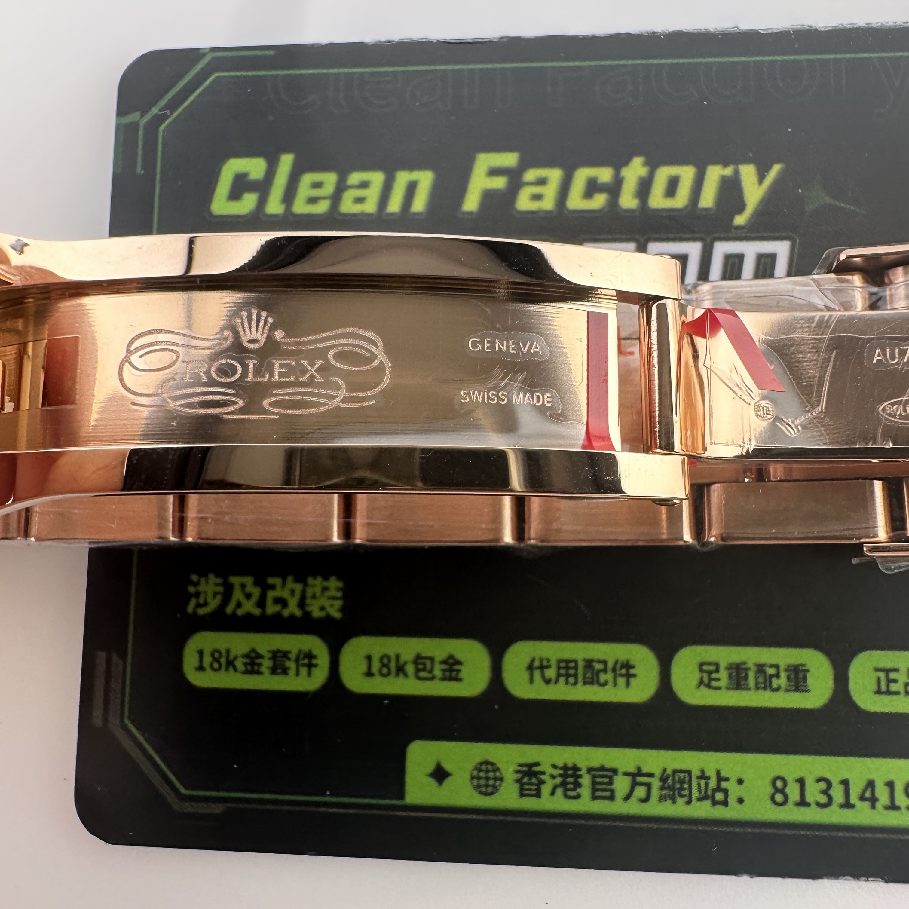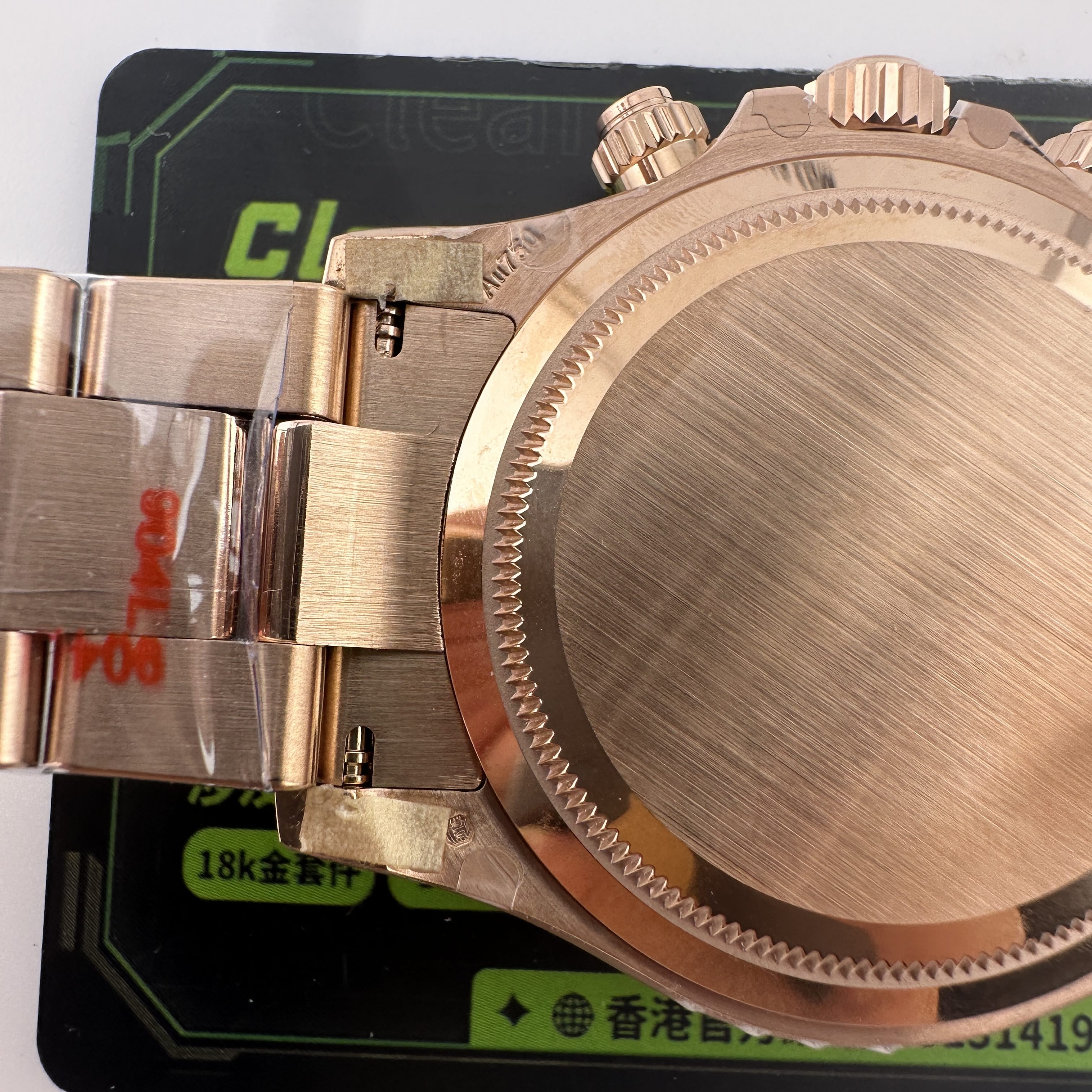 除此之外18K包金主要是針對高仿K金手錶普遍都是使用電鍍金做到K金色澤,加上原裝正品126505是18K玫瑰金材質,在光澤度以及閃度基礎上比較亮!而電鍍金則沒有那麼閃!使用18K包金升級後可以做到做到同步原裝正品同一種色澤.並且白金調色效果完善度比較高.同時我們針對私人高端訂製版本也是標準18K包金,擁有足夠完美的重量比例,在使用18K包金,兩者缺一不可,外觀部分以及手感部分完美解決主要存在的缺陷!