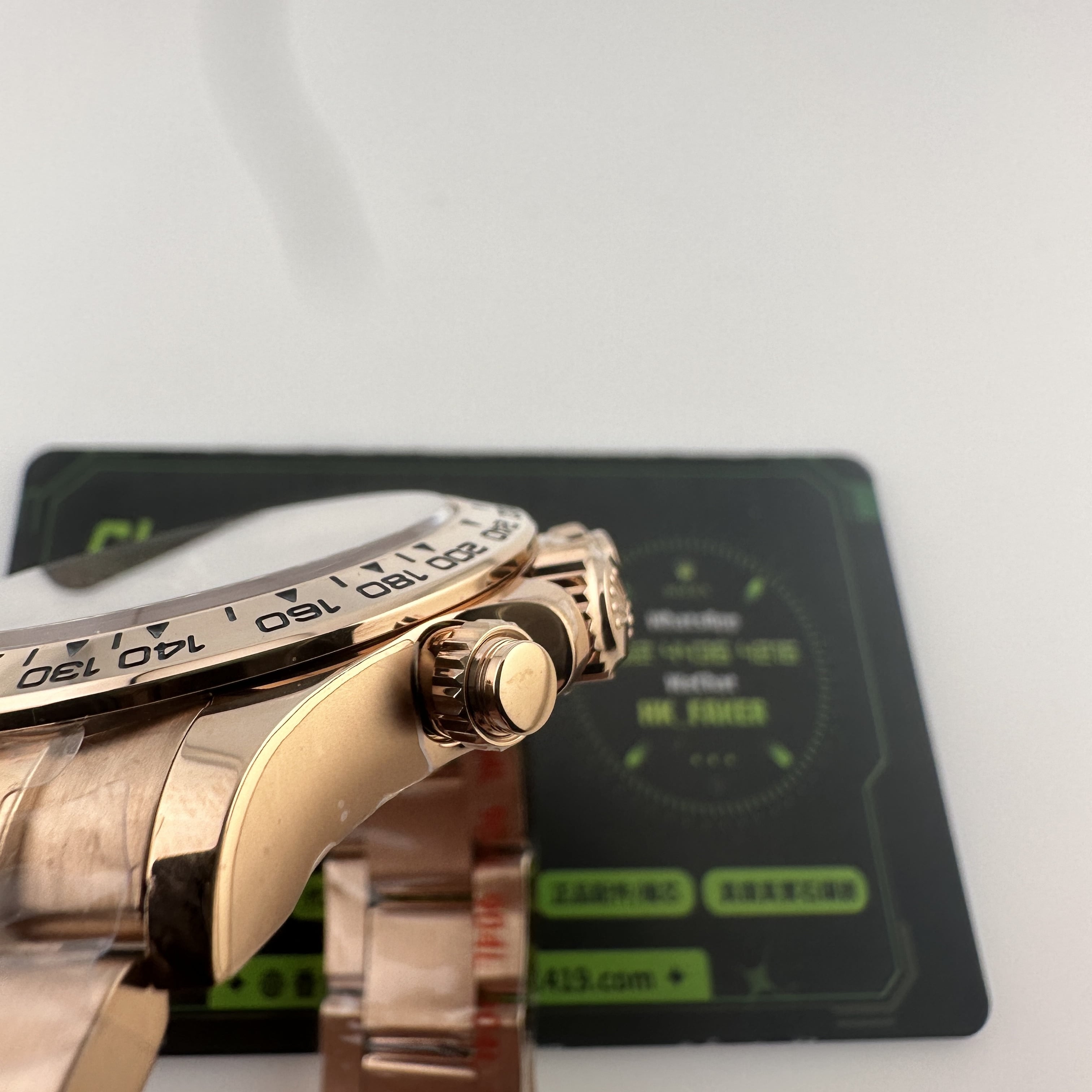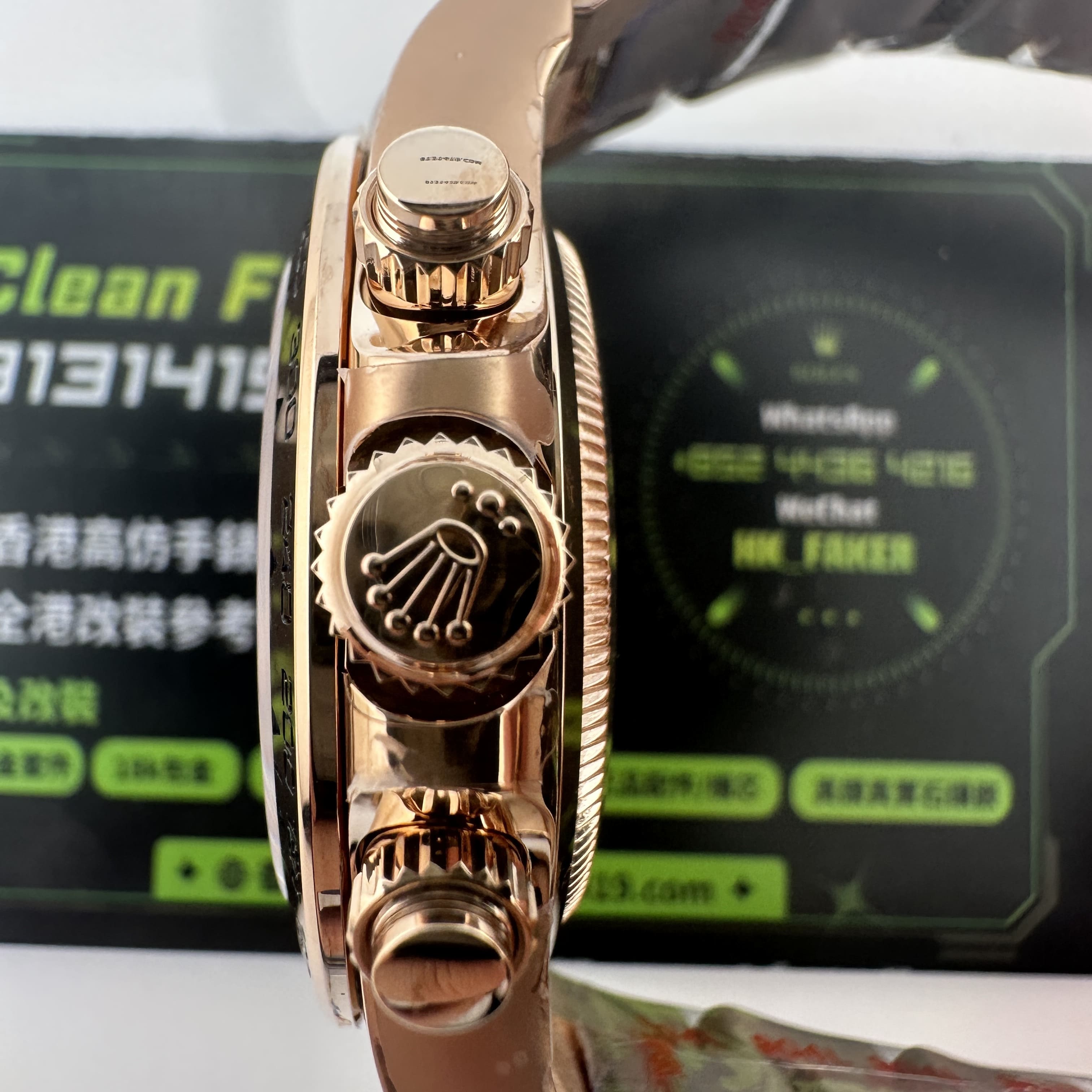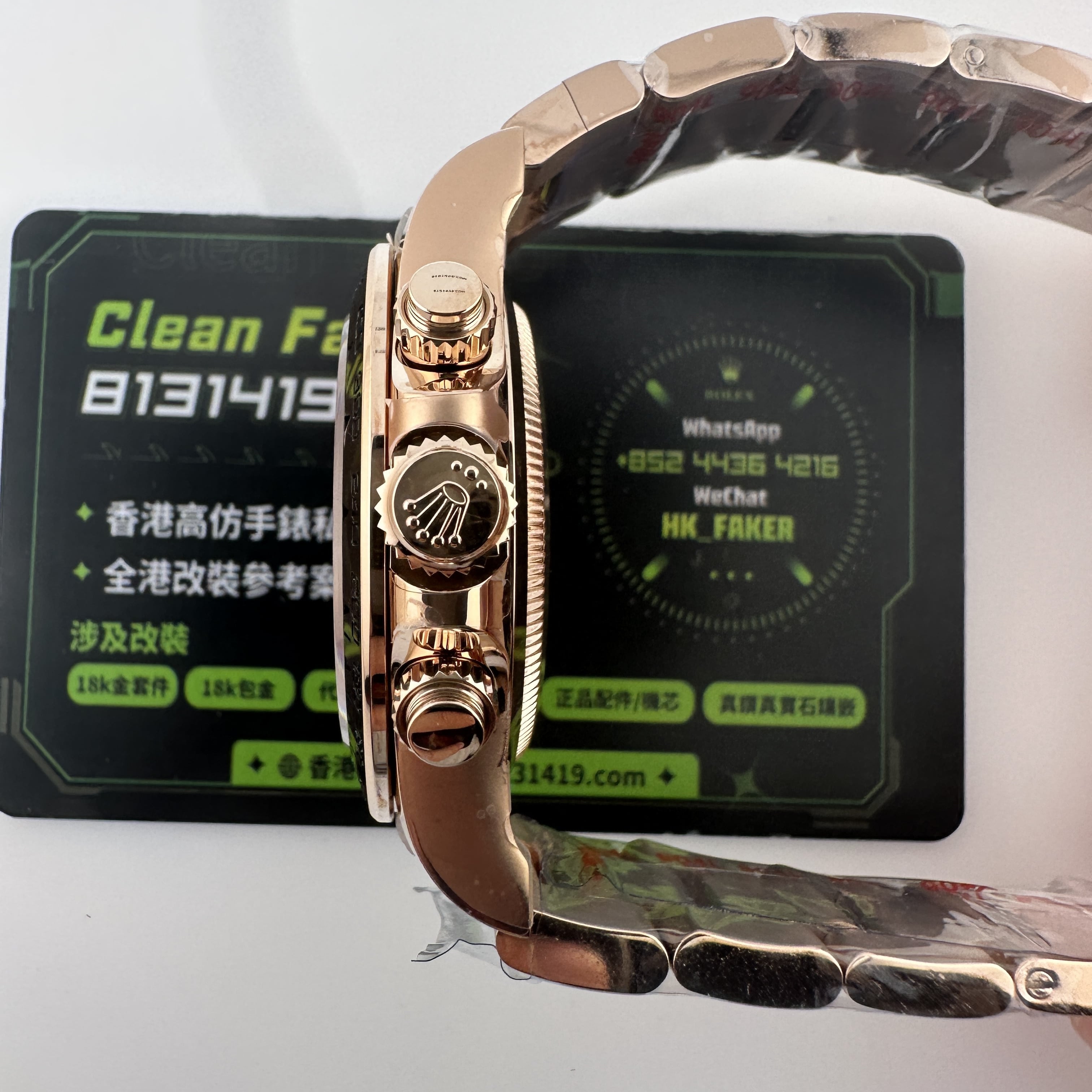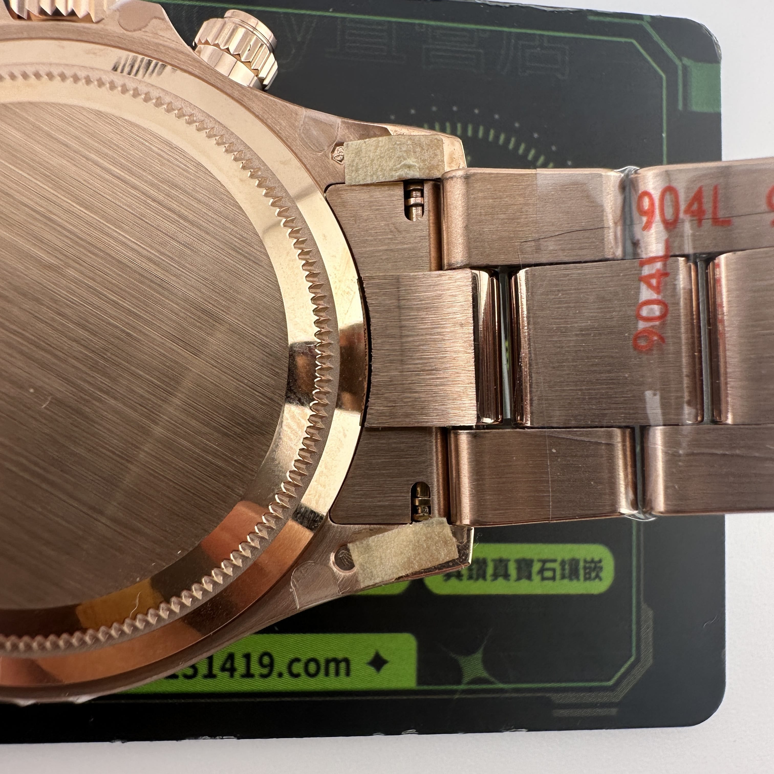 除此之外18K包金主要是針對高仿K金手錶普遍都是使用電鍍金做到K金色澤,加上原裝正品126505是18K玫瑰金材質,在光澤度以及閃度基礎上比較亮!而電鍍金則沒有那麼閃!使用18K包金升級後可以做到做到同步原裝正品同一種色澤.並且白金調色效果完善度比較高.同時我們針對私人高端訂製版本也是標準18K包金,擁有足夠完美的重量比例,在使用18K包金,兩者缺一不可,外觀部分以及手感部分完美解決主要存在的缺陷!