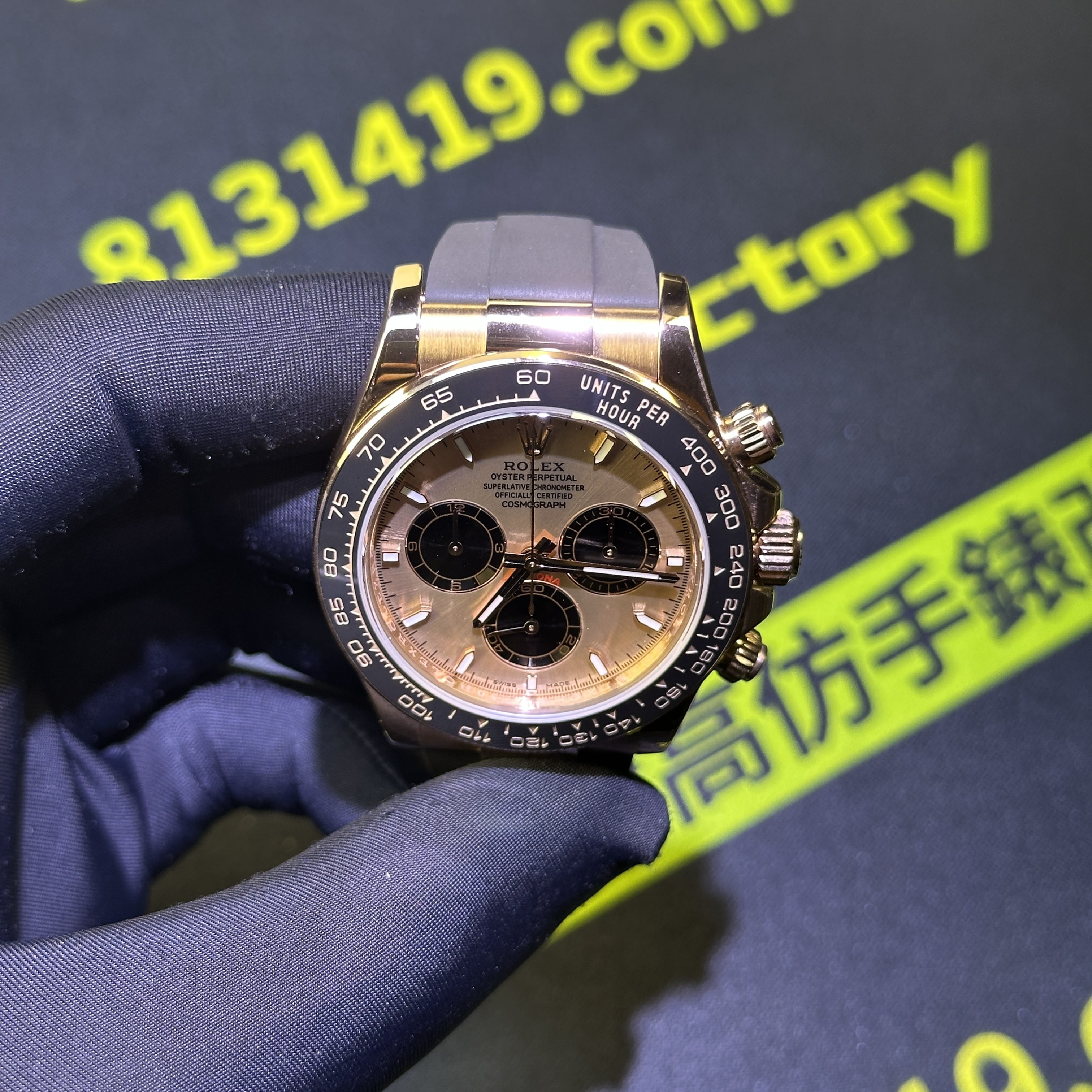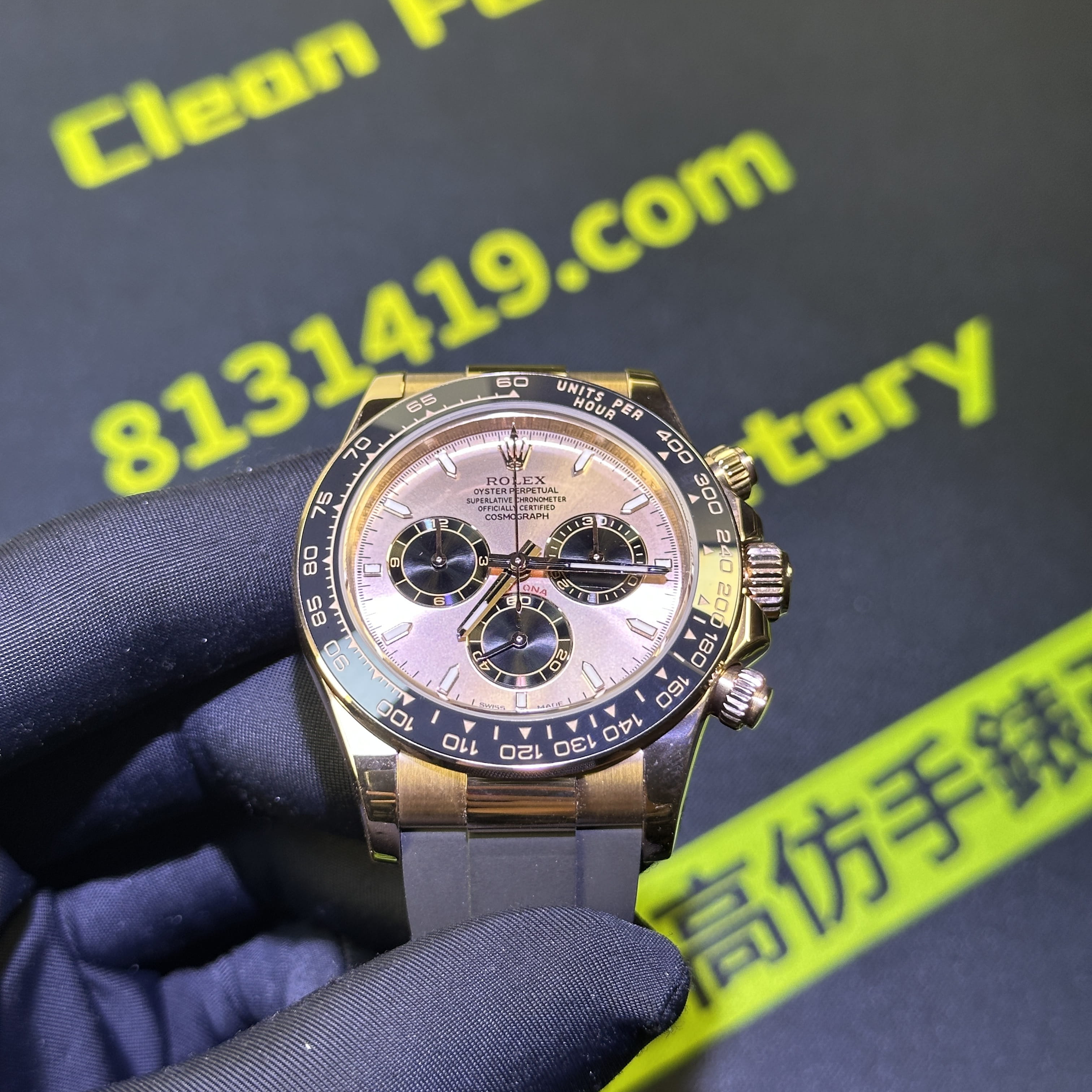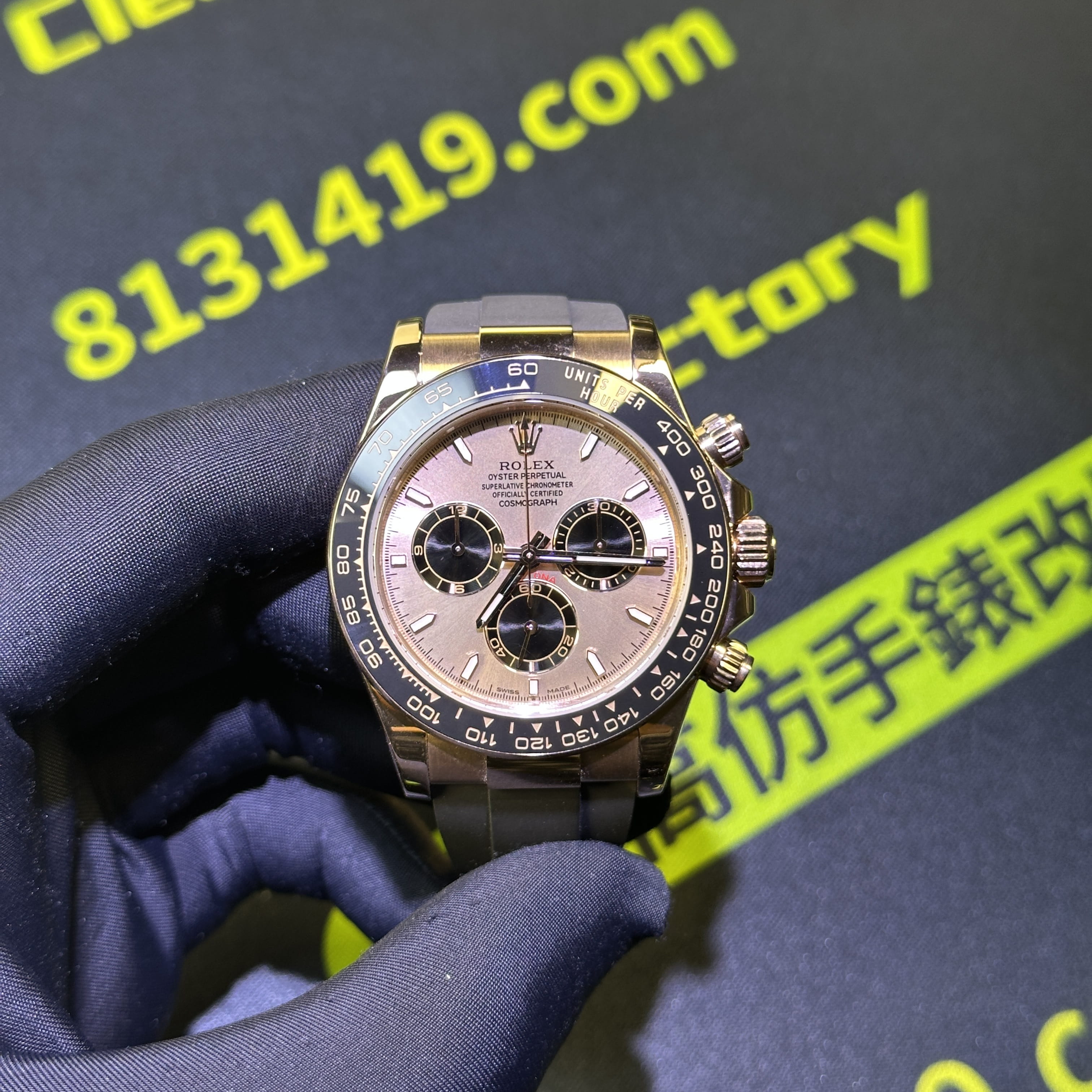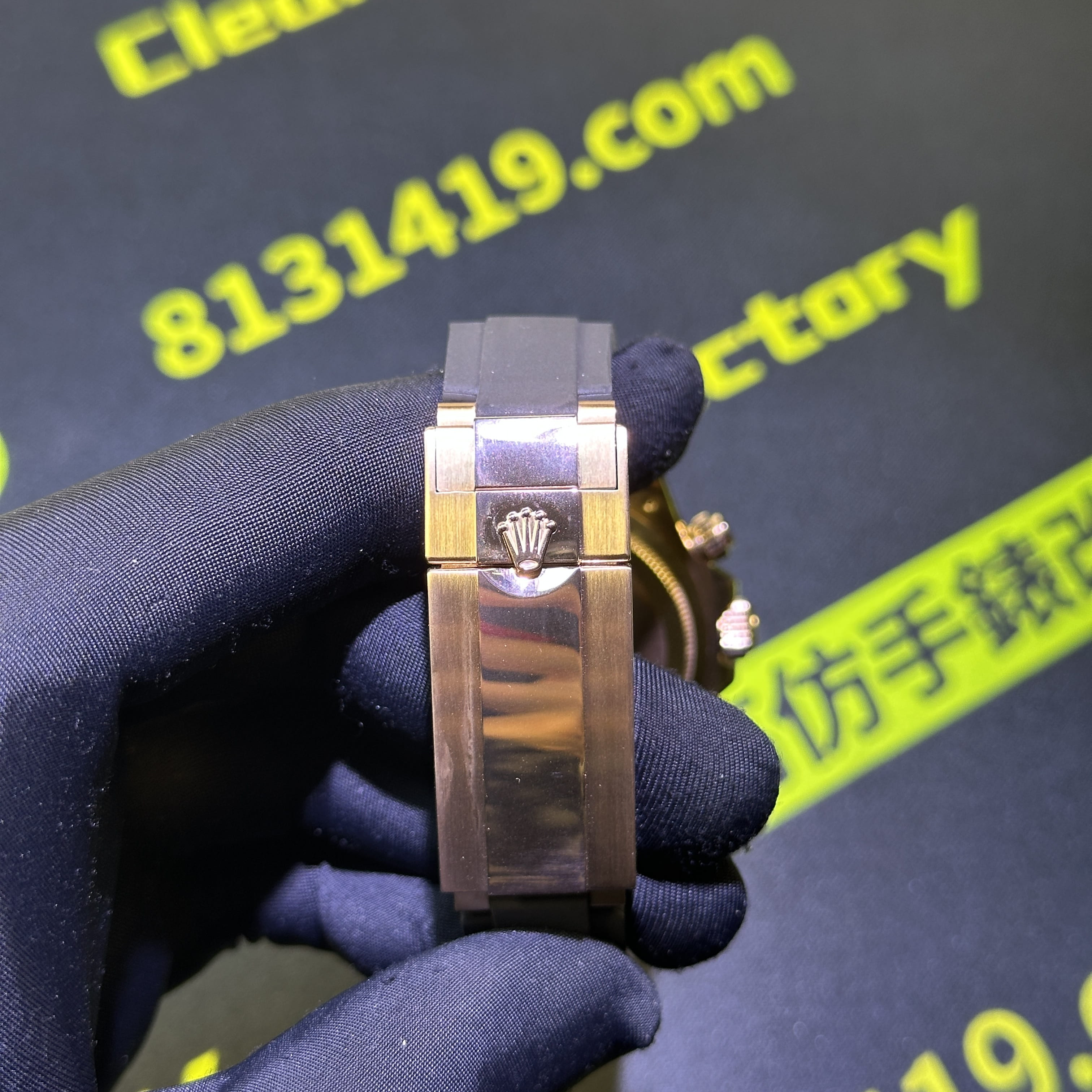 此次根據錶友的需求選用混合重金屬材質打造的錶殼,涉及到重量之外,其次是針對外觀18K包金進行升級,原版126515貝嫂地通拿是是使用18K玫瑰金材質,而高仿勞力士地通拿126515是使用重金屬外加PVD電鍍金,對比原版存在色差.經過18K包金升級,整體的色澤,亮度,閃度,光澤度都具備同步原版一致的效果.包括我們使用18K包金也是做到了厚金處理,正常佩戴情況下基本上不會出現掉色氧化.