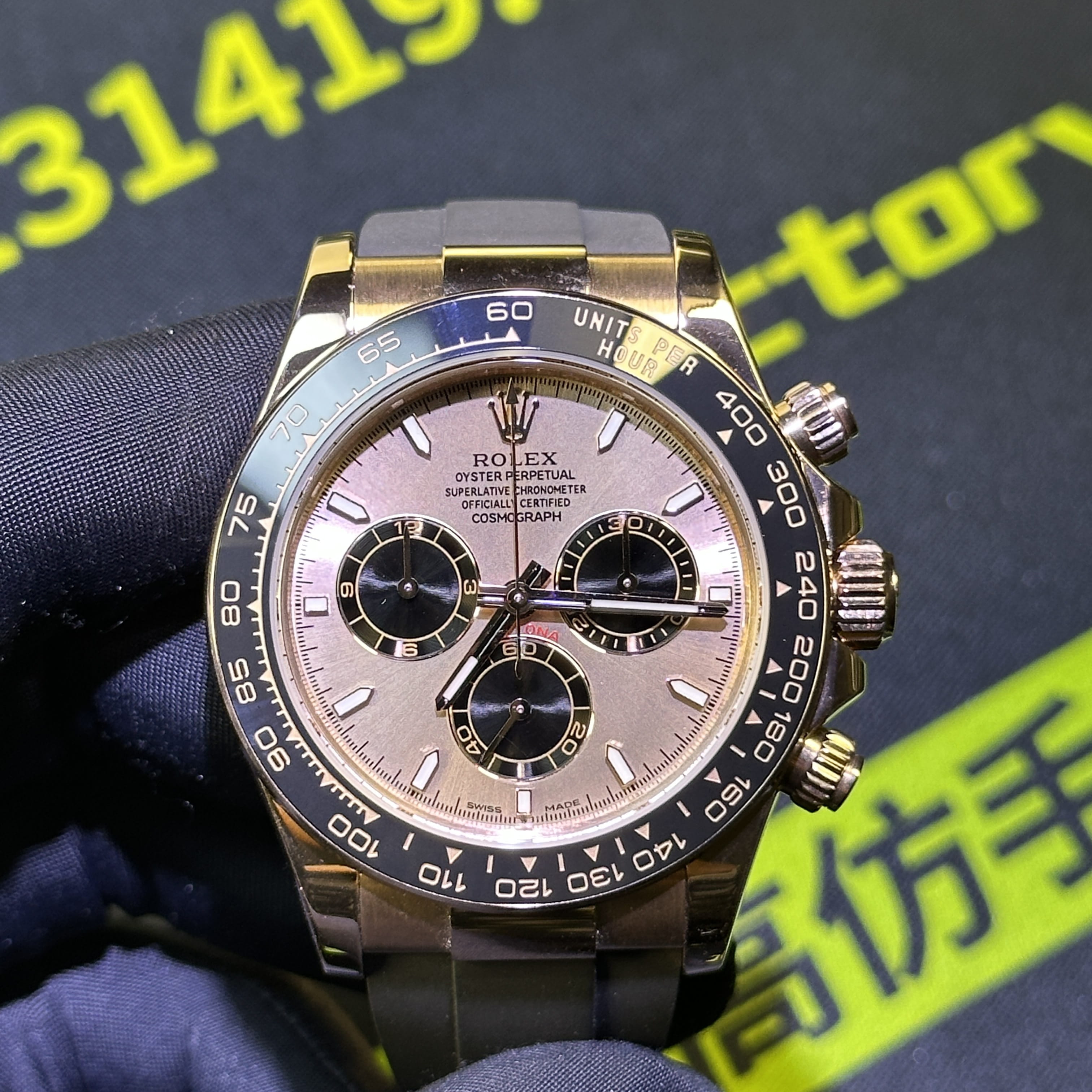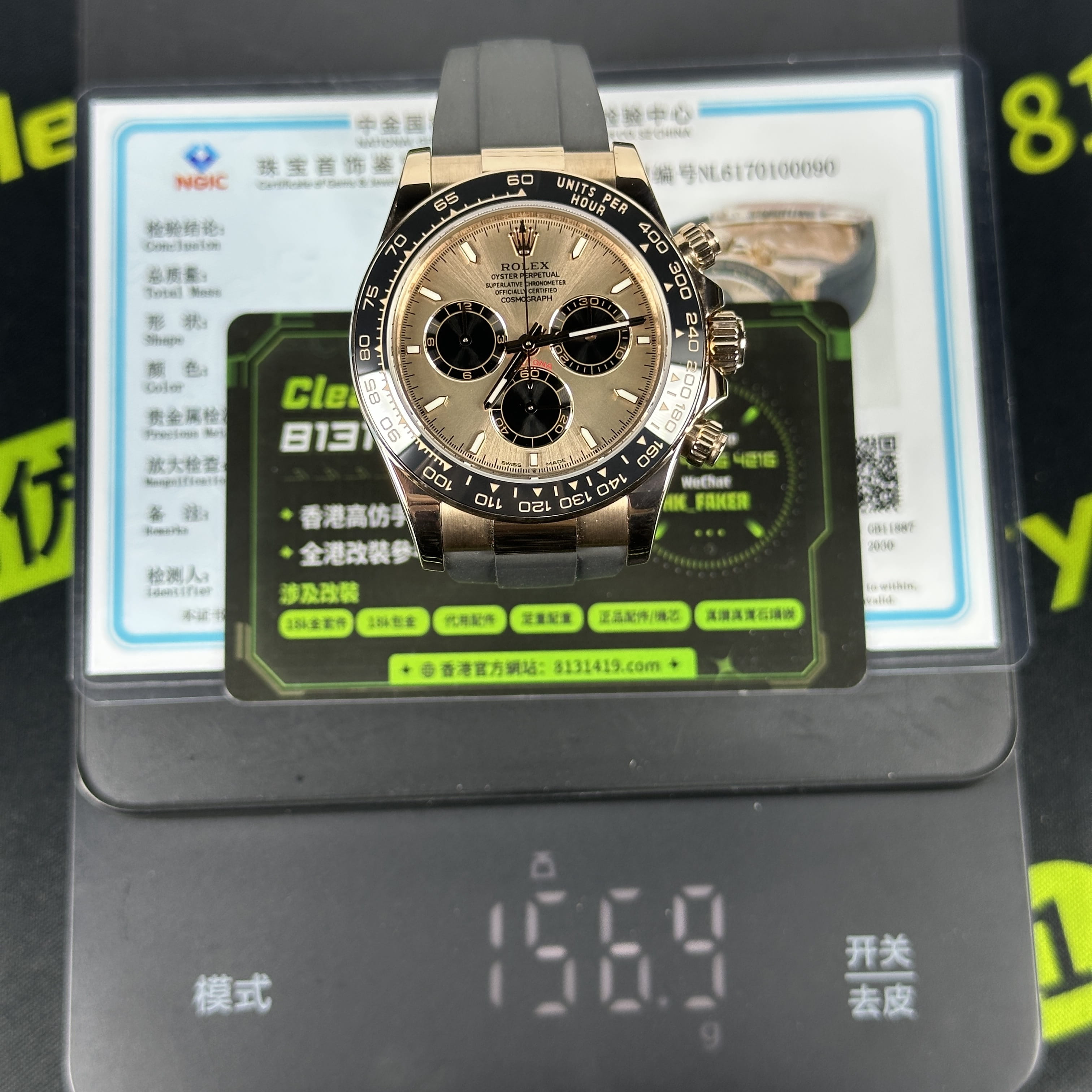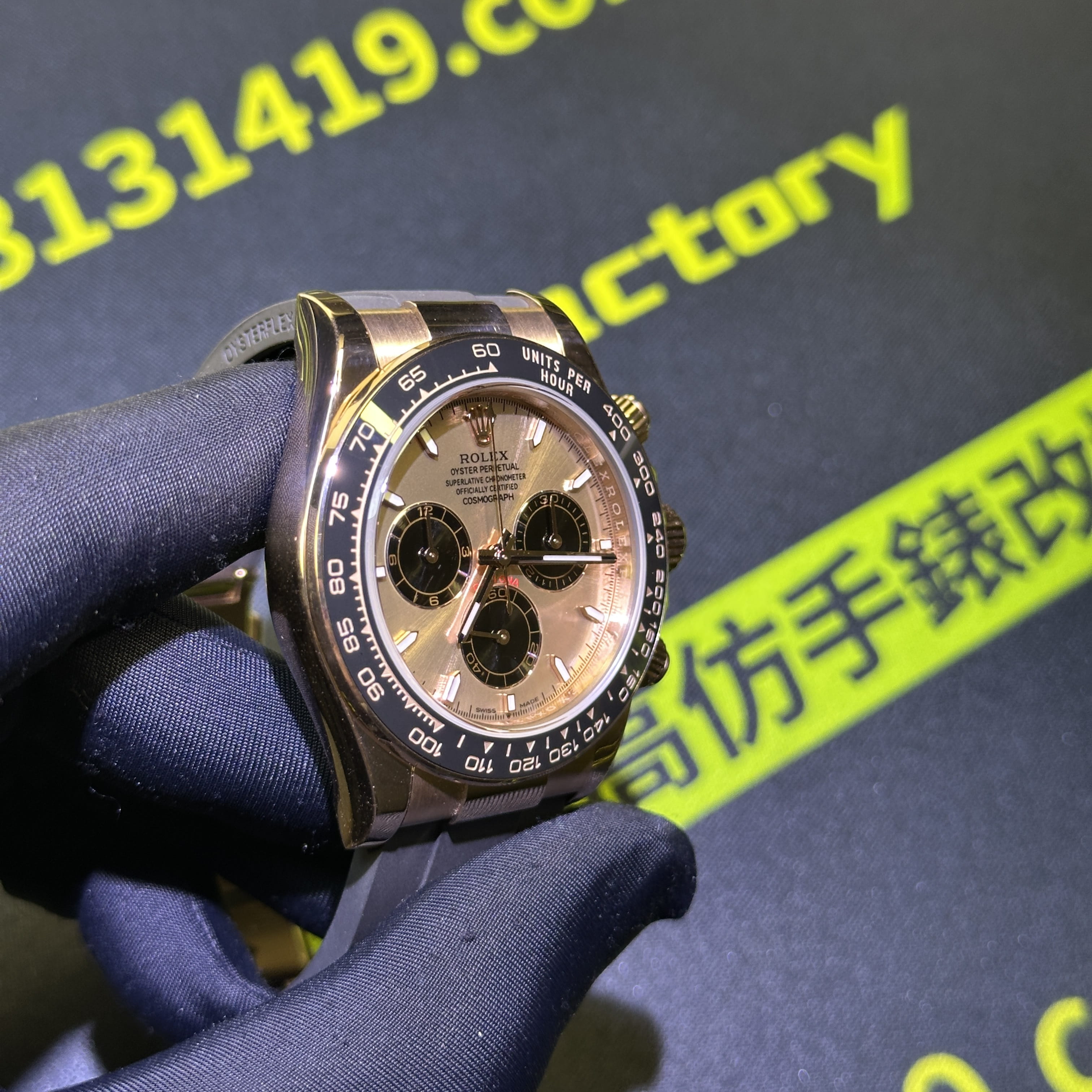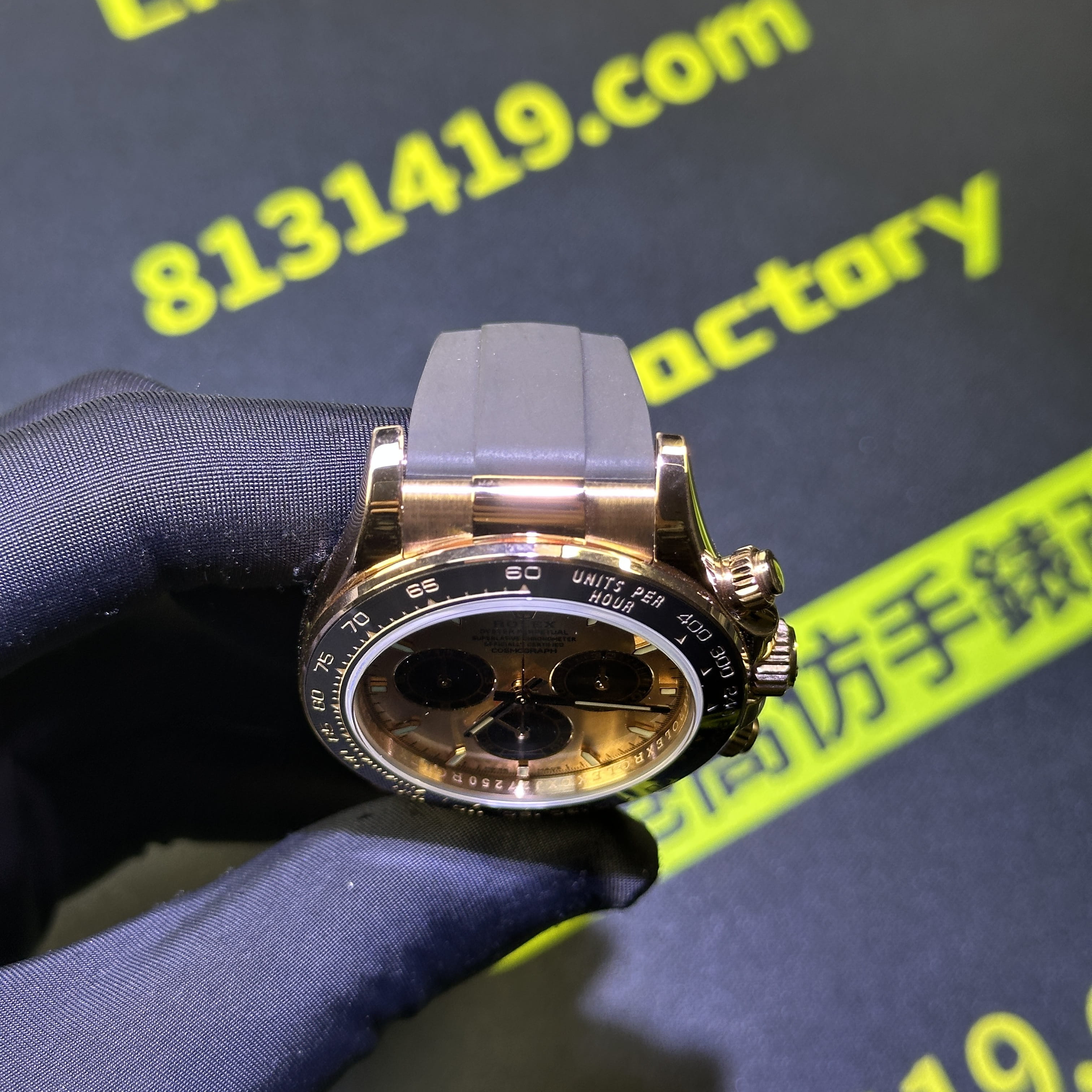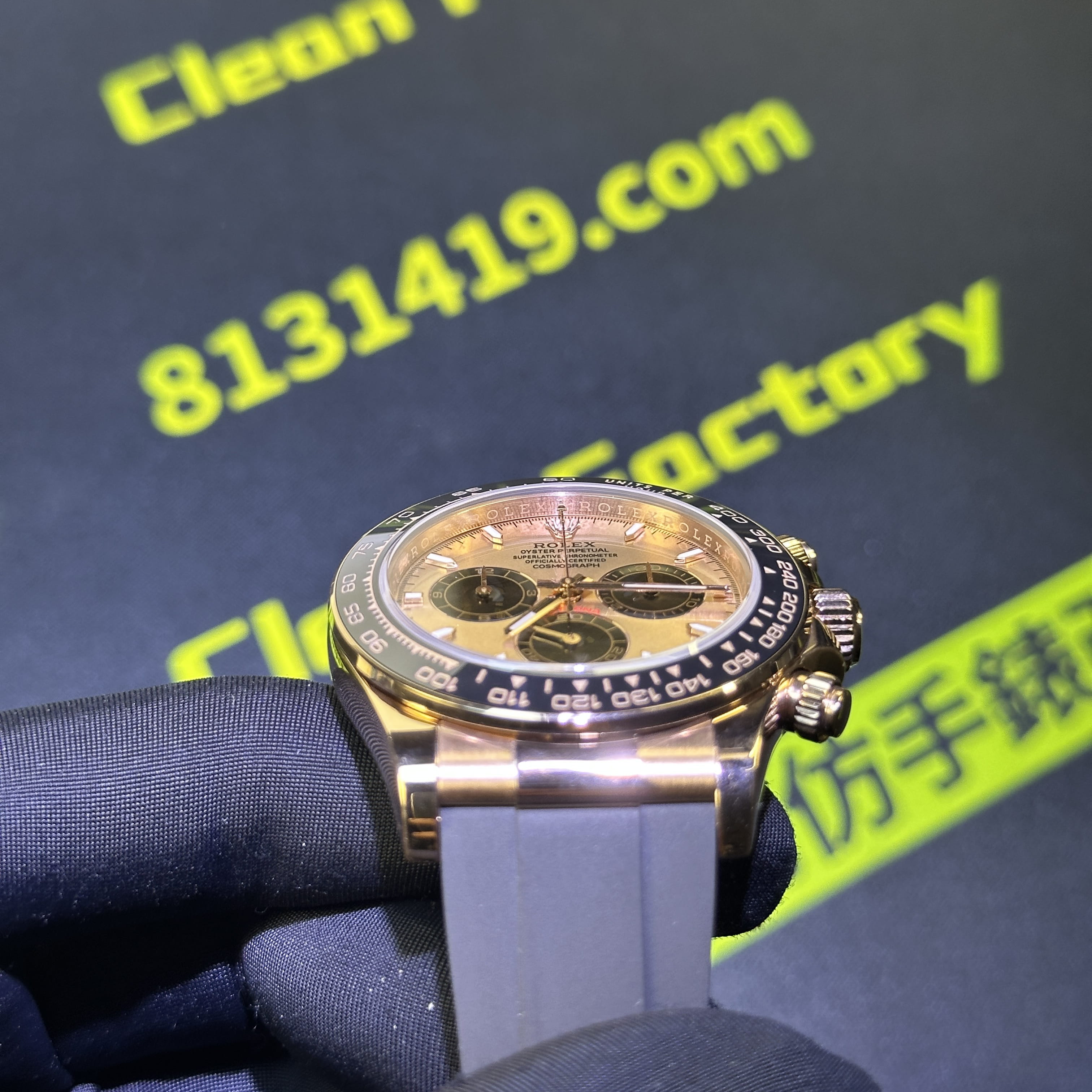 此次根據錶友的需求選用混合重金屬材質打造的錶殼,涉及到重量之外,其次是針對外觀18K包金進行升級,原版126515貝嫂地通拿是是使用18K玫瑰金材質,而高仿勞力士地通拿126515是使用重金屬外加PVD電鍍金,對比原版存在色差.經過18K包金升級,整體的色澤,亮度,閃度,光澤度都具備同步原版一致的效果.包括我們使用18K包金也是做到了厚金處理,正常佩戴情況下基本上不會出現掉色氧化.