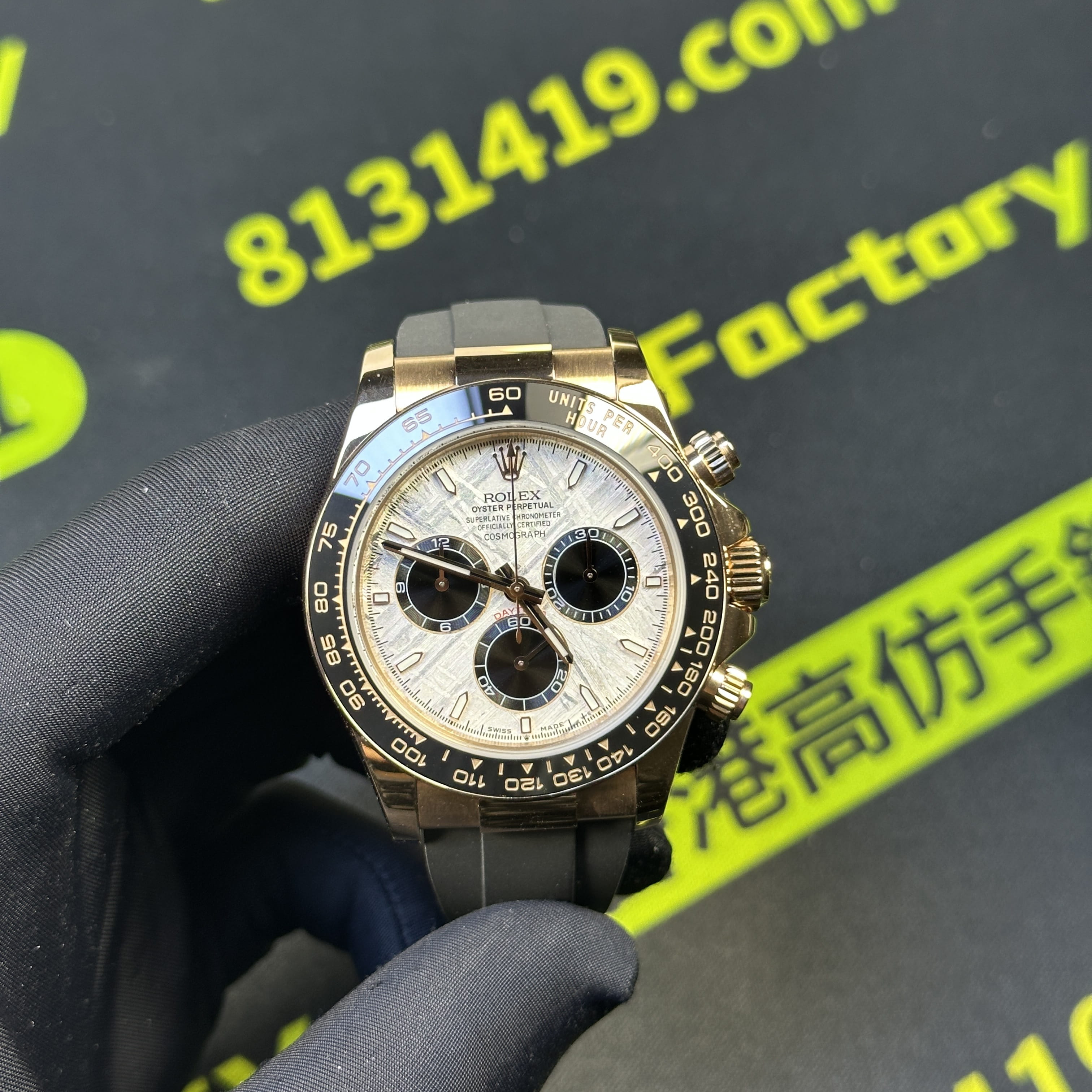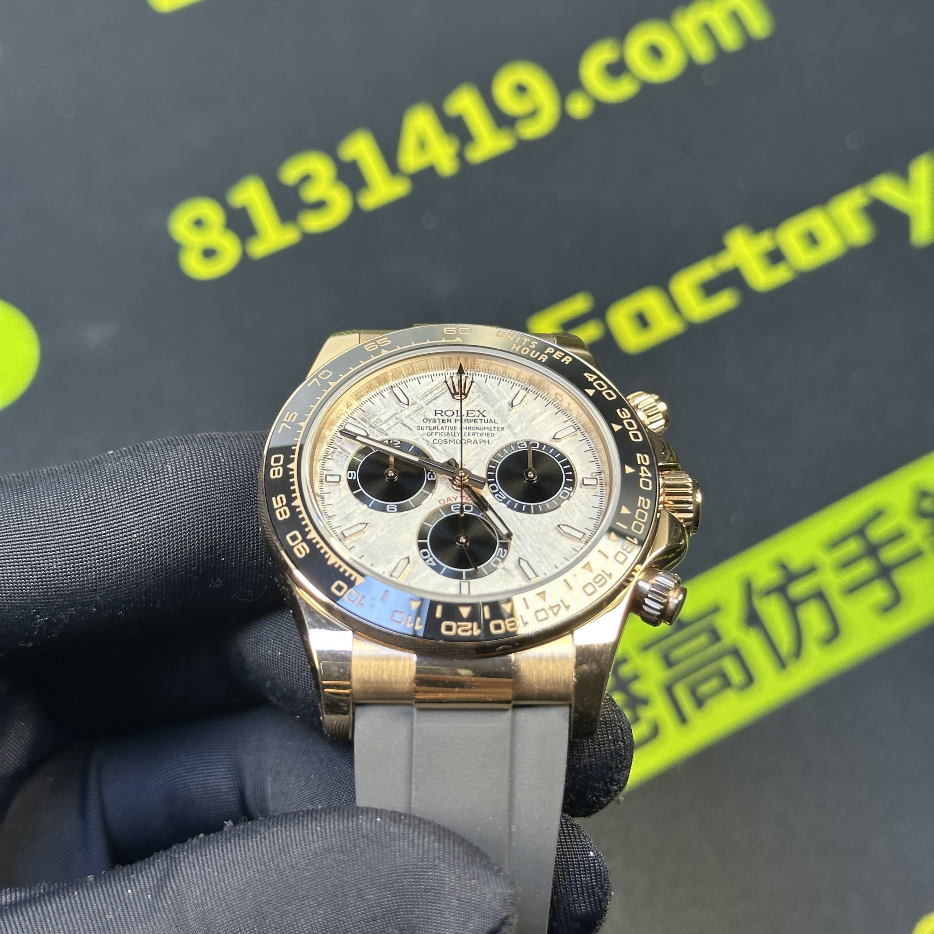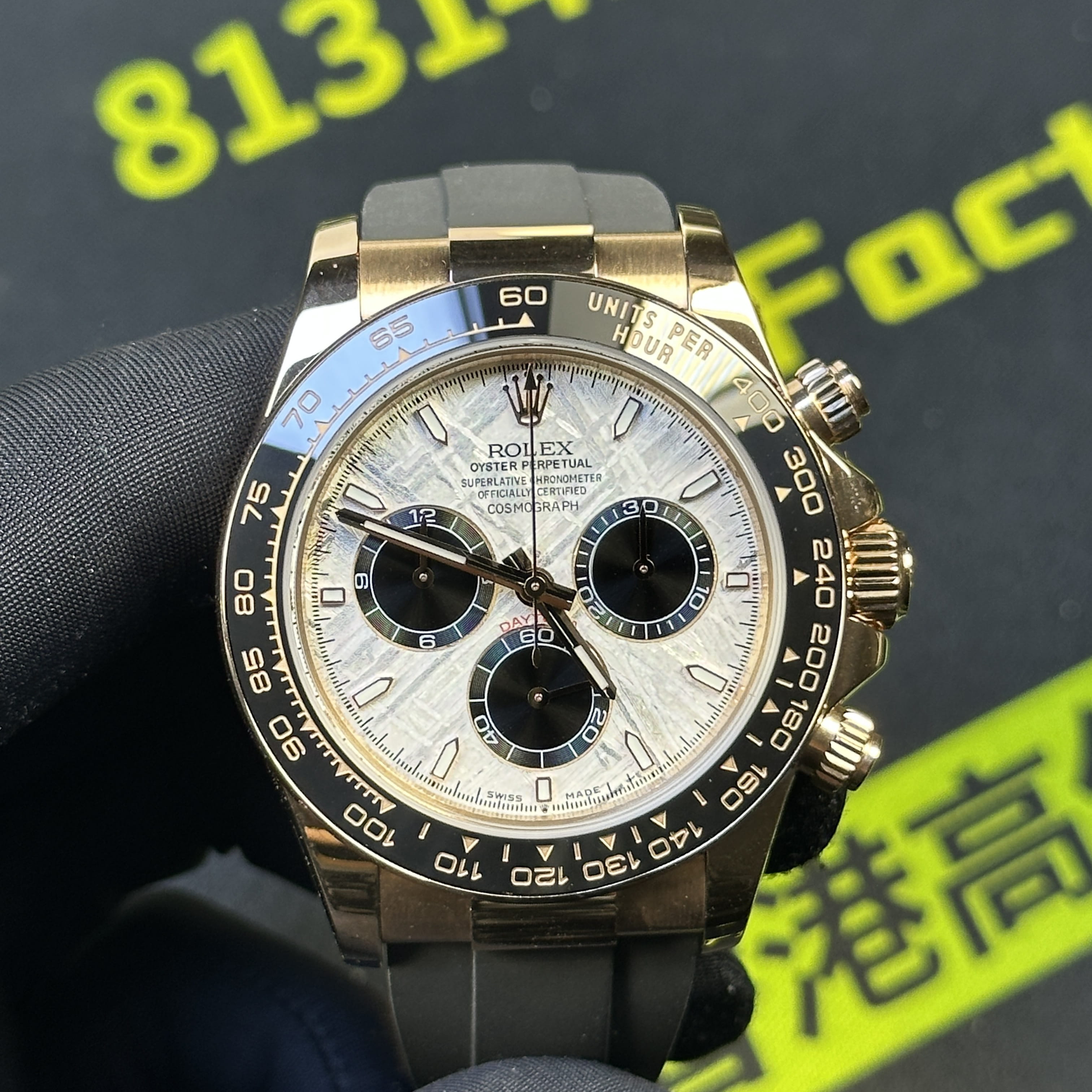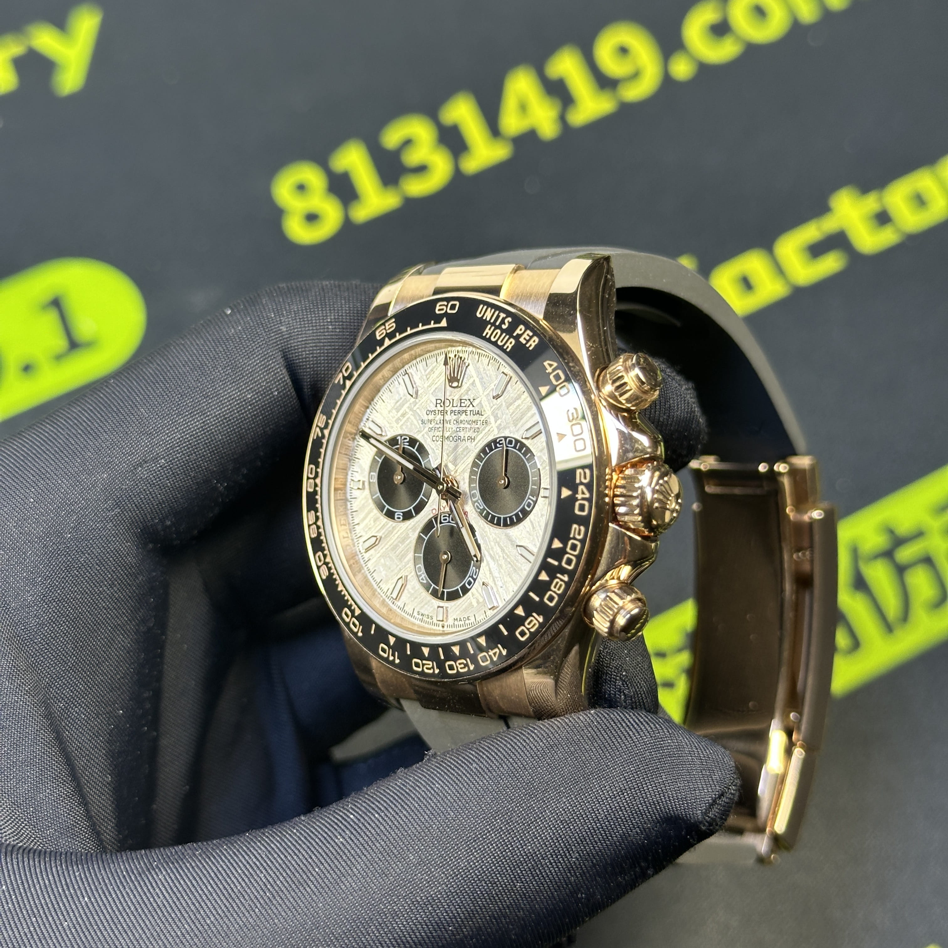 高端私人訂製高仿勞力士地通拿m126515ln-0008玫瑰金隕石面,此次涉及的版本除了私人訂製需求之外,我們針對高端品質依舊是沿用足重版本作為基礎.整錶尺寸40mm,厚薄度做到了12.2mm,外觀尺寸,規格,比例都是依據4131機芯版本地通拿私人訂製高仿版本是使用原版開模復刻而成!外觀玫瑰金色澤,黑色陶瓷圈口搭配一張真隕石材質打造的盤面.