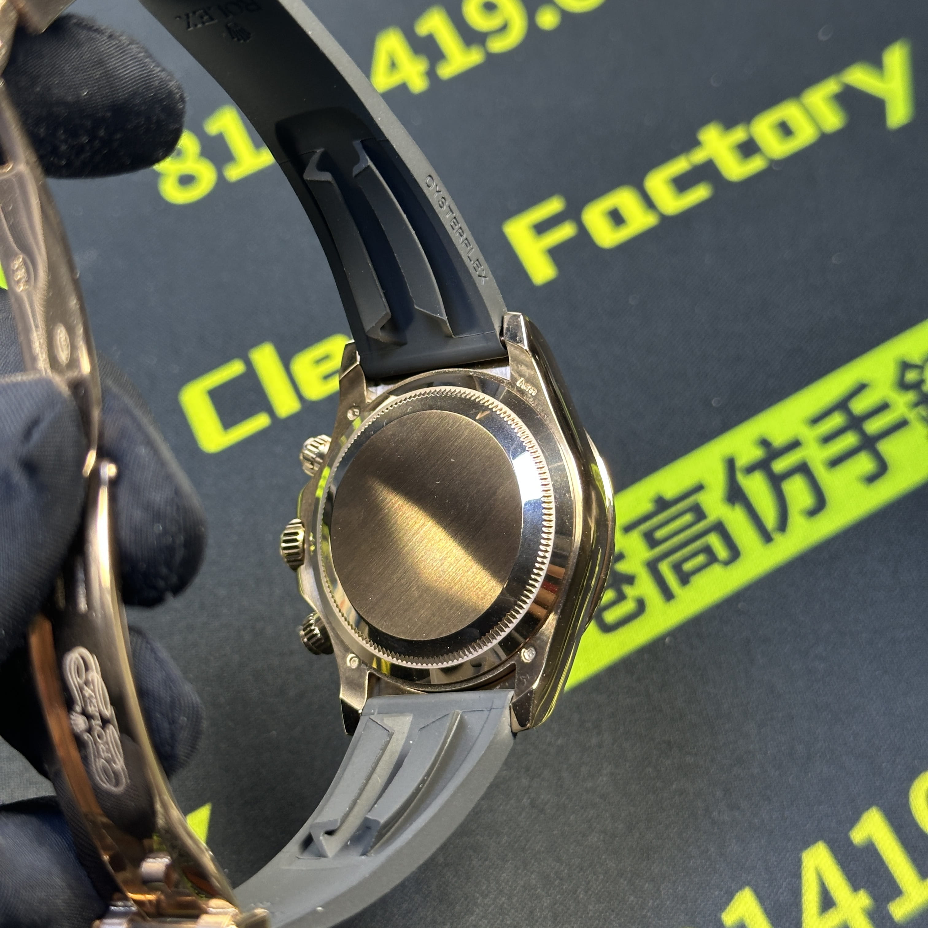 克重比例達到了同步重量,隕石盤面自然形成,這些配置已經達到了最頂峰的狀態!而針對高仿地通拿126515隕石訂製版本的最後一步且最重要的就是外觀做18K包金升級.原有的高仿地通拿隕石錶款式使用PVD電鍍金工藝,對比原版18K玫瑰金色澤存在明顯的色差!而這一隻高仿地通拿私人訂製版本升級18K包金的主要效果是可以做到同步原版幾乎無色差的表現.
