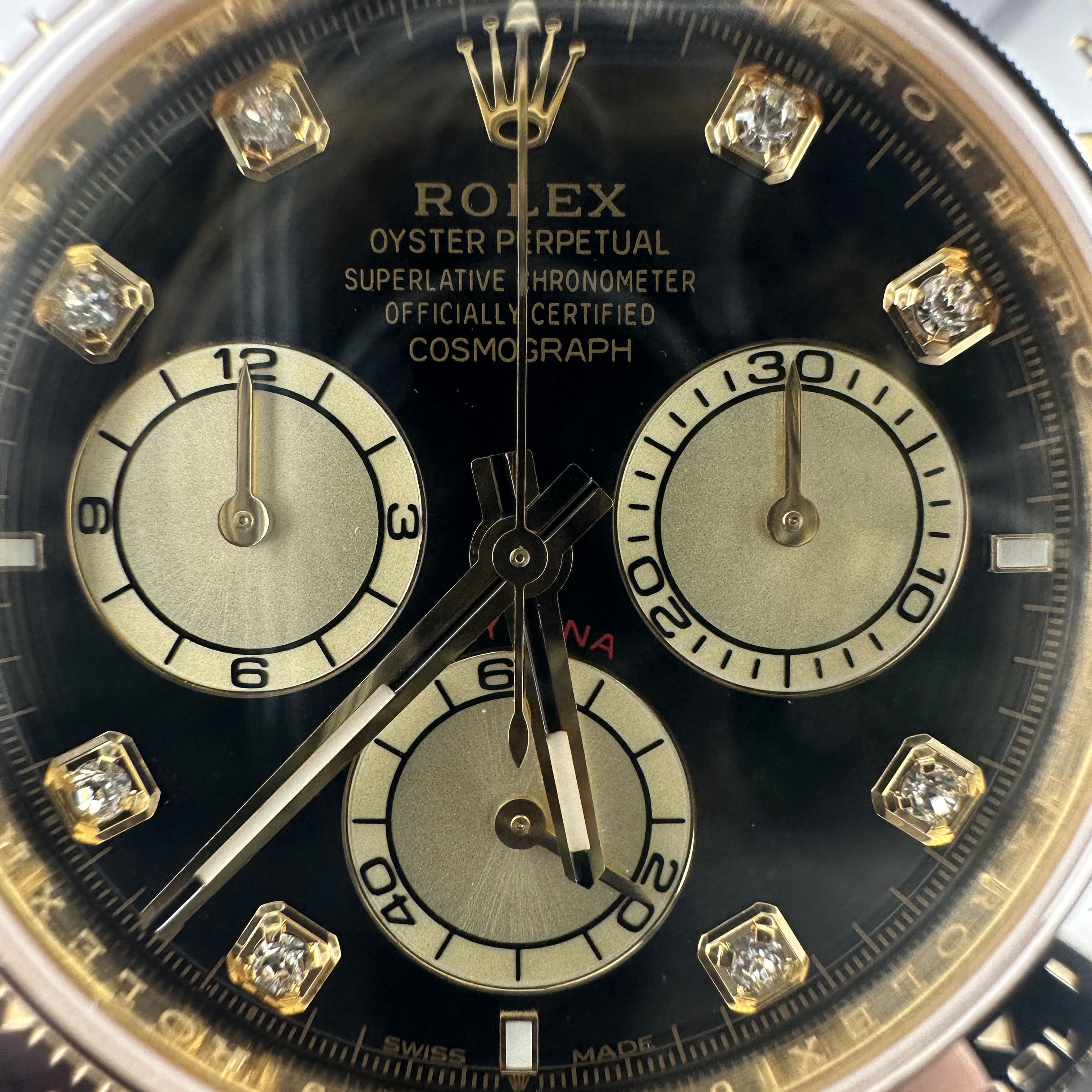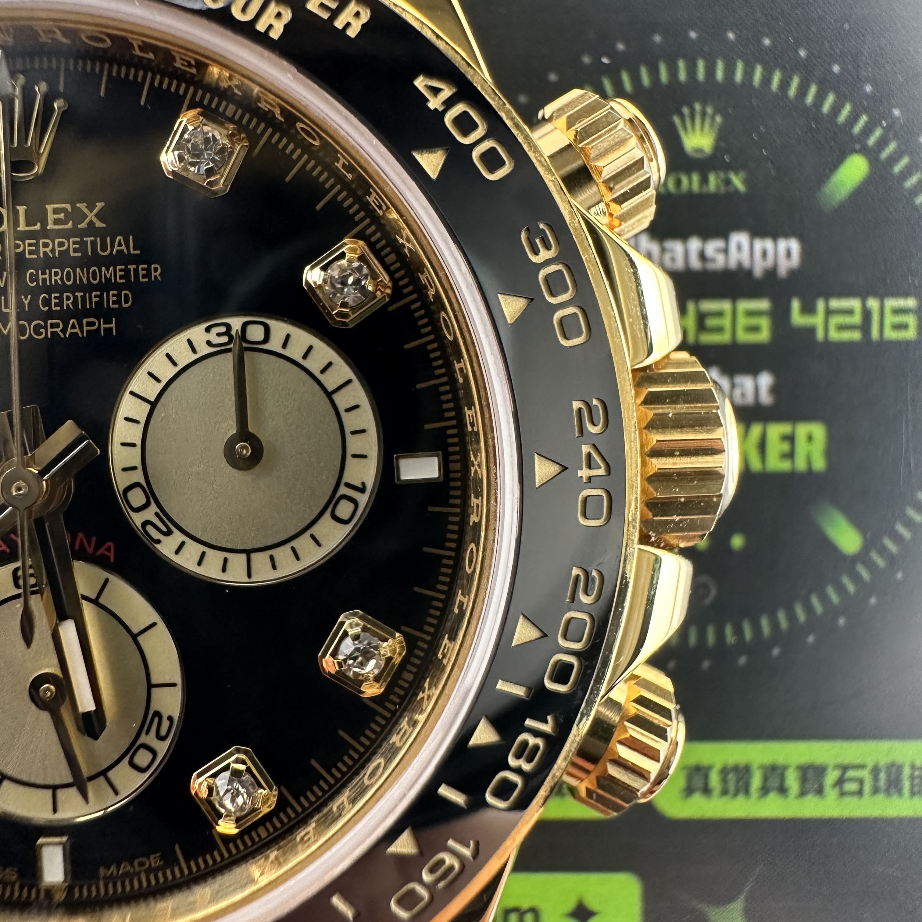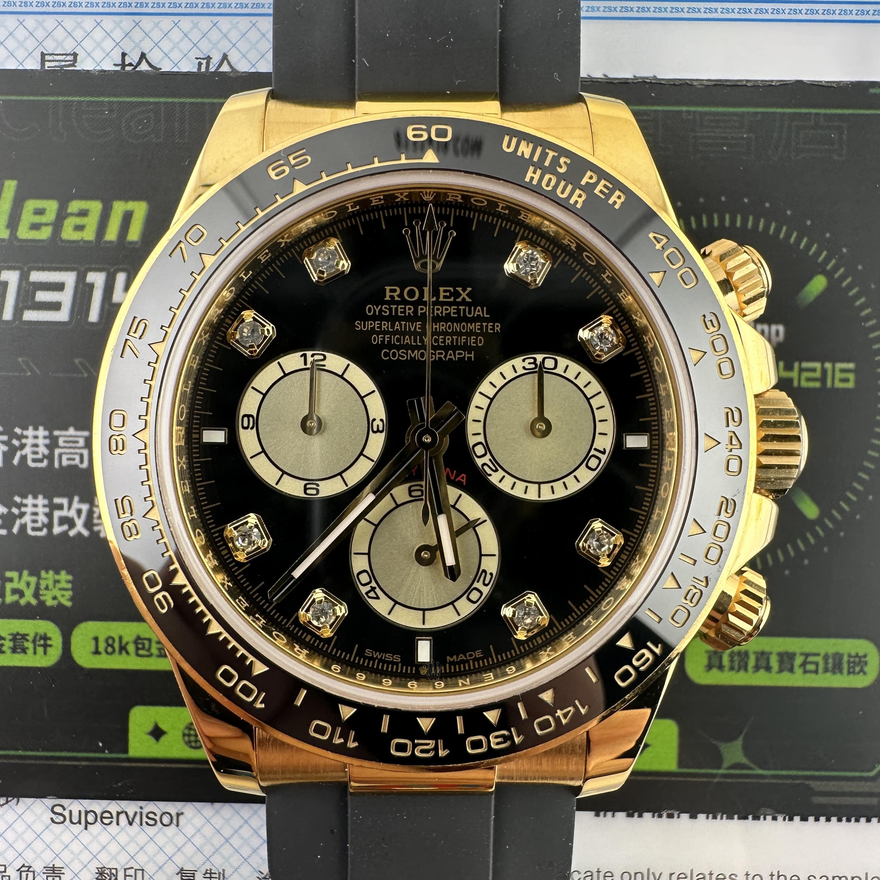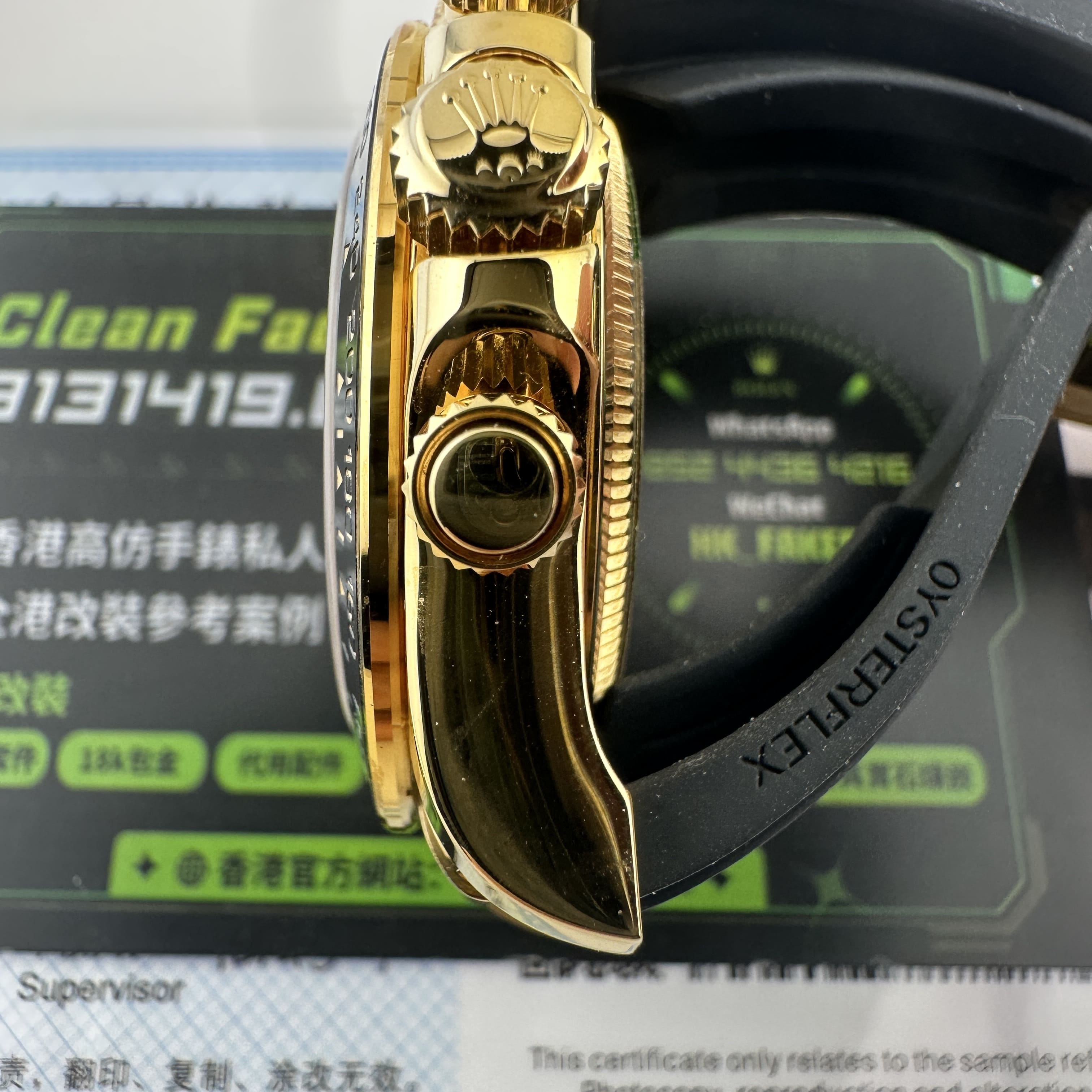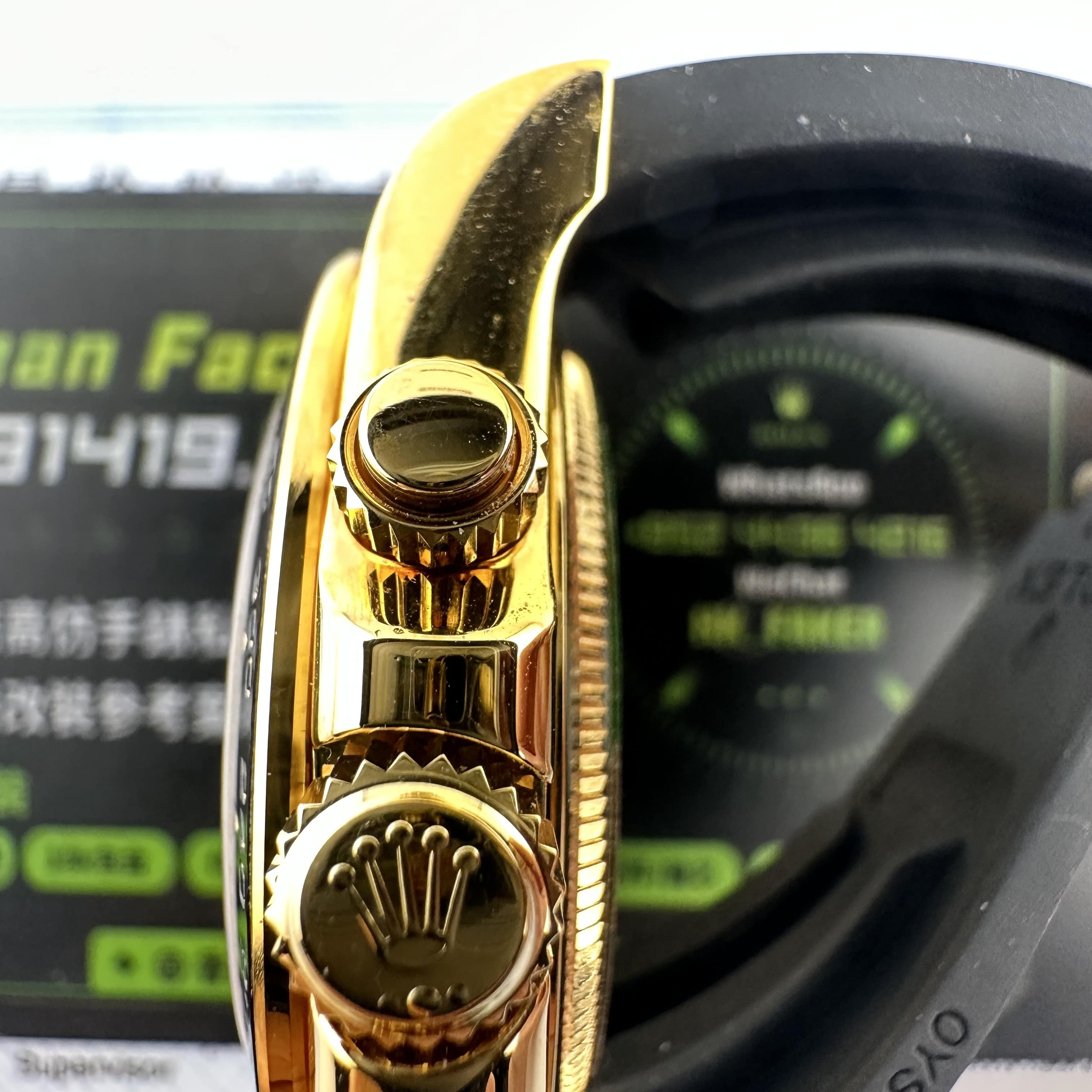 此次根據客戶的需求做到最接近原版品質,因此我們訂購了一張正版代用級別盤面,(並非正版錶盤)!對比專櫃版本幾乎是可以做到"無色差"狀態.包括時間刻度鑽丁材質都是後期使用到"人工培育鑽"材質,雖然造價成本比較貴,但實物的表現肯定是"一分價一分貨".由於拍攝環境以及燈光為問題,導致盤面無"放射紋"效果,但實際性我們通過聚焦的方式放大了錶盤內部細節處理,讓錶友們更加清楚了解到印刷字面,以及三個小圈的配色.