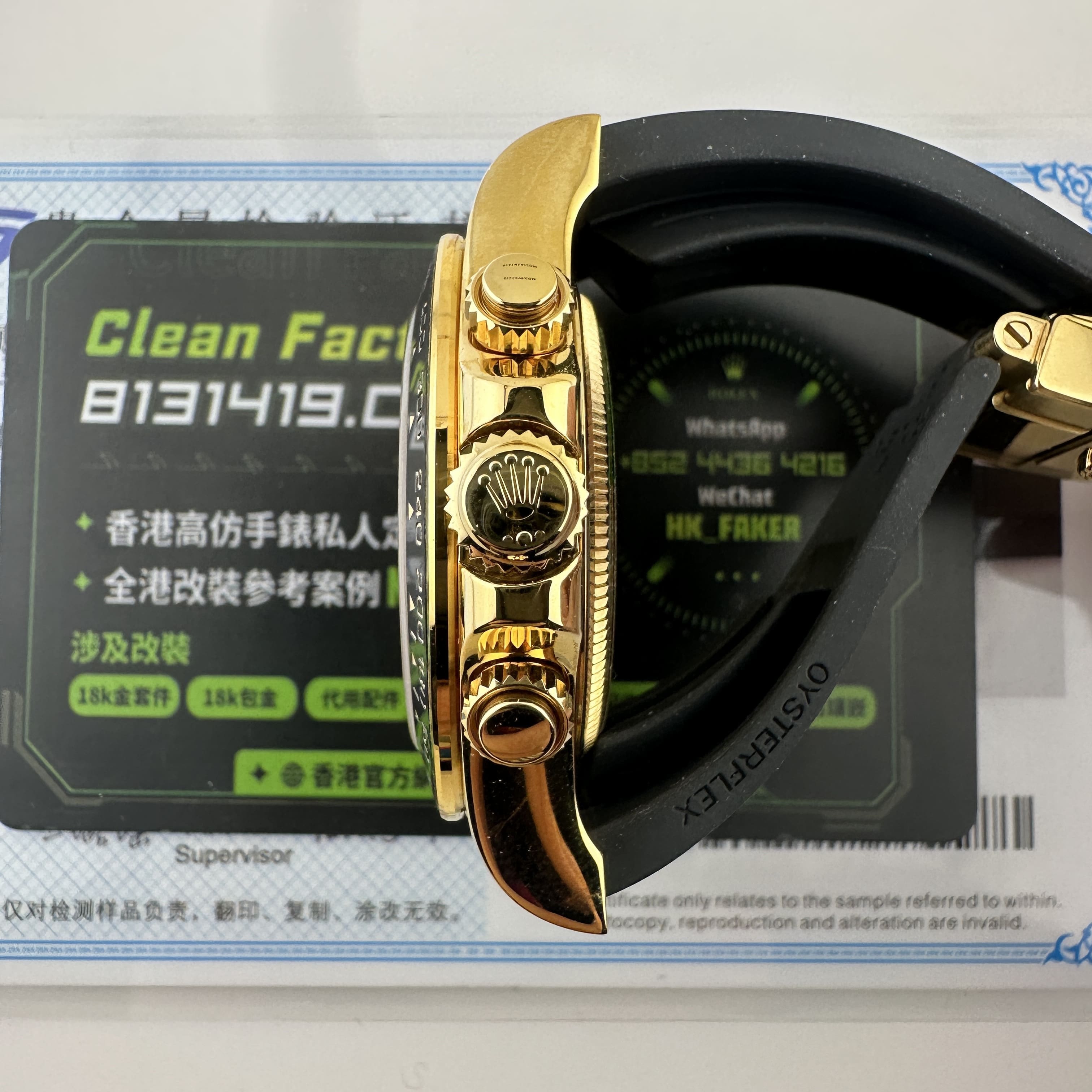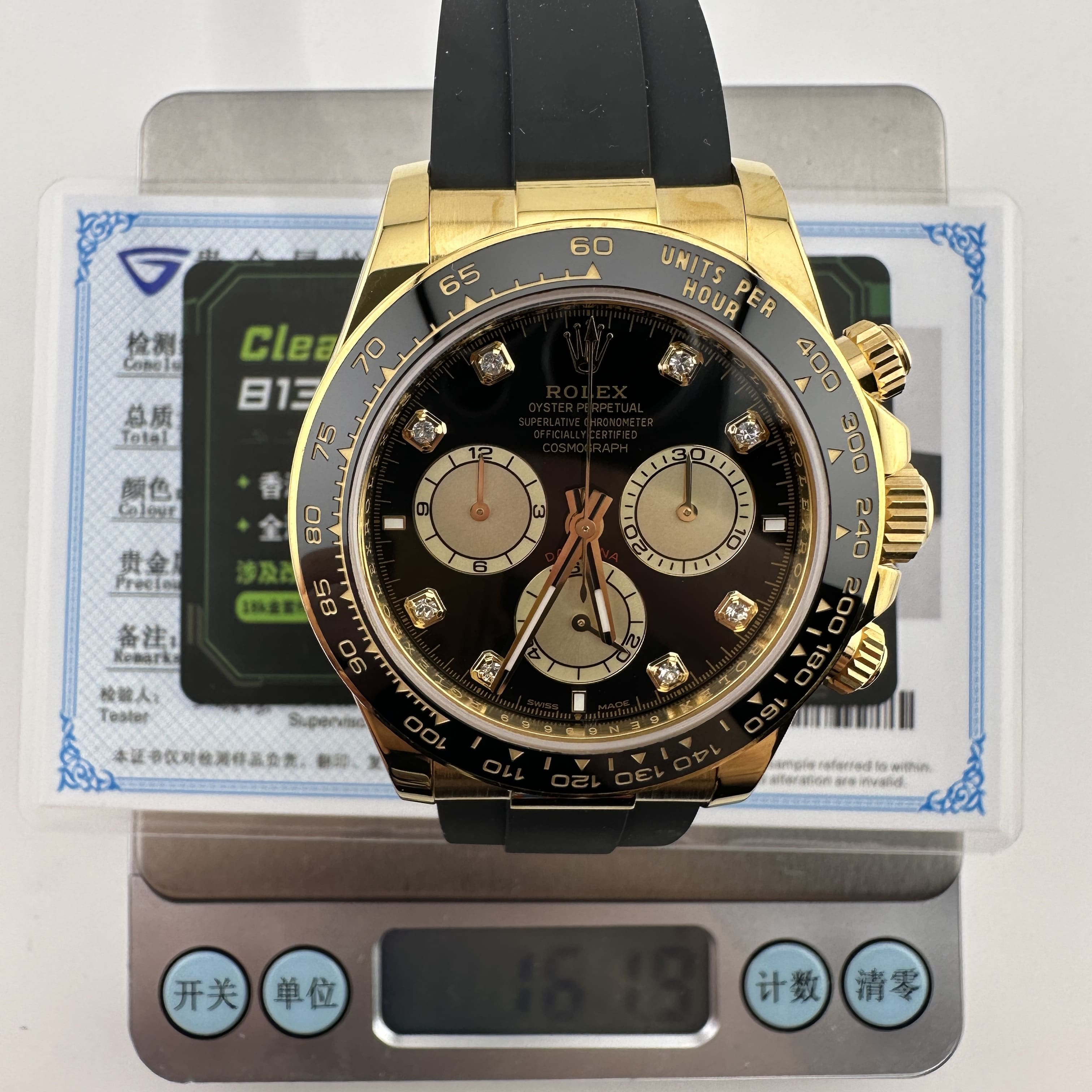 這一隻高仿地通拿足重版本與此前我們推出的最新款126519水泥灰,126518余文樂,126515玫瑰金均是同一種源材質打造,均是做到了160克以上.只不過根據錶友的需求以及客訂的錶盤進行改裝升級,則是另外一款地通拿.材質部分是使用了混合重金屬材質打造,這種材質不僅具有18K金同等大小密度,最重要的是硬度也是和18K金一致,因此被眾多廠家以及私人訂製相繼使用.目前推出足重地通拿訂製版本已經超過一年時間,並且技術是成熟的狀態!