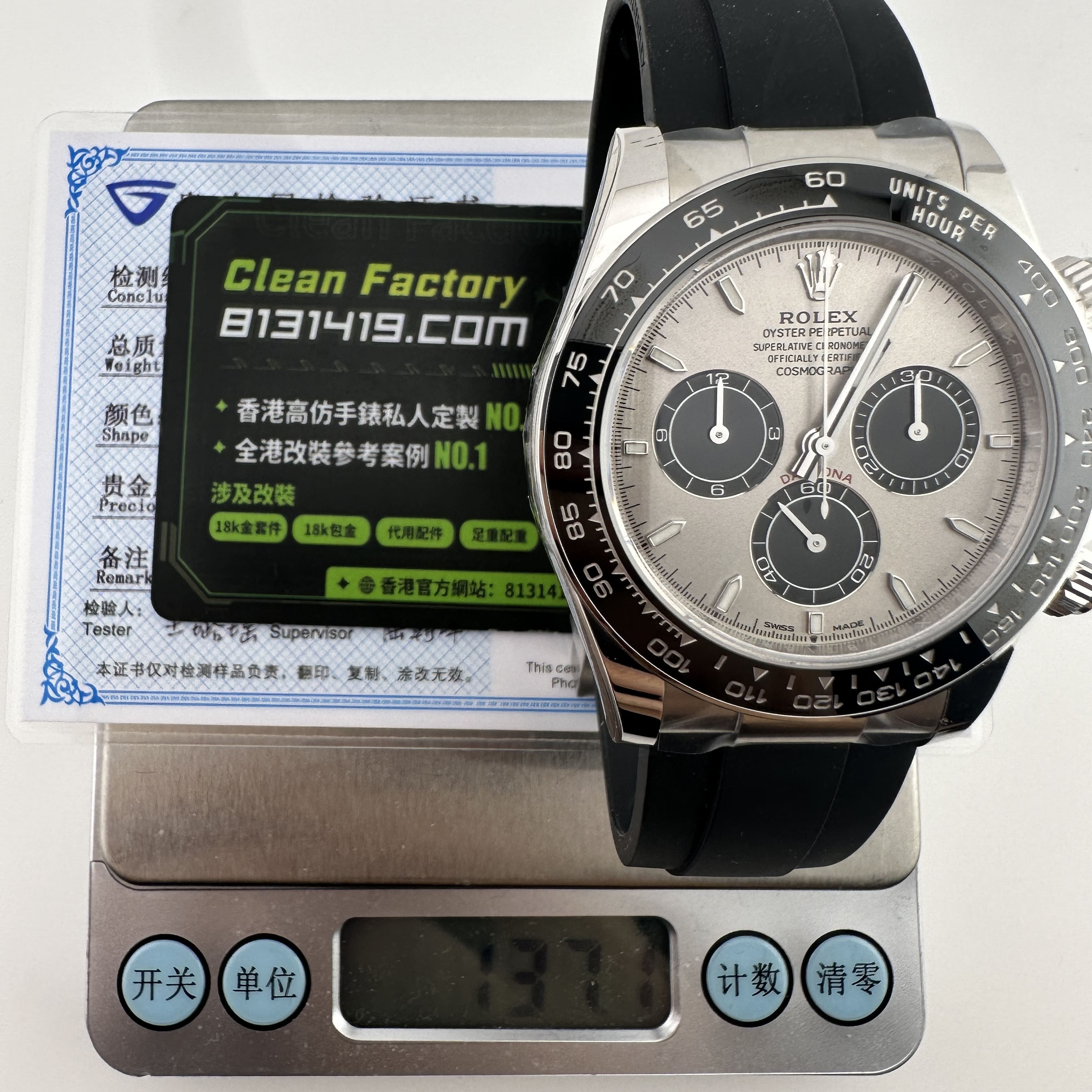 VS廠官網全新推出的勞力士地通拿m126519ln-0006水泥灰配重版本升級18K包金以及改裝DEEP高透玻璃,根據錶友需求訂購VS廠Daytona用於基礎改裝升級.其中涉及到VS廠最新推出的性價比V3配重版本,雖然在重量級別上達到了137克,屬於是中等配重,高仿市面上也有配重145克以及足重版本161克,基於不同價錢和重量綁定情況下,VS廠水泥灰地通拿性價比和重量同時佔比.