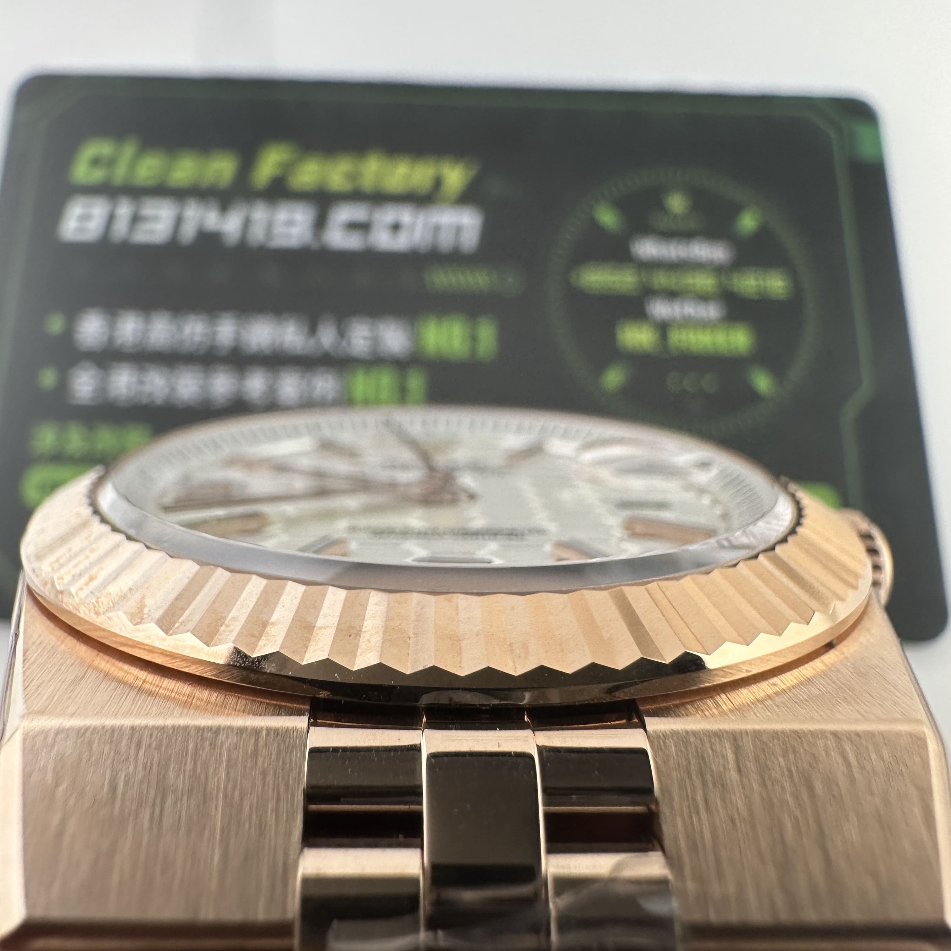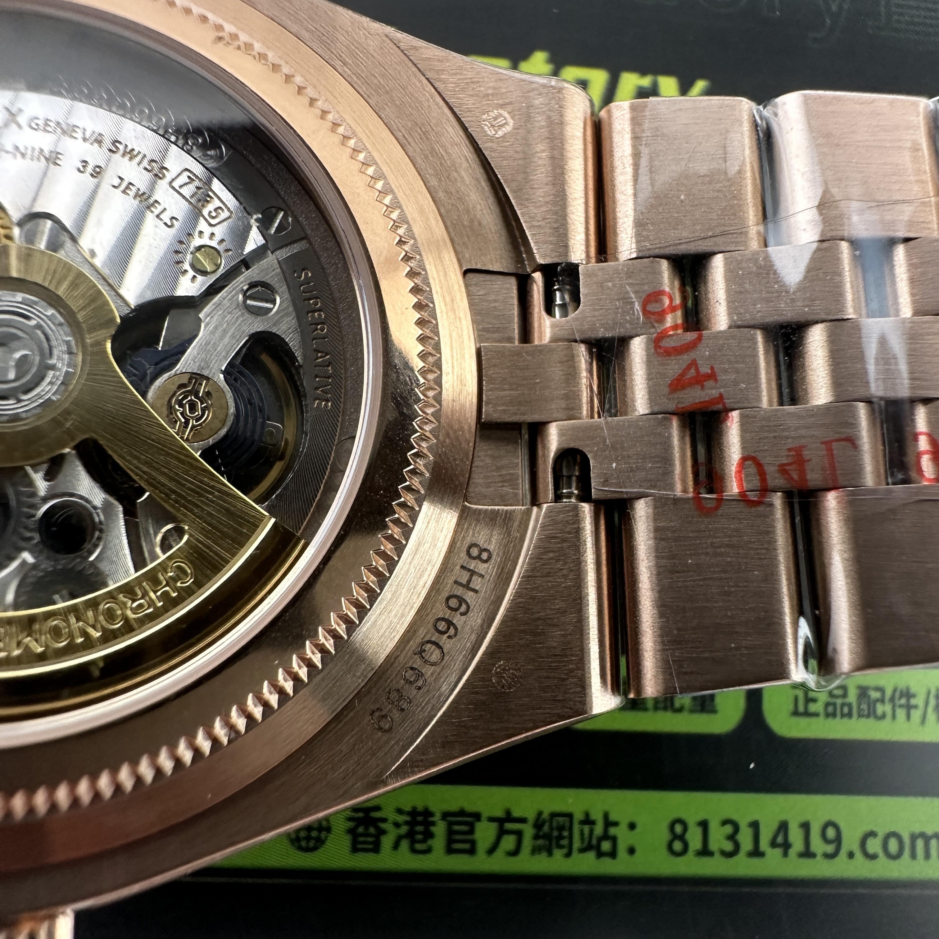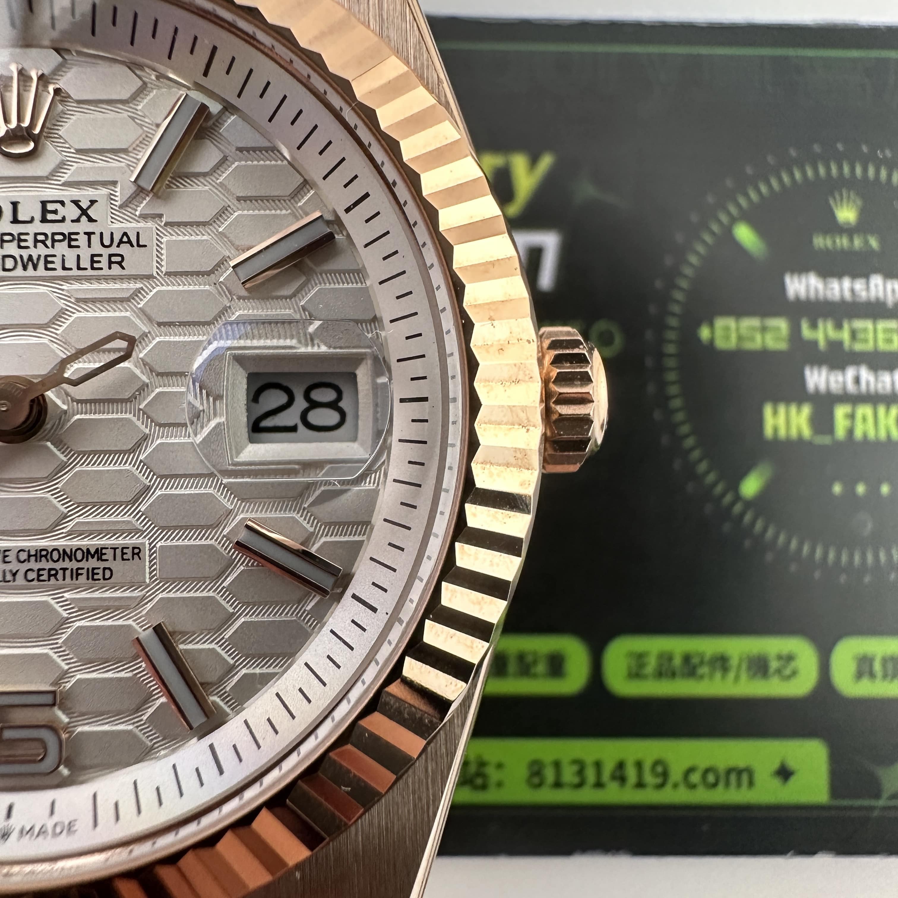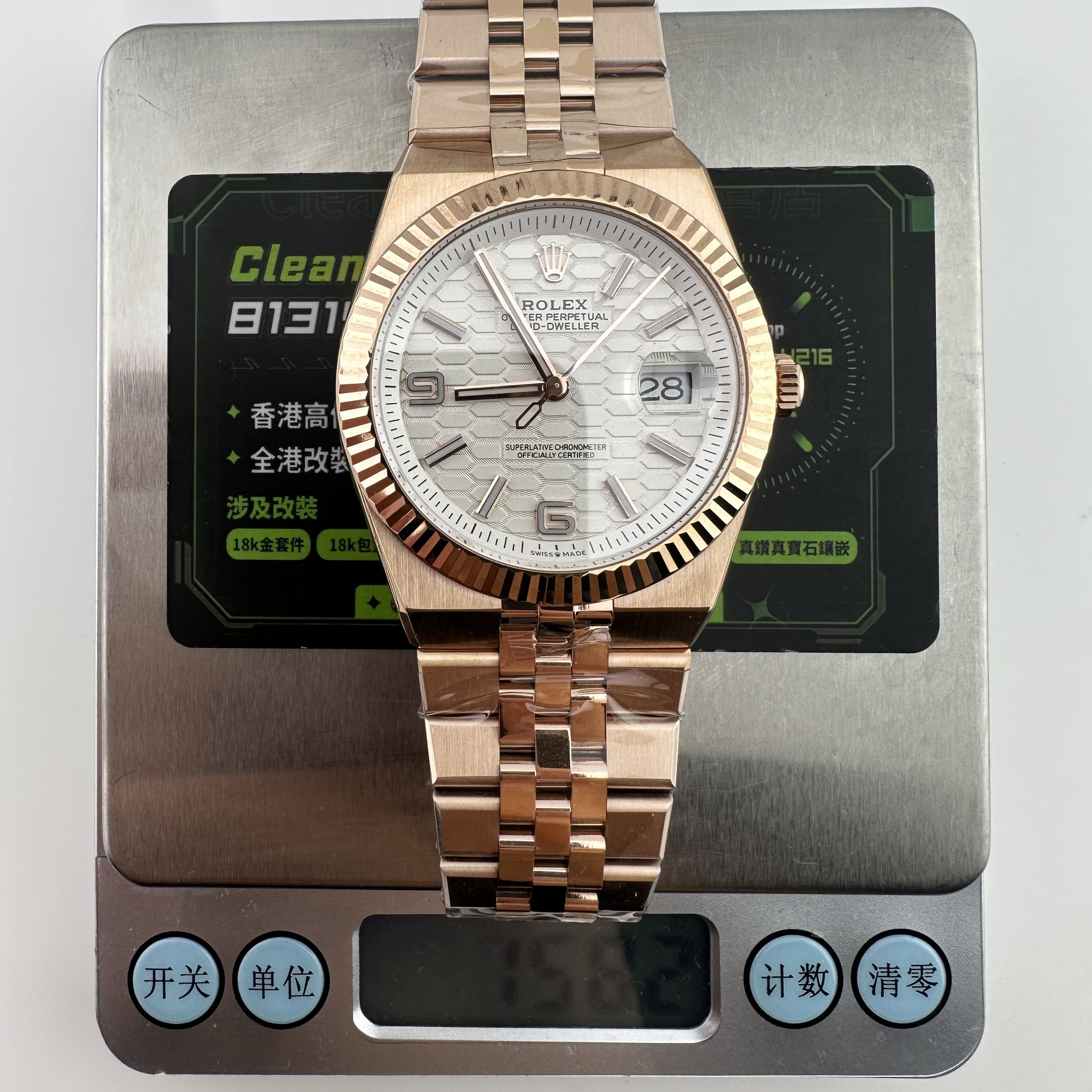 高仿勞力士2025年最新款陸使型/LAND-DWELLER系列腕錶m127335-0001玫瑰金白面,整錶尺寸40mm.高仿勞力士127335使用的材質是904L精鋼,外觀部分採用了PVD電鍍金工藝製作接近原版一致的玫瑰金色澤.關於高仿勞力士陸使型127335白面錶盤對比原版是否存在色差?基本上是杜絕色差,白色黑色作為純色系而言在高仿市場中是最"吃香"的錶盤,並且此次私人訂製版本的127335錶款不屬於任何廠家出品,針對品質和細節處理部分會比其他廠家做得更好,特別是目前新推出的ES廠和8+廠,細節處理不完善,存在明顯缺陷.