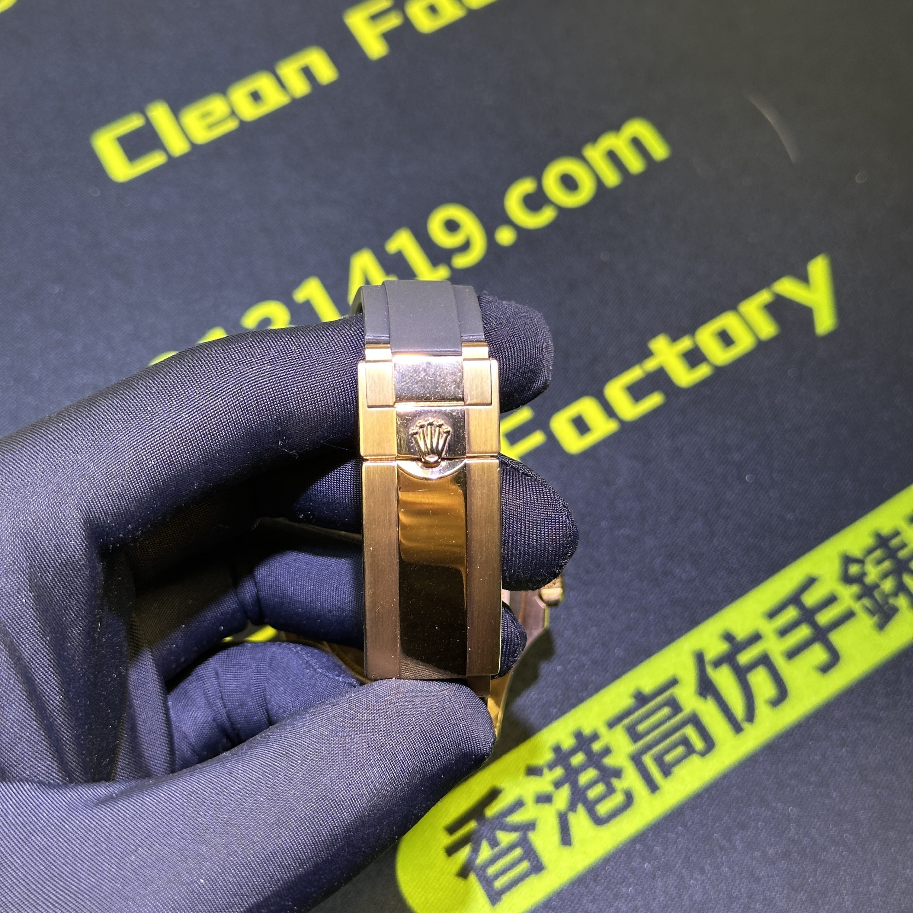 高仿Rolex Yacht Master-116695SATS錶款仿真度以及手感上的體現,有相關私人定製推出配重升級版本,而改裝的空間比較大,這也意味著在仿真度的前提修改與升級中可以得到完美的解決.整錶尺寸40mm,原裝正品使用18K玫瑰金材質打造,外觀部分醒目的部分是一整圈彩寶鑽石鑲嵌在圈口部分,而作為升級版本自然是有獨到之處.配備膠帶,錶盤內部依舊是經典黑色以及圓點時間刻度加上日曆顯示.