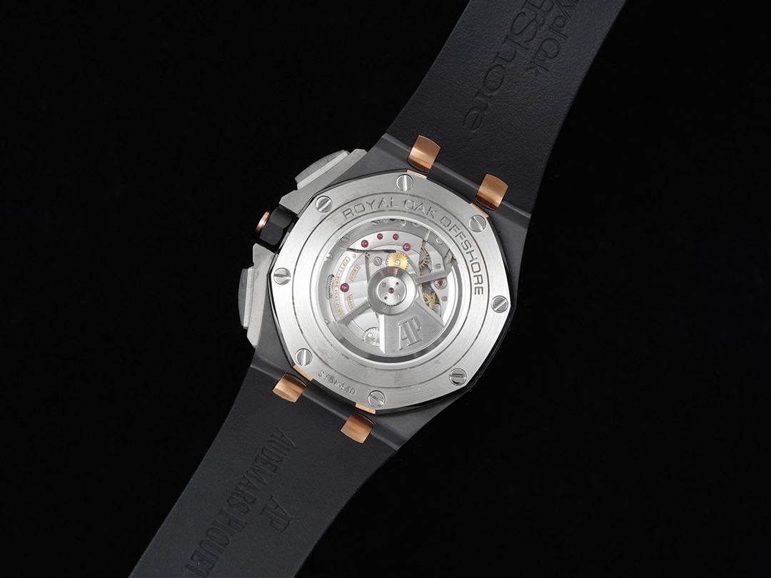 黑色的陶瓷錶殼搭配鈦金屬的按鈕護橋,加上陶瓷按鈕的點綴,成就近乎完美的藝術品,黑色的陶瓷圈口搭配玫瑰金顏色的錶圈螺絲,防眩光處理的藍寶石水晶玻璃錶鏡,將奢華體現得淋漓盡致。 鈦金屬的背透錶底(市場版本為節約成本使用不銹鋼材質,完全不對版)搭配精鋼螺絲,底蓋表面所有文字,拋弃傳統做法通過腐蝕出來,均是通過最先進的CNC科技雕刻上去,顯得更加立體,字體與原裝無限接近! 通過藍寶石玻璃可窺見一枚7750改3126的自動機械機芯,夾板外觀與原裝分毫不差,真正做到即使透底,也無懈可擊! 12點位置的小秒盤,9點位置的半小時計時,6點位置的一小時計時,完美的還原了原版的所有功能,經過RS團隊的精密打磨,大大提升了7750基礎機芯的穩定性,緩解了一直以來計時機芯款式空有其錶的尷尬現象! 做到無可挑剔,堪稱天花板級別,歡迎廣大錶友品鑒!