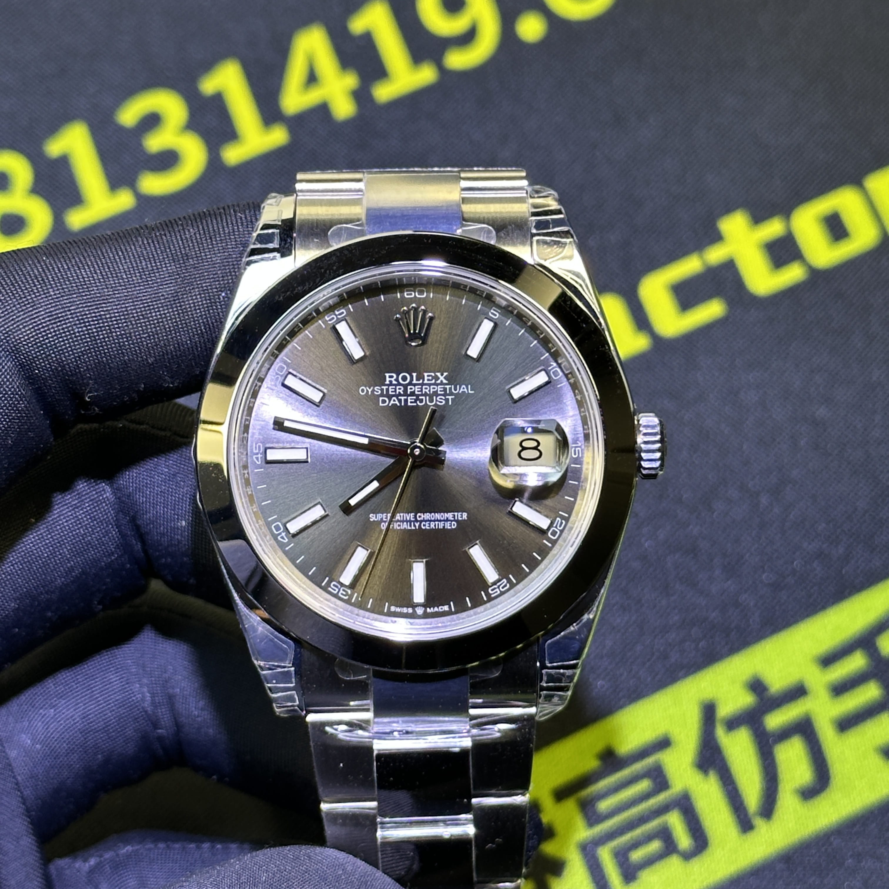 VS廠勞力士日誌型系列m126300-0007灰面光圈板帶