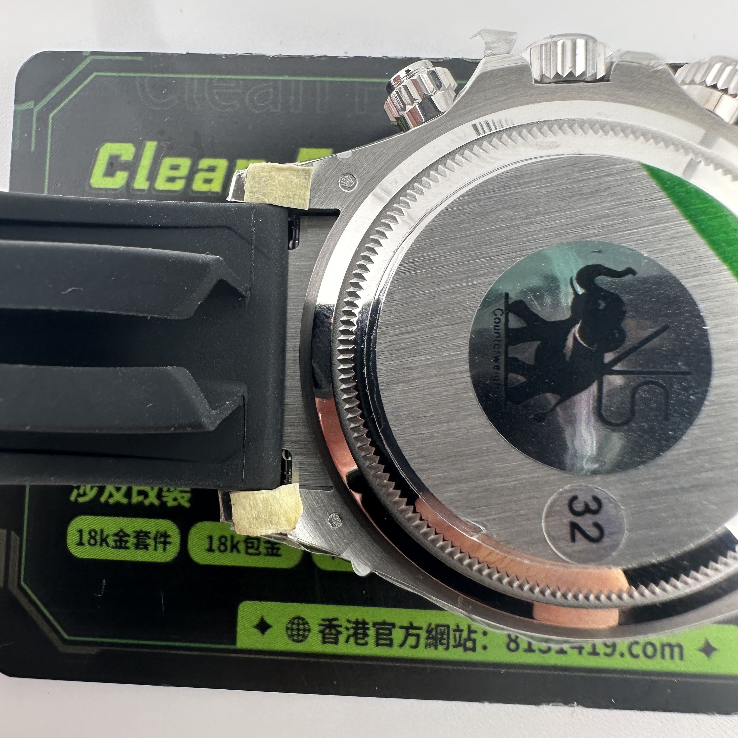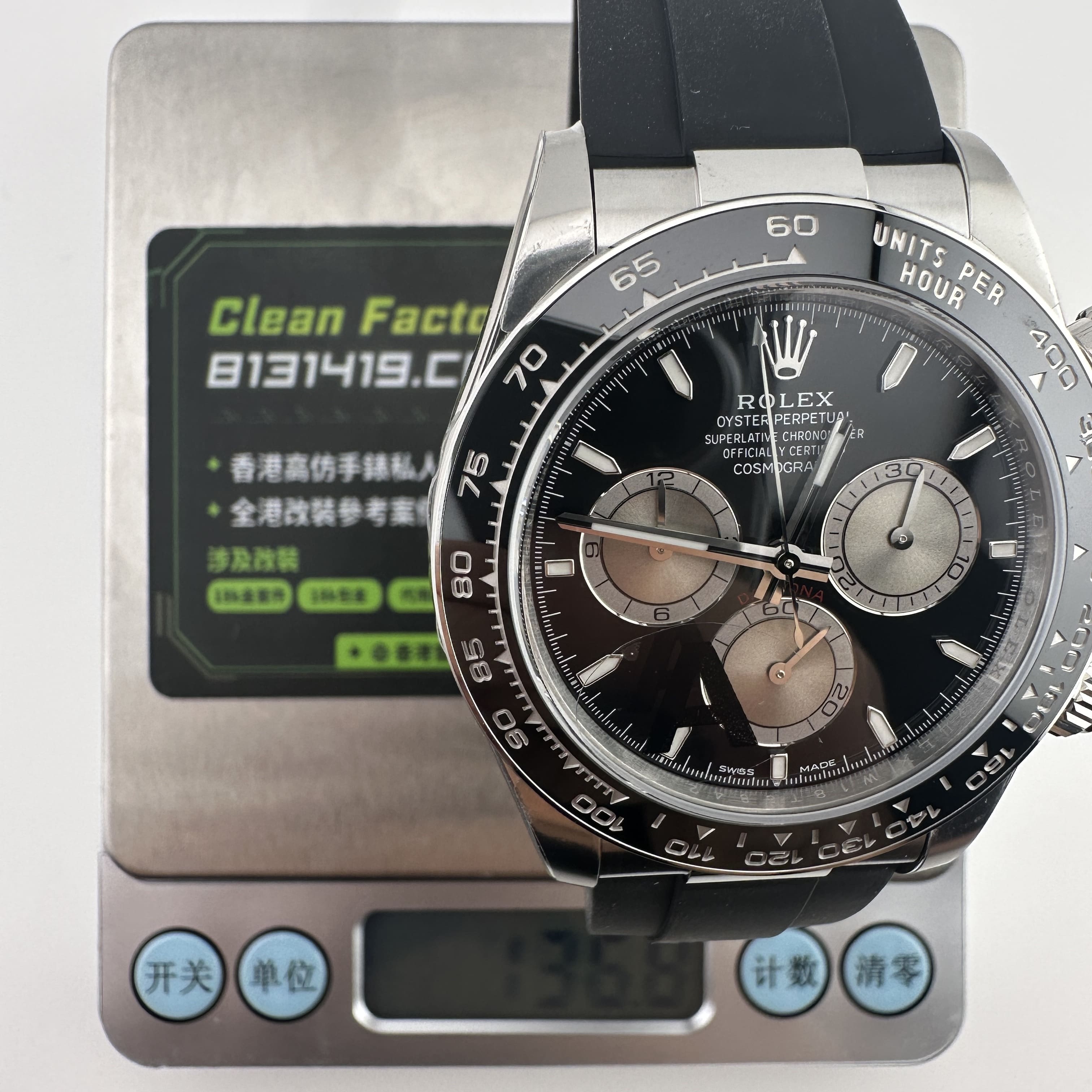 VS廠官網全新推出的勞力士m126519-0002白金款地通拿配重136克,整錶尺寸40mm,外觀顏值是眾多新款白金地通拿款式中最高的一款!經典的陶瓷圈口,錶盤內部三個眼睛以及計時指針,VS廠根據原版1:1復刻,涉及的版型構造,以及錶盤內部設定均是達到基礎還原!錶殼弧度復原程度1:1,側面角度彎曲弧度以及倒角的鷹嘴狀態均是以原版架構打造!此次配重版本使用的材質是重金屬,但屬於是VS廠獨家研發,在重量比例上存在些許爭議性!機芯搭載了丹東4131機芯配置.